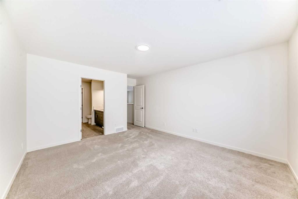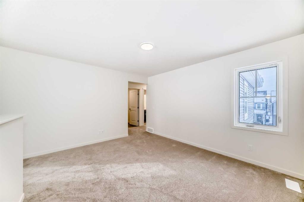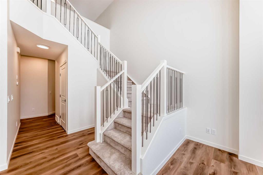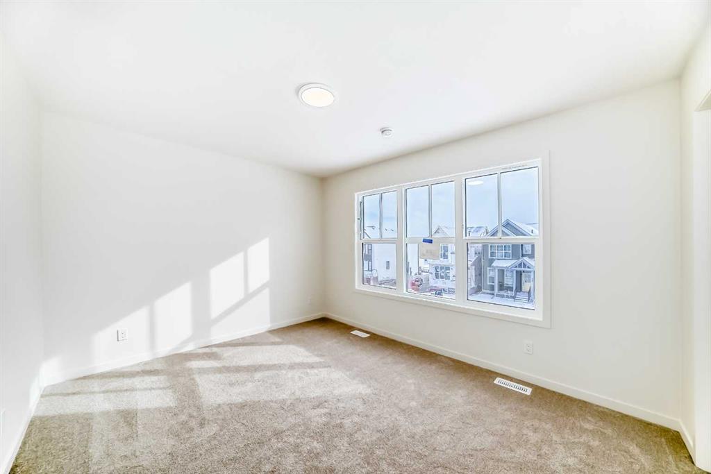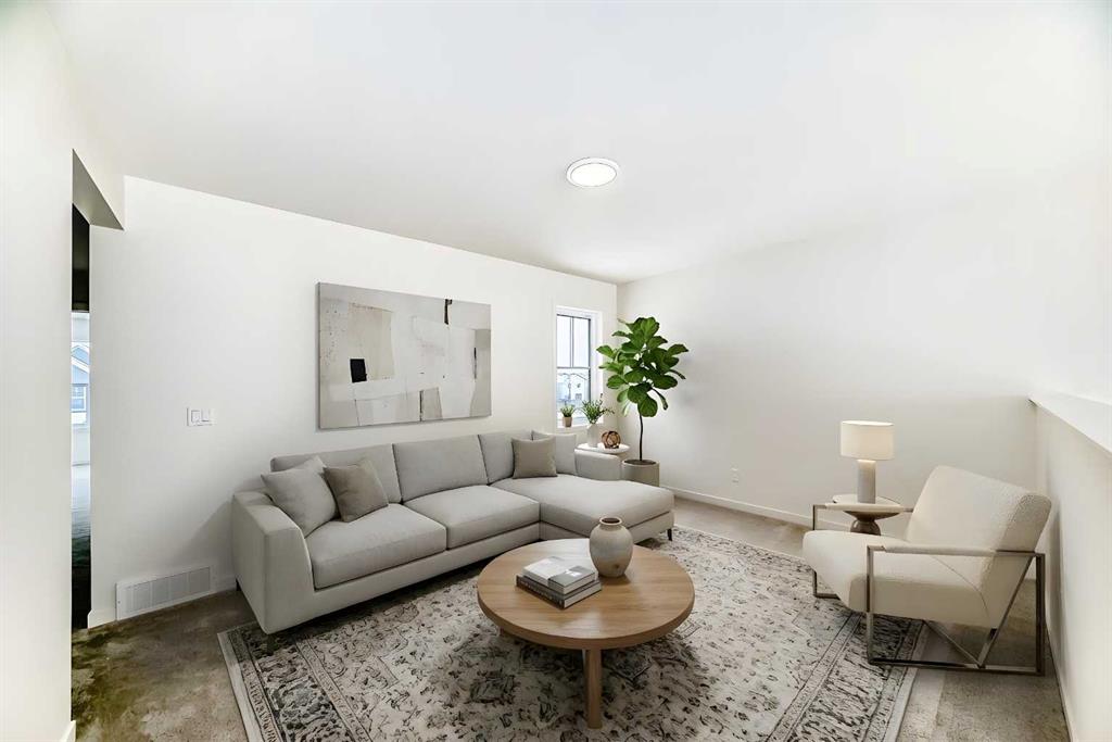 Welcome to the “Grada” by Hopewell Residential, where elevated design and everyday functionality come together in Calgary’s visionary garden-to-table community of Rangeview. Offering 2,119 sq. ft., 4 total bedrooms, and a thoughtfully designed layout that balances style with practicality, this is a home that feels as good as it looks. From the moment you step inside, you’ll appreciate how well this home is designed for modern family living. Just off the front entry, a main floor bedroom is paired with a convenient 3-piece bathroom, creating exceptional flexibility for a variety of lifestyles. Whether used for multi-generational living, a live-in nanny, overnight guests, or even as a private home office, this space adds versatility that is increasingly hard to find. As you move further into the home, the main floor opens beautifully into a spacious dining area and inviting lifestyle room, creating an effortless flow for both everyday routines and entertaining. The open-to-above living room creates a dramatic sense of space, while floor-to-ceiling windows flood the home with natural light. A beautiful fireplace anchors the room, adding warmth and character to this impressive central gathering space. The kitchen is a true standout, blending contemporary style with timeless finishes. Designed to impress, it features quartz countertops, a large central island, built-in microwave, upgraded storage drawers, and a striking stand-alone hood fan wrapped in a classic white 4×4 backsplash that adds texture and charm. The two-tone cabinetry offers a designer look with modern green lower cabinets paired with wood grain upper cabinetry, creating a warm and sophisticated aesthetic that sets this home apart. Upstairs, the thoughtful layout continues with a central bonus room overlooking the main living space below and benefiting from the home’s oversized two-storey windows, which fill the upper level with light and create an airy, open feel. You’ll also find three spacious bedrooms, including a well-appointed primary retreat featuring a step-in shower for a spa-inspired feel. A full bathroom and conveniently located upper floor laundry. The lower level provides excellent future potential with a 9-foot foundation, giving you flexibility to expand your living space over time or explore the possibility of a secondary suite (a secondary suite would be subject to approval and permitting by the city/municipality). Located in Rangeview, one of Calgary’s most unique new southeast communities, this home offers more than just beautiful interior finishes—it offers a lifestyle rooted in connection, nature, and community. Designed around a garden-to-table vision, Rangeview brings residents together with thoughtfully planned green spaces, pathways, gathering areas, and a strong sense of belonging. It’s the perfect setting for families looking for a fresh start in a neighbourhood built with lifestyle in mind. Discover the perfect blend of comfort, style, and community with The Grada in Rangeview.
