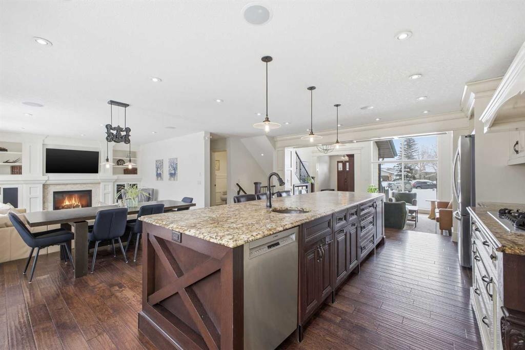 Luxuriously renovated from top to bottom, this stunning 3+2 bedroom home sits JUST STEPS FROM THE TRANQUIL PATHWAYS OF FISH CREEK PROVINCIAL PARK and offers nearly 3,700 sq ft of beautifully developed living space as well as an oversized triple attached garage. The main level features rich engineered hardwood and an abundance of natural light, beginning with a sunken living room highlighted by an oversized chandelier and dual ceiling fans. The showpiece kitchen is finished with custom millwork and cabinetry, granite countertops, a 12’ island with seating where friends and family can gather, two copper sinks, and top tier appliances including a Bertazzoni Italian gas cooktop. A spacious dining area easily accommodates family dinners or large gatherings. The sunken family room is anchored by a striking feature fireplace and custom built ins, while a private office with a coffered ceiling and herringbone tile flooring creates an ideal work from home retreat. A stylish 2 piece powder room and a generous laundry/mudroom—complete with herringbone tile, coat hooks, and individual storage cubbies—round out the main level. Upstairs, a quiet loft with an overhead skylight leads to three generously sized bedrooms and a beautifully updated 5 piece main bath. The primary suite is a true sanctuary, featuring his and hers custom closets with individually designed millwork, built in entertainment and art frames, and an elegant chandelier. The secluded 5 piece ensuite includes a large dual sink vanity, a new bathtub, and a separate shower finished with natural Italian stone and a granite bench. The additional bedrooms each offer built in closets. The fully developed basement is designed for both entertainment and wellness. A spacious media/family room features a hard wired solid wood entertainment unit, plus an entertainment nook with a wet bar, commercial grade fridge, dishwasher, storage, and wine rack. A dedicated home gym with commercial grade rubber flooring, floor to ceiling mirrors, and built in shelving provides a private space to work out. Two additional bedrooms, a 3 piece bath, and a large storage area complete the lower level. Additional highlights include central air conditioning, built in speakers throughout, a new Lennox high efficiency furnace, new AO Smith hot water tank, Kinetico water softener, Vivint/Telus alarm system, and complete removal of Poly B plumbing. Outside, enjoy the exposed aggregate front porch and a beautifully finished backyard with a deck coated with Duradeck, raised garden boxes within a gated garden area, a garden shed, and a Rain Bird irrigation system. Parking is effortless with the oversized triple attached garage, featuring epoxy flooring, a finished ceiling, EV charger, built in heater, and custom floor to ceiling cabinetry with quartz countertops. This premier location offers nature at your doorstep along with convenient access to schools, shopping, public transit, and major routes including Canyon Meadows Drive and Bow Bottom Trail.