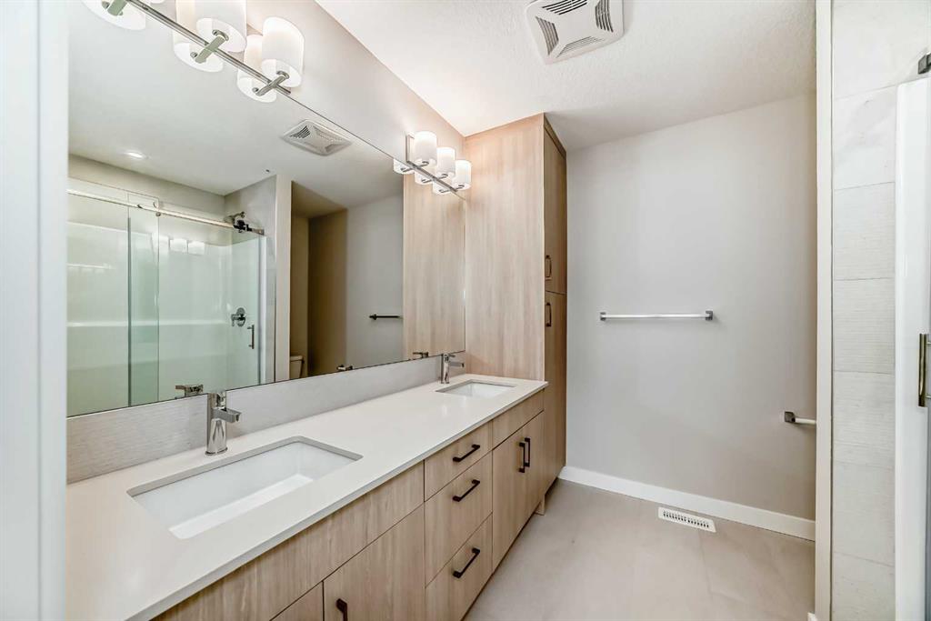 Only two townhomes remain in award-winning Logel Homes’ Livingston Views development. This 1,481 sq. ft. residence (builder size) features upgraded cabinetry, quartz countertops, and premium Samsung stainless steel appliances. With 3 bedrooms and 2.5 bathrooms, the spacious primary suite includes a walk-in shower and dual sinks in the ensuite. Both second-floor bathrooms are finished with upgraded ceramic tile. The main floor is enhanced with pot lighting throughout, complementing the modern design. Additional features include a double underdrive garage for added convenience. Enjoy year-round comfort with central air conditioning and the assurance of a 5-year Alberta New Home Warranty. Ideally situated near shopping, parks, and an on-site lake, this home offers the perfect blend of luxury and practicality. Livingston Views is a short walk from “The Hub”, Livingston’s 35,000 square-foot Homeowners Association facility, and surrounded by 250 acres of open space, parks, and prairies. All set along the picturesque Livingston West Ponds.