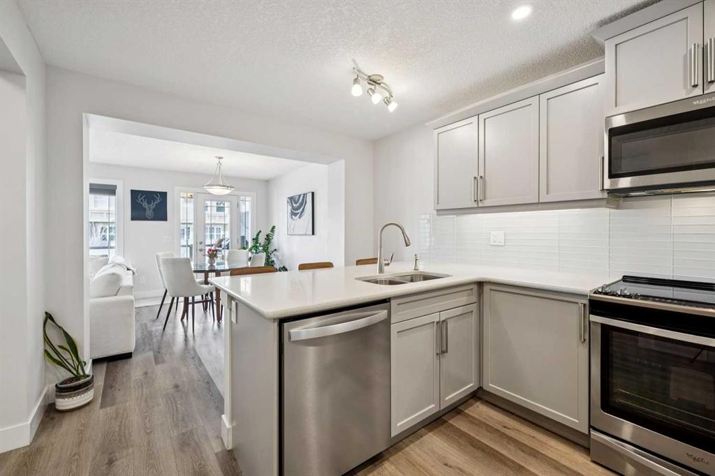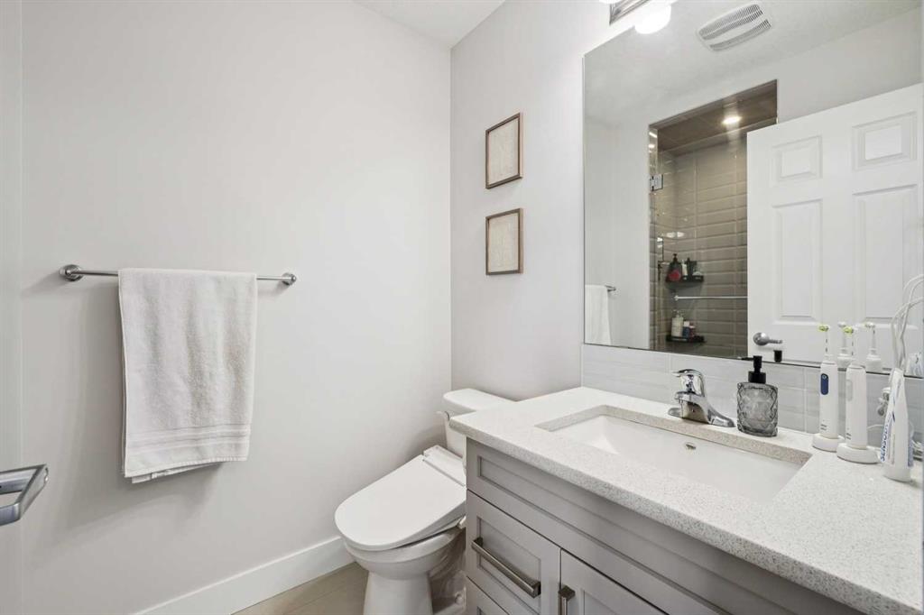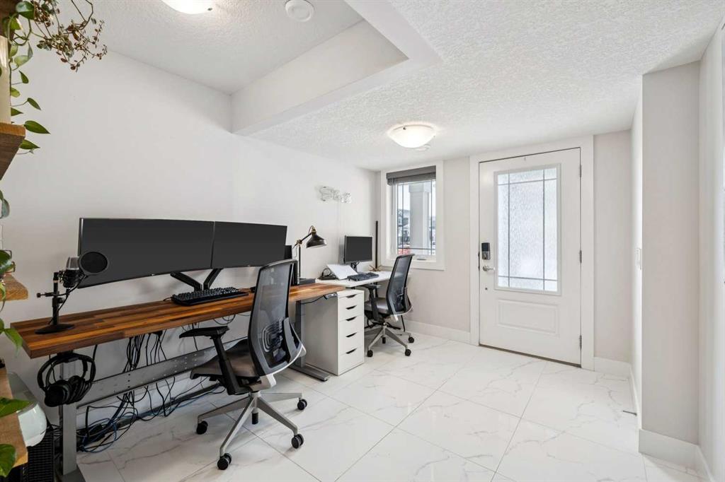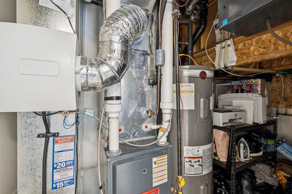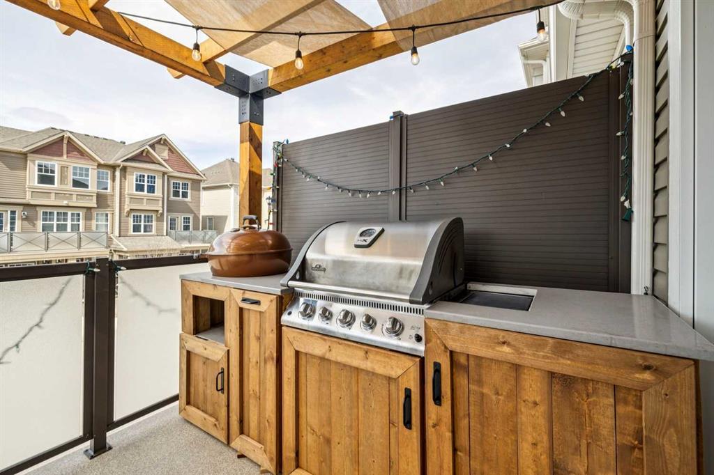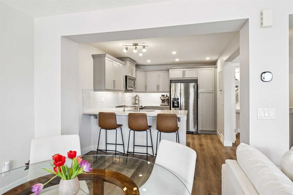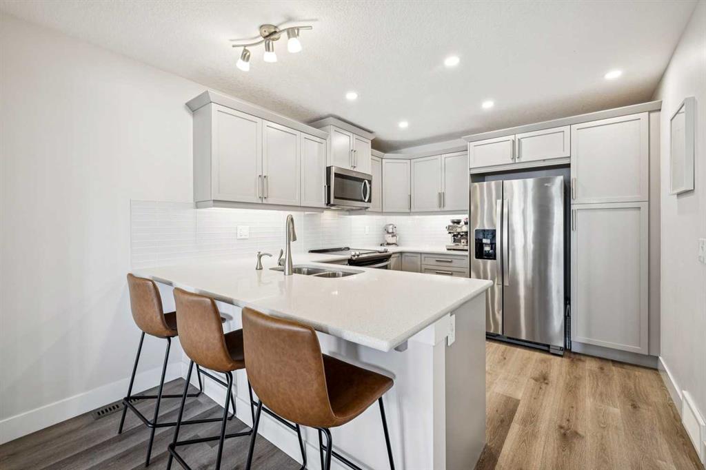 NO CONDO FEES! This UPGRADED townhome is in immaculate condition and ready to welcome its new owner. Upgraded quarts, kitchen cabinets, upgraded bathrooms, in floor heated tiles on the main with a home office, a cozy patio to relax on in the summer and A/C for the most comfortable living! With over 1,400 square feet of exceptionally designed living space, this plan features dual primary bedroom suites with two large bathrooms and one half bathroom on the main floor. The large foyer offers a home office, with in floor heated tile and access to the oversized single garage. The kitchen overlooks the main living space and was designed with entertaining in mind with upgraded cabinets. Appliances and quarts countertops and tiled backsplash. The living room and dining room are open and have many windows offering tons of natural light. The WEST-facing patio with natural gas bbq line custom built pergola with lights is a dream to enjoy! A 2pc bath and stackable laundry complete this floor. The upper level you will find two large bedrooms, each with big closets and their own ensuite bathrooms. Zero maintenance landscaping is an added touch!