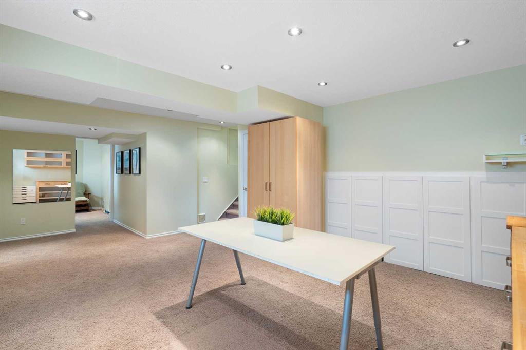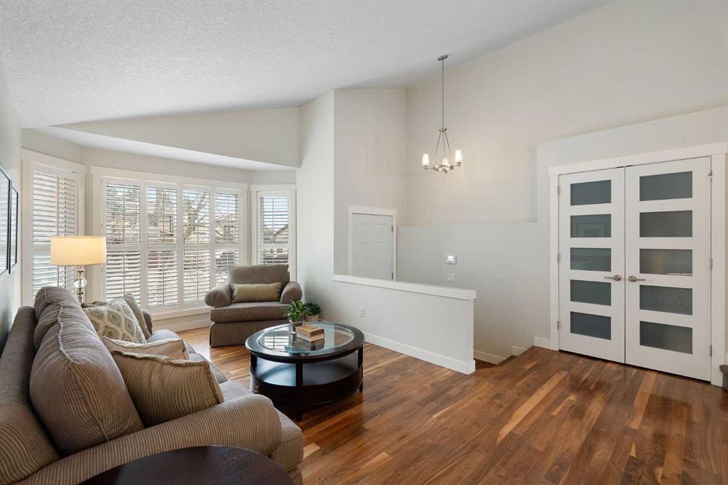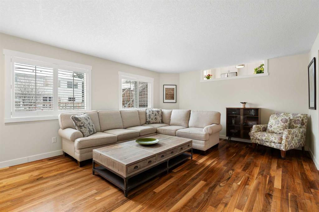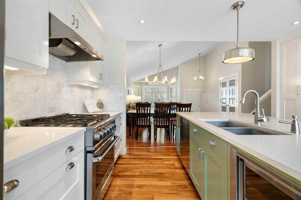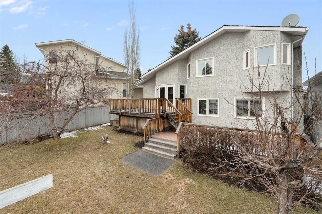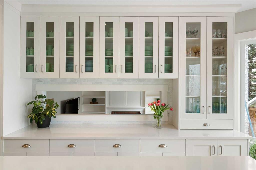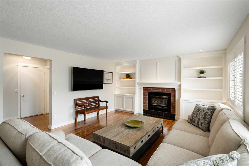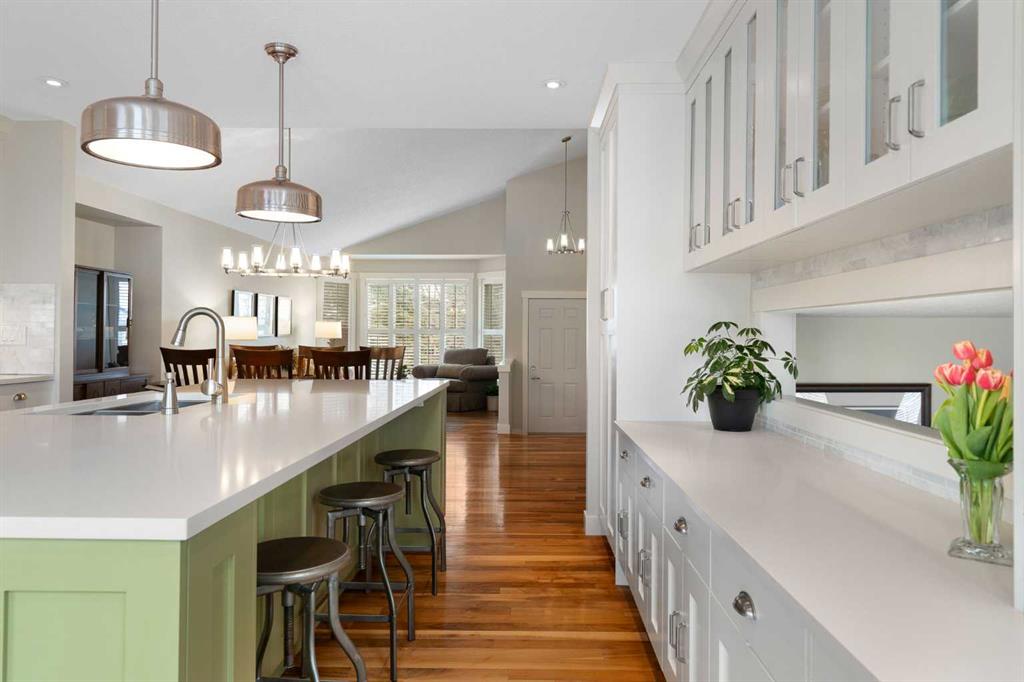 Nestled on a quiet cul-de-sac in the heart of Signal Hill, this exceptional home has been extensively renovated to offer a blend of timeless design, custom craftsmanship + everyday comfort. Thoughtfully curated with a focus on enduring quality, the home is distinguished by its extensive custom millwork, beautifully tailored built-ins, and rich walnut hardwood flooring. Central air conditioning adds an extra layer of comfort, keeping the home cool and inviting throughout the warm summer months. From the moment you enter, vaulted ceilings and large windows adorned with classic shutters create a sense of light and elegance. The formal living and dining rooms are gracious in scale, designed for both intimate evenings and larger gatherings, while the refined finishes throughout lend the home a quiet sophistication. The kitchen has been beautifully reimagined with impeccable attention to detail. Custom white ceiling height cabinetry is paired with quartz countertops, stainless steel appliances, a gas range, and a substantial centre island designed for casual dining and conversation. A practical built-in pantry and hutch with glass-inlay cabinetry provide both functional and architectural interest. With direct access to the expansive deck and south-facing backyard, the kitchen transitions effortlessly into the home’s outdoor living space. The upper level is anchored by a beautifully appointed primary retreat. The spacious walk-in closet features functional organization, while the ensuite bath offers the feel of a private spa with heated floors, a freestanding soaker tub, corner glass shower, and exquisite tilework. Two additional bedrooms complete the upper level and provide flexibility for guests, family, or a home office. The beautifully renovated 3-piece bathroom has been finished with the same elevated attention to detail, featuring custom cabinetry, meticulous tilework, refined fixtures, and a spacious glass-enclosed shower – creating a welcoming space for family or guests. On the lower level, custom millwork continues to define the home’s character. The inviting family room is warmed by a fireplace and framed by rich walnut floors and beautifully crafted built-in bookcases, creating a warm and distinguished setting for relaxing or entertaining. A combined powder room and laundry room is thoughtfully positioned on this level for everyday convenience. The basement offers versatility, with a spacious recreation room ideal for movie nights, fitness, or games, along with a fourth bedroom perfectly suited for guests or a private office. A large crawlspace provides an abundance of space to keep everything neatly tucked away. The drywalled garage features a newer garage door + app controlled LiftMaster system. This home is moments from shopping, dining, LRT Station, downtown, schools, parks, tennis/pickleball courts. Elegant and impeccably finished, this is a home that offers both beauty & substance in equal measure.
