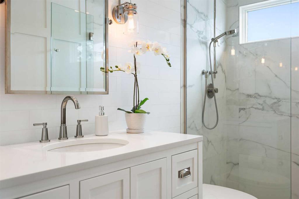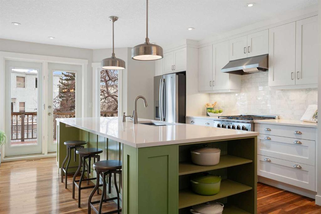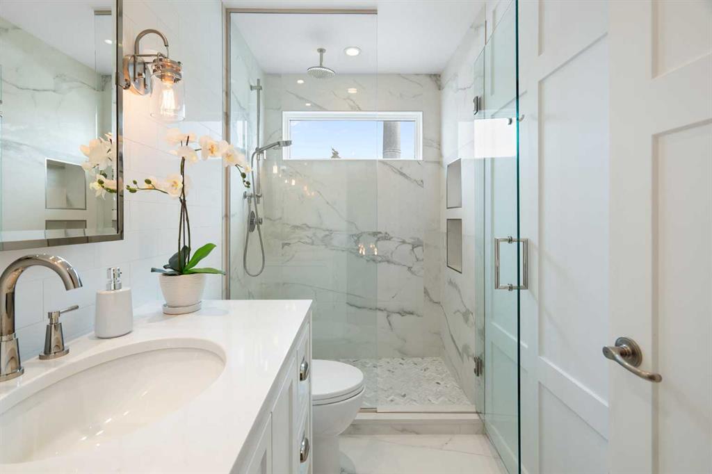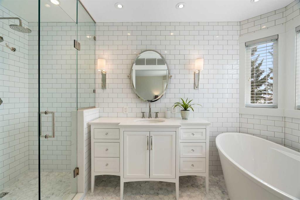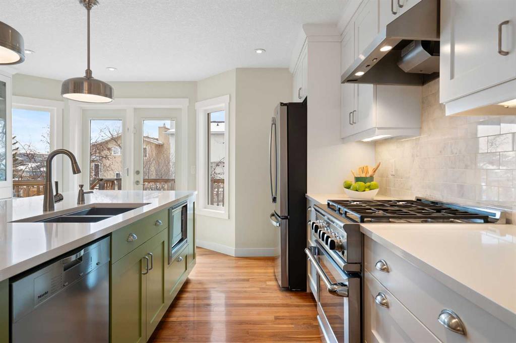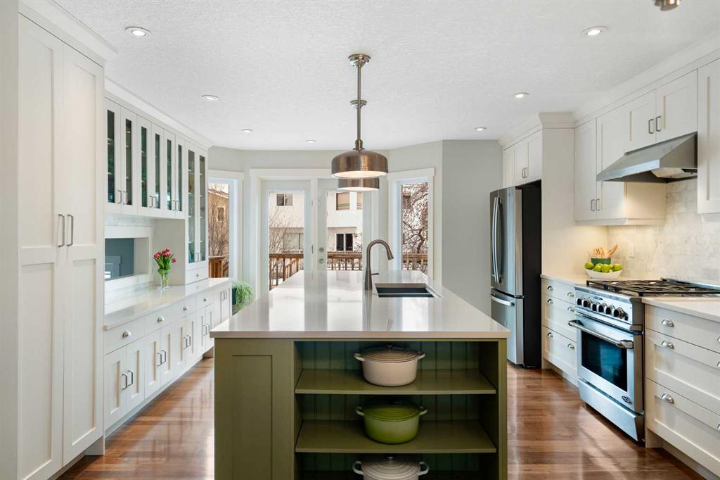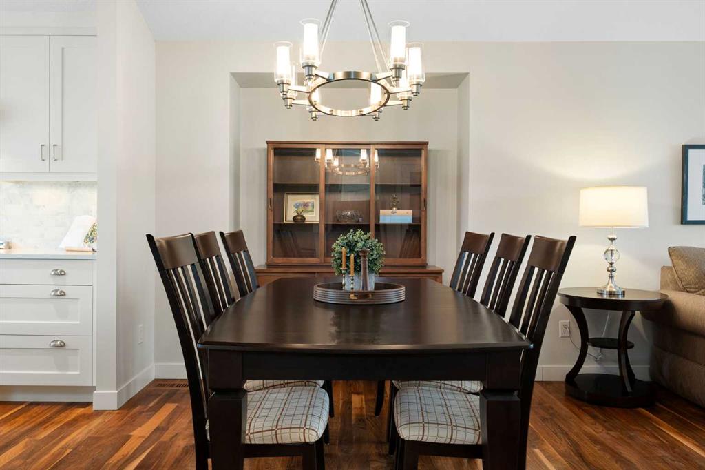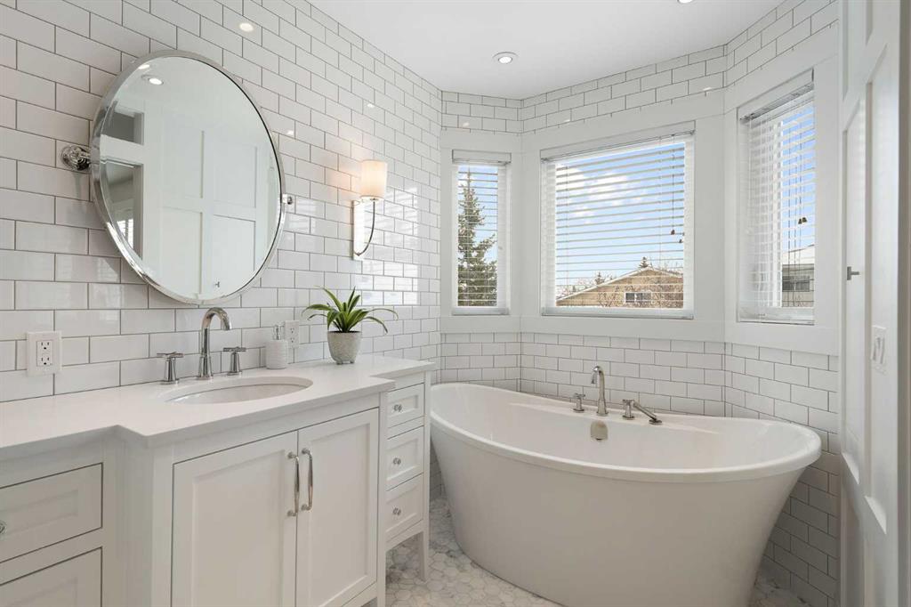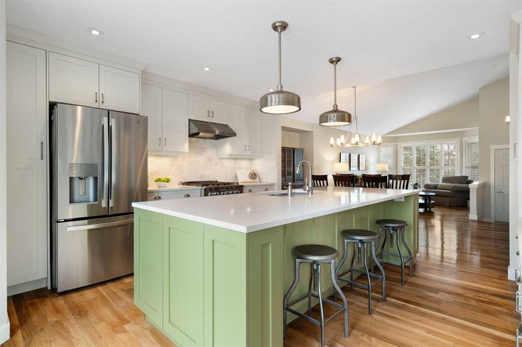 Nestled on a quiet cul-de-sac in the heart of Signal Hill, this exceptional home has been extensively renovated to offer a blend of timeless design, custom craftsmanship + everyday comfort. Thoughtfully curated with a focus on enduring quality, the home is distinguished by its extensive custom millwork, beautifully tailored built-ins, and rich walnut hardwood flooring. Central air conditioning adds an extra layer of comfort, keeping the home cool and inviting throughout the warm summer months. From the moment you enter, vaulted ceilings and large windows adorned with classic shutters create a sense of light and elegance. The formal living and dining rooms are gracious in scale, designed for both intimate evenings and larger gatherings, while the refined finishes throughout lend the home a quiet sophistication. The kitchen has been beautifully reimagined with impeccable attention to detail. Custom white ceiling height cabinetry is paired with quartz countertops, stainless steel appliances, a gas range, and a substantial centre island designed for casual dining and conversation. A practical built-in pantry and hutch with glass-inlay cabinetry provide both functional and architectural interest. With direct access to the expansive deck and south-facing backyard, the kitchen transitions effortlessly into the home’s outdoor living space. The upper level is anchored by a beautifully appointed primary retreat. The spacious walk-in closet features functional organization, while the ensuite bath offers the feel of a private spa with heated floors, a freestanding soaker tub, corner glass shower, and exquisite tilework. Two additional bedrooms complete the upper level and provide flexibility for guests, family, or a home office. The beautifully renovated 3-piece bathroom has been finished with the same elevated attention to detail, featuring custom cabinetry, meticulous tilework, refined fixtures, and a spacious glass-enclosed shower – creating a welcoming space for family or guests. On the lower level, custom millwork continues to define the home’s character. The inviting family room is warmed by a fireplace and framed by rich walnut floors and beautifully crafted built-in bookcases, creating a warm and distinguished setting for relaxing or entertaining. A combined powder room and laundry room is thoughtfully positioned on this level for everyday convenience. The basement offers versatility, with a spacious recreation room ideal for movie nights, fitness, or games, along with a fourth bedroom perfectly suited for guests or a private office. A large crawlspace provides an abundance of space to keep everything neatly tucked away. The drywalled garage features a newer garage door + app controlled LiftMaster system. This home is moments from shopping, dining, LRT Station, downtown, schools, parks, tennis/pickleball courts. Elegant and impeccably finished, this is a home that offers both beauty & substance in equal measure.
