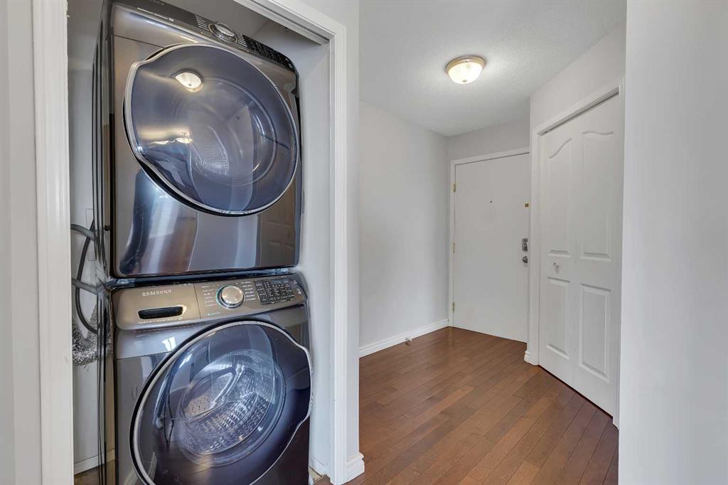 Top Floor Corner Unit with Incredible Natural Light in Prime Location! Welcome to this bright and beautifully maintained 2 bedroom, 2 full bathroom top-floor corner unit featuring large windows and an abundance of natural light throughout. The open-concept layout is highlighted by stunning maple coffee hardwood floors that flow through the living room, dining area, hallway, and foyer. The kitchen offers generous counter space, plenty of cabinetry, stainless steel appliances, and a raised breakfast bar that overlooks the spacious living room—complete with a cozy gas fireplace. Perfect for entertaining or relaxing at the end of the day. The primary bedroom features a walk-through closet leading to a private 4-piece ensuite which includes a jetted tub (new toilet installed in 2022). The second bedroom is ideal for guests, a roommate, or a home office. You’ll also appreciate the in-suite storage room by the front entrance & additional attached storage room on the large balcony. A new washer and dryer was installed (2021) for added convenience. One of the best features? Your parking stall is located directly in front of the unit and is visible from the deck—making winter mornings easier when using a remote car starter. The location is unbeatable—just off 96 Avenue with immediate access to a fantastic shopping plaza including T&T Supermarket, Tim Hortons, Rexall, The Canadian Brewhouse, Harvest Hills Auto, dental services, restaurants, and more. The 300 BRT bus on 96 Avenue provides direct access to the airport in approximately 8–10 minutes, and you’ll enjoy quick connections to Deerfoot Trail and Stoney Trail for easy commuting anywhere in the city. This is an exceptional opportunity for first-time buyers, investors, or downsizers looking for convenience, comfort, and a fantastic location.