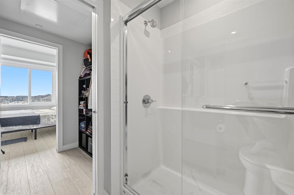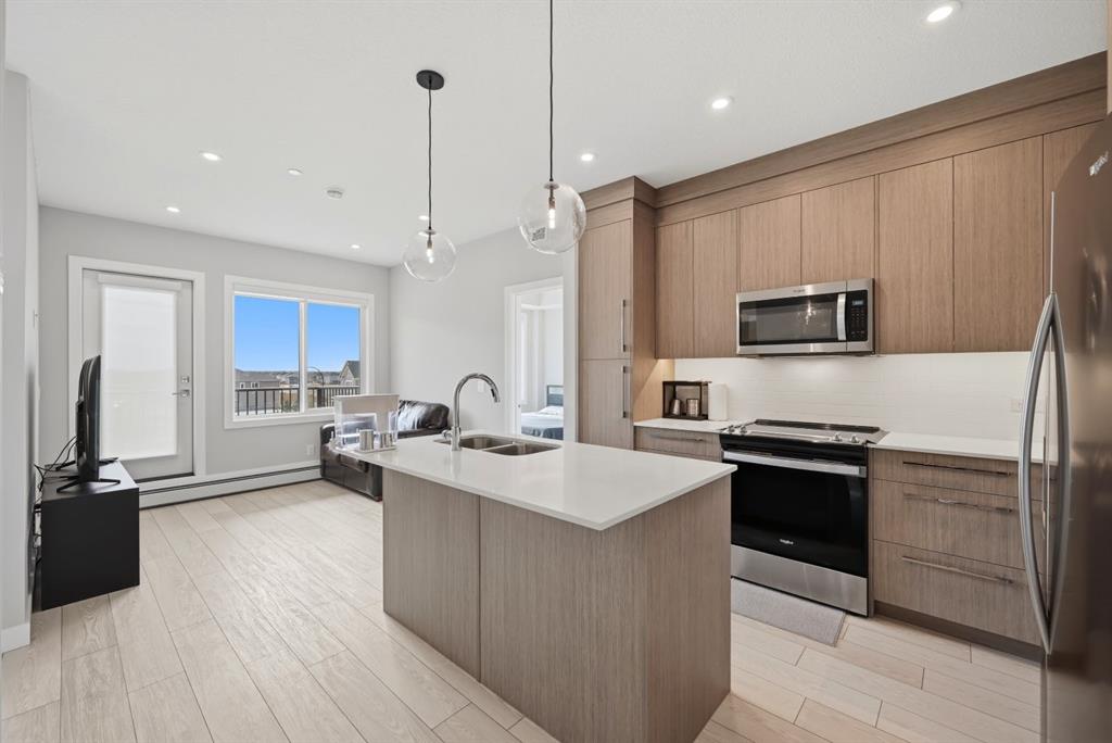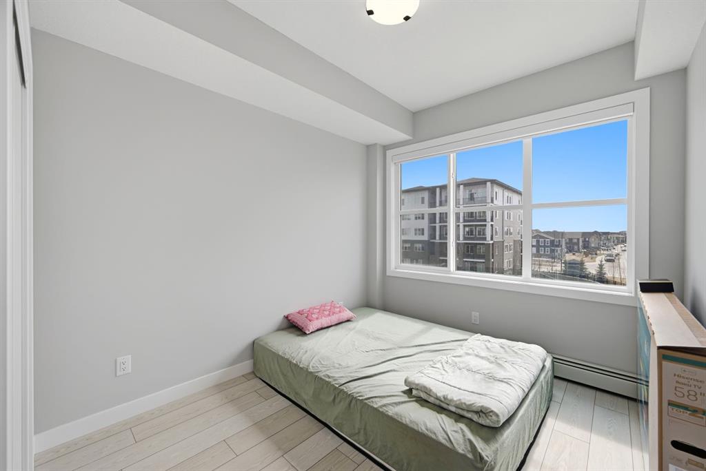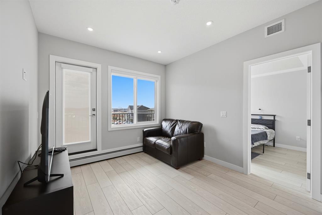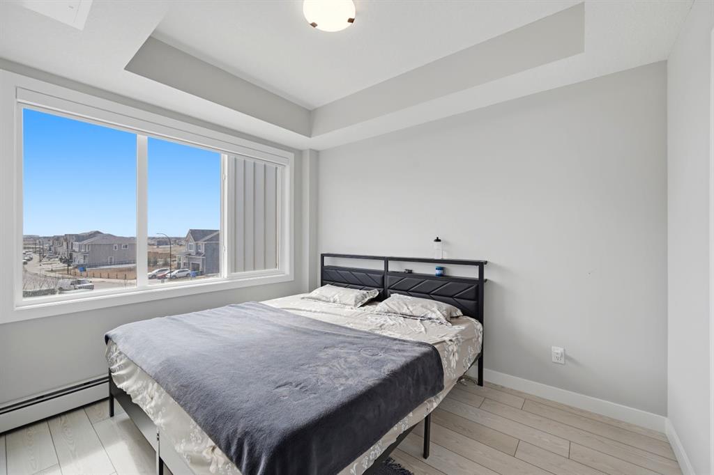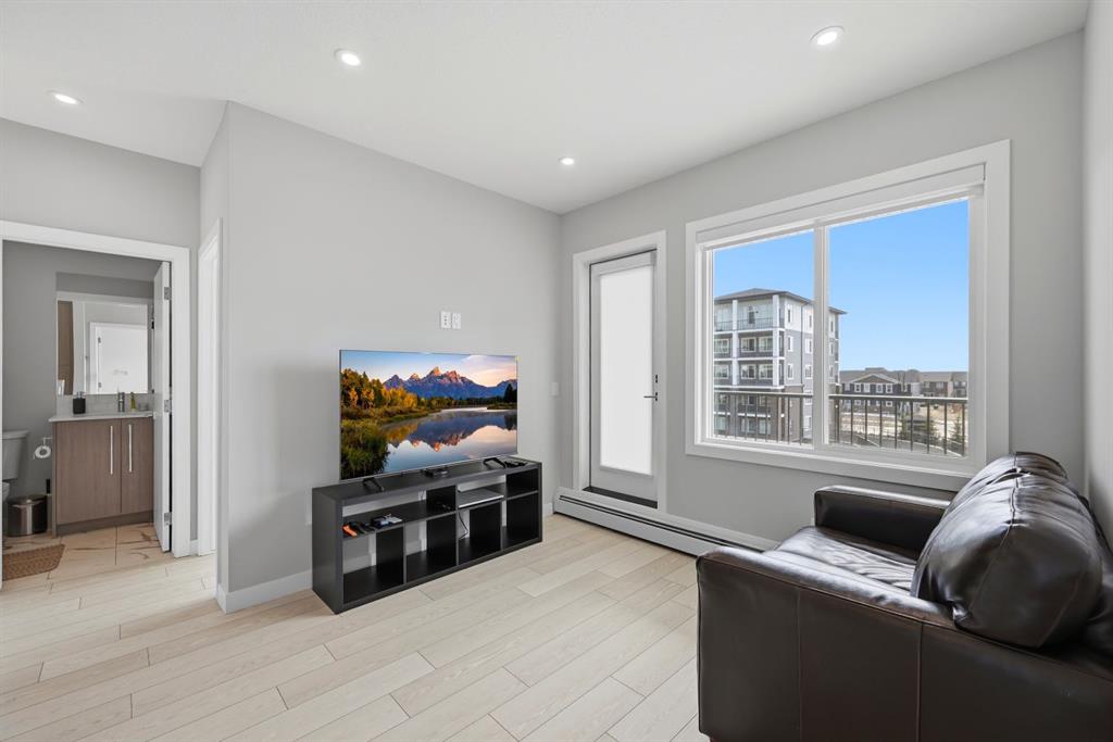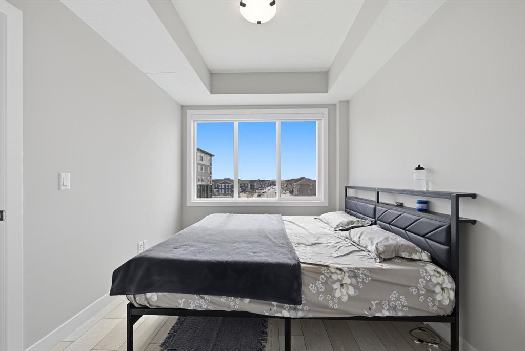 This bright 4th-floor corner unit offers 2 bedrooms, a dedicated office/flex space, 2 full bathrooms, and a south-facing balcony, all flooded with natural light through expansive windows. Elegant LVP flooring runs throughout the open-concept layout, where the contemporary kitchen with quartz counters flows into the living and dining area. The primary bedroom features a private 3-piece ensuite, while a generous second bedroom, 4-piece main bath, and in-suite laundry complete the functional floorplan. Residents enjoy access to a fitness centre and owner’s lounge, with CrossIron Mills, Costco, YYC Airport, Stoney Trail, and MĂ©tis Trail all within a 15-minute drive of Cityscape, one of northeast Calgary’s fastest-growing communities. A turn-key, tenant-occupied opportunity in a well-appointed building.