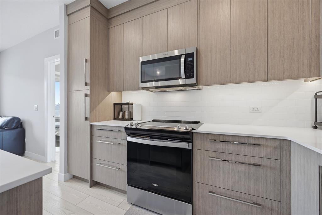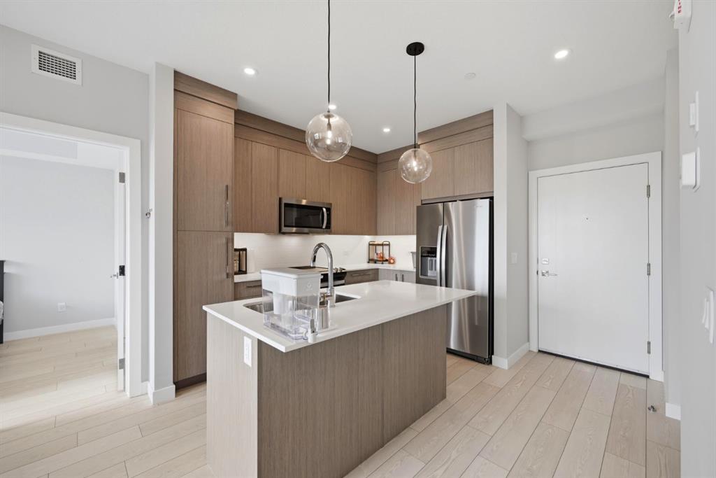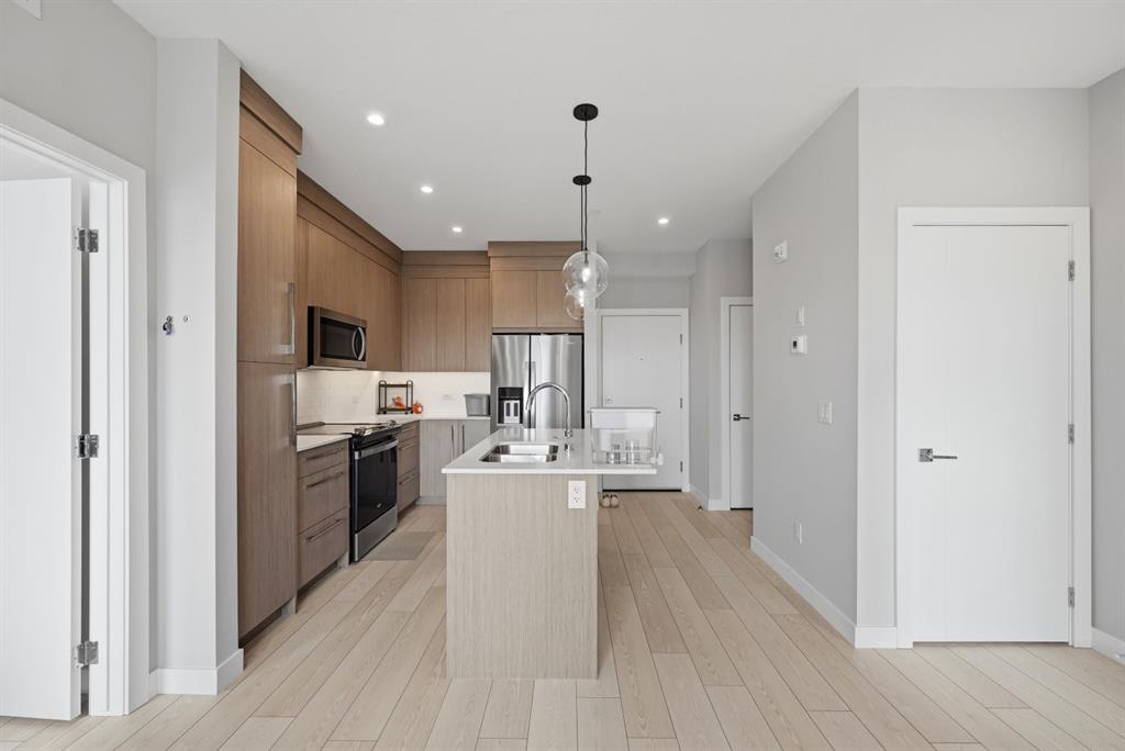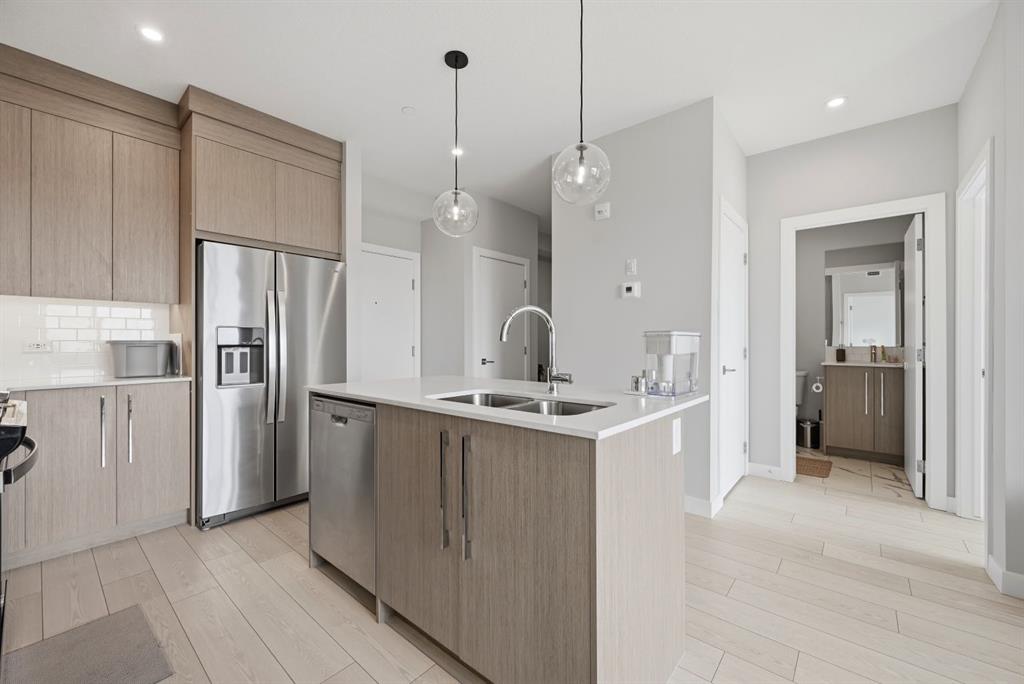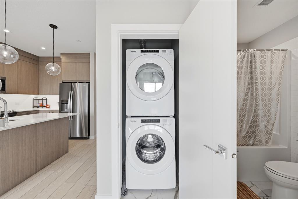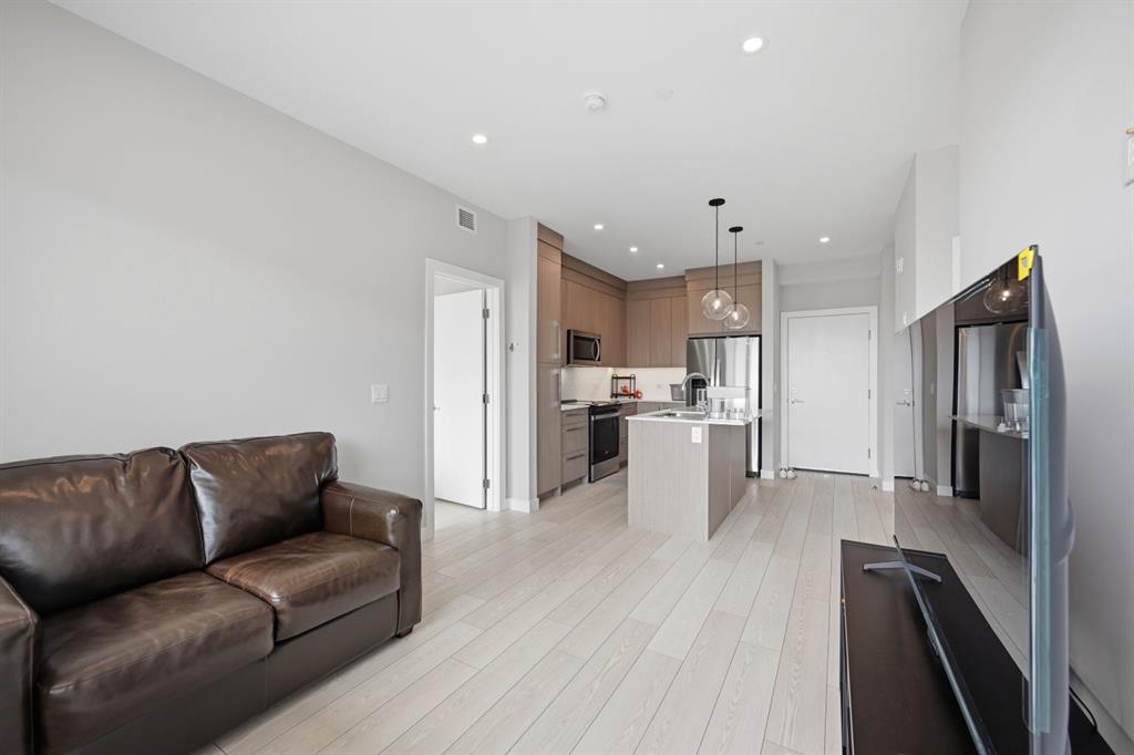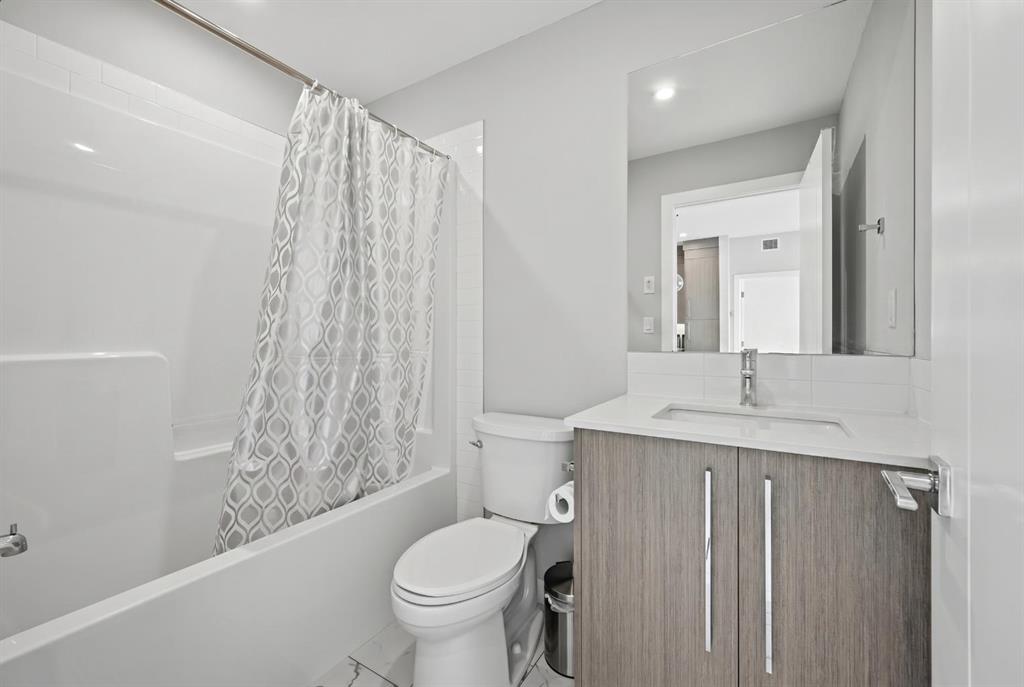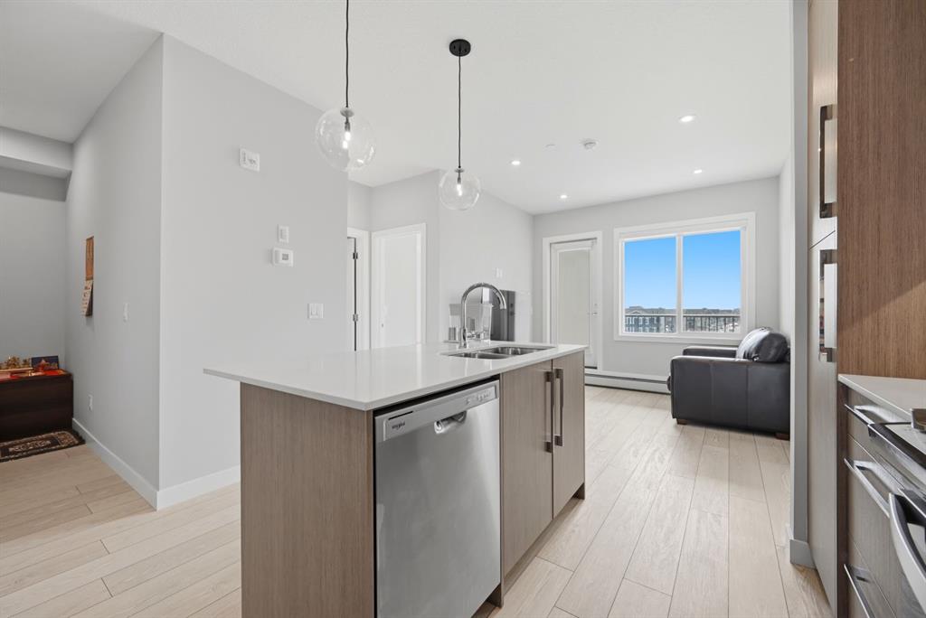 This bright 4th-floor corner unit offers 2 bedrooms, a dedicated office/flex space, 2 full bathrooms, and a south-facing balcony, all flooded with natural light through expansive windows. Elegant LVP flooring runs throughout the open-concept layout, where the contemporary kitchen with quartz counters flows into the living and dining area. The primary bedroom features a private 3-piece ensuite, while a generous second bedroom, 4-piece main bath, and in-suite laundry complete the functional floorplan. Residents enjoy access to a fitness centre and owner’s lounge, with CrossIron Mills, Costco, YYC Airport, Stoney Trail, and MĂ©tis Trail all within a 15-minute drive of Cityscape, one of northeast Calgary’s fastest-growing communities. A turn-key, tenant-occupied opportunity in a well-appointed building.