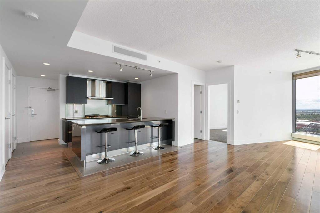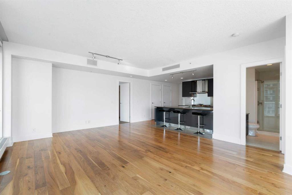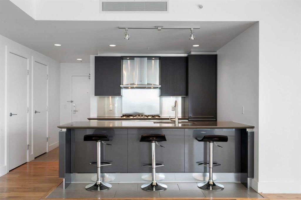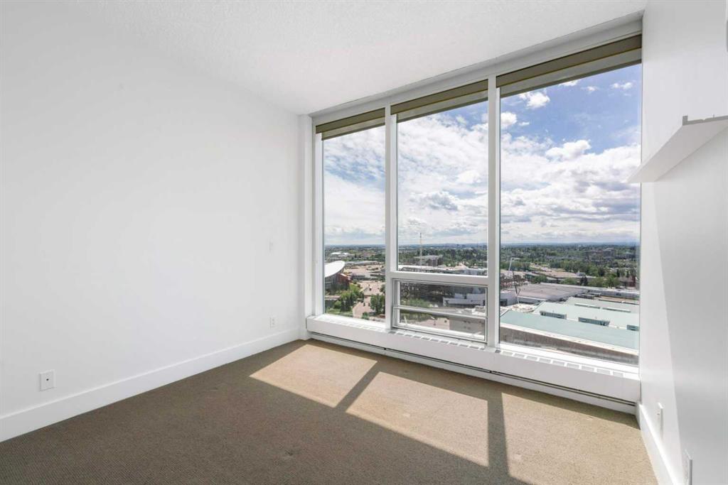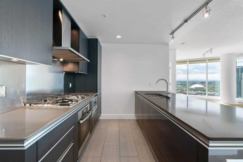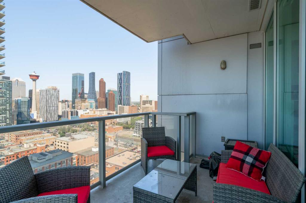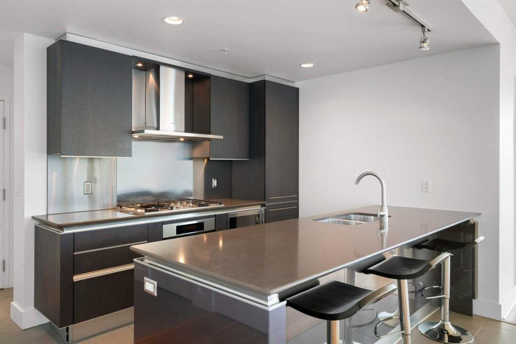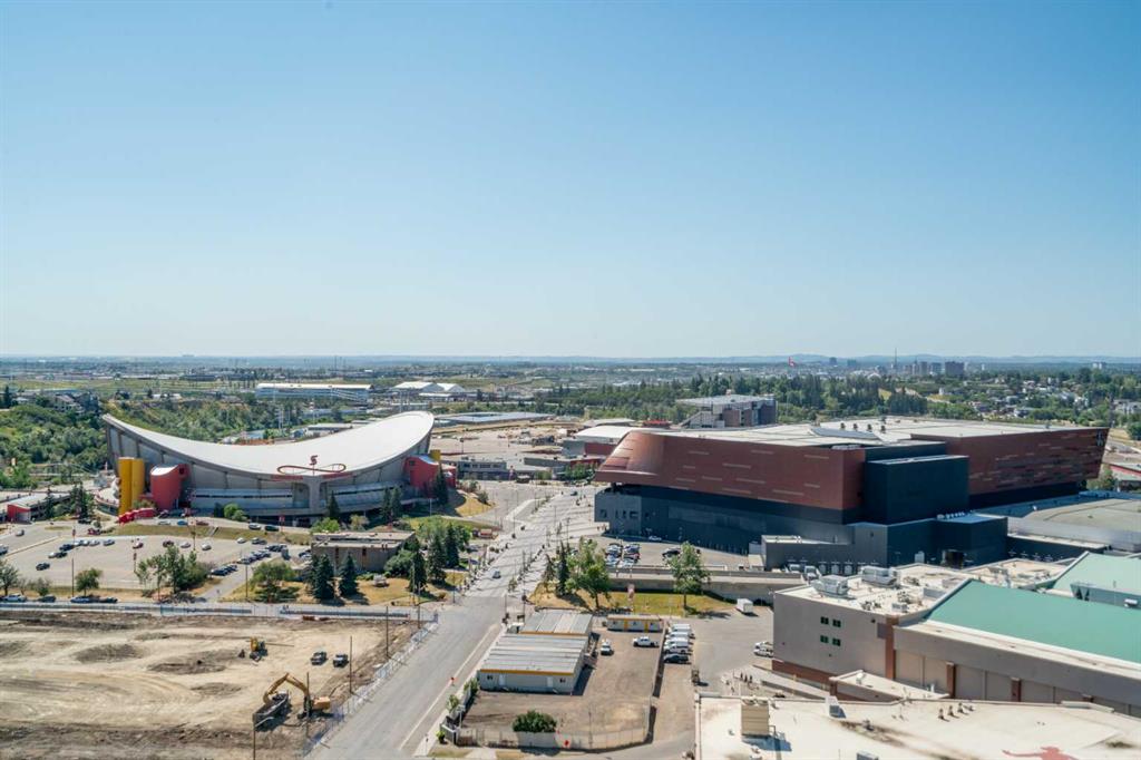 Experience elevated inner-city living in this northwest-facing 2 bedroom, 2 bathroom residence in the prestigious Arriva building, perfectly positioned near the future Flames arena and Calgary’s evolving entertainment district. With unobstructed downtown skyline and mountain views from every room, this home delivers a front-row seat to the city’s most iconic scenery. Designed with both functionality and flow in mind, the spacious open-concept living, dining, and kitchen area is ideal for entertaining or everyday living. Floor-to-ceiling windows flood the space with natural light while framing dramatic city views day and night. The sleek, modern kitchen features expansive quartz countertops, integrated Miele appliances with a 5-burner gas range, and Italian Snaidero cabinetry, offering both style and exceptional storage. The thoughtfully separated bedroom layout provides maximum privacy, making it ideal for professionals, roommates, or guests. The primary suite is a private retreat with a walk-through closet and spa-inspired ensuite featuring a separate soaker tub and shower. The second bedroom, located on the opposite side of the unit, works beautifully as a guest room, home office, or flex space, with easy access to the additional 3-piece bathroom. Step outside to the large balcony with gas line, perfect for BBQs while enjoying sunrise coffee or evening city lights. Additional highlights include in-suite laundry, a separate storage locker, and a titled underground parking stall. Arriva offers a premium, full-service lifestyle with 24-hour concierge/security, central air conditioning, guest suites, an owner’s lounge, and pet-friendly living. Located steps from downtown, the Beltline, Inglewood, river pathways, dining, arts, and Calgary’s newest entertainment hub, this is a rare opportunity to secure a home with both exceptional livability today and exciting long-term upside.