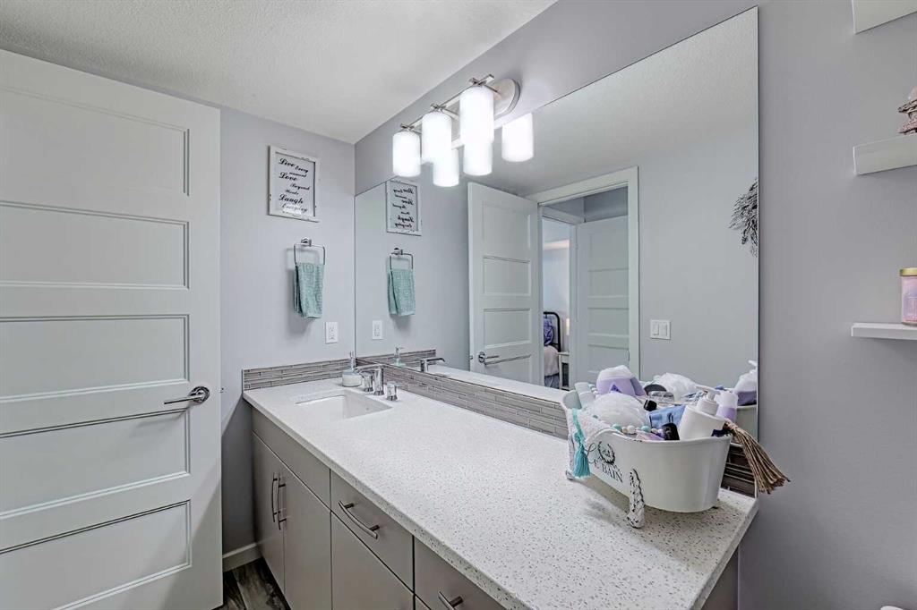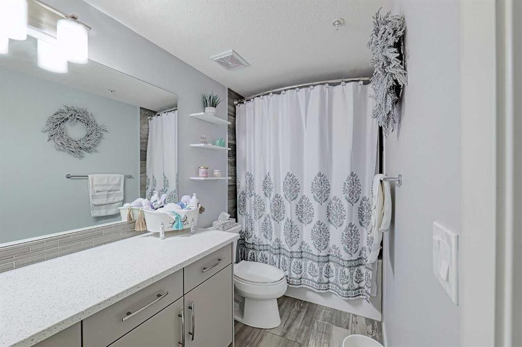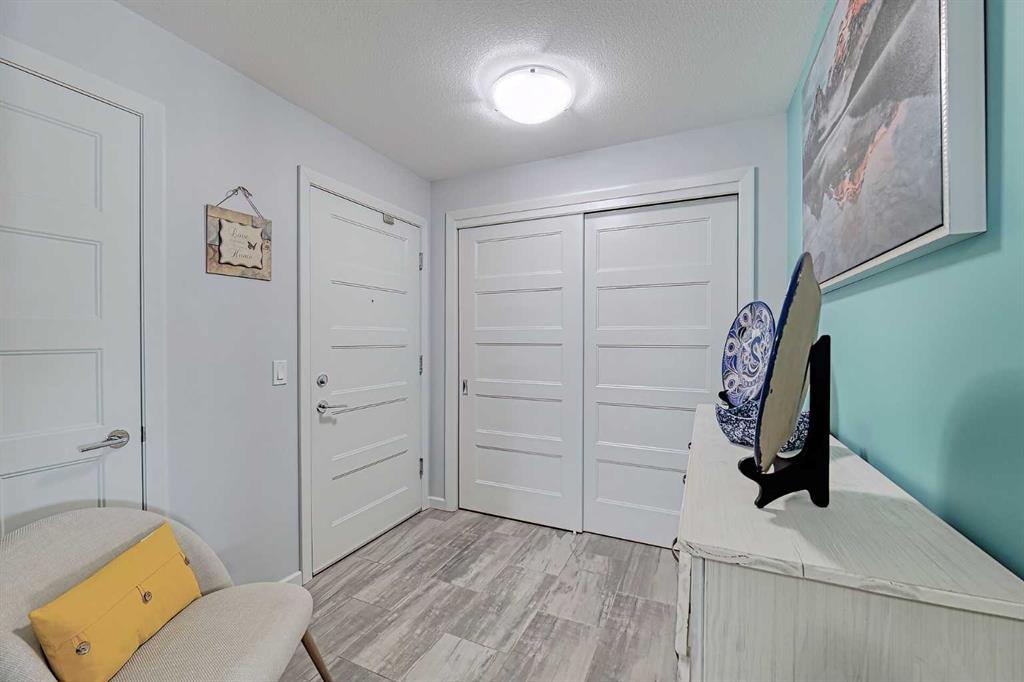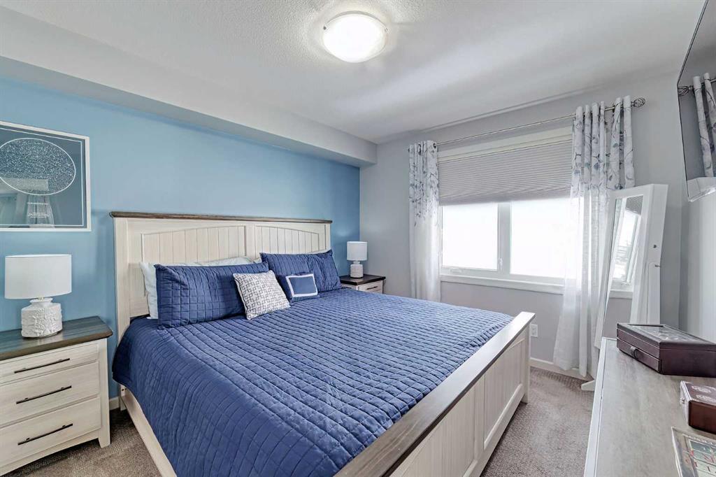 Beautifully kept – this spacious 2 bedroom, 2 bathroom unit in the sought after complex “The Pinnacle at Kincora” is sure to impress! Lovely curb appeal and perfectly situated within the community of Kincora within walking distance to parks, pathways, and everyday shopping conveniences. Offering 941 SF of functional design welcoming you into a large foyer where you will love the choice flooring and color pallet throughout that is visually captivating. The Chef’s kitchen showcases high-end stainless-steel appliances, mosaic tile backsplash, Quartz countertops and an over-sized island with eating bar. The dining area has French door access to the balcony and opens to the living room with cozy gas fireplace. The primary bedroom features a walk-in closet with custom built-ins and a 4 piece ensuite with dual sink vanity. A second guest room with dual closets, 4 piece bathroom and insuite laundry complete this unit. Don’t overlook the central AC for those hot summer days, titled underground parking stall, assigned storage locker and bike storage. Enjoy the maintenance free, 18+ adult living in a pet friendly building (upon board approval) today!
