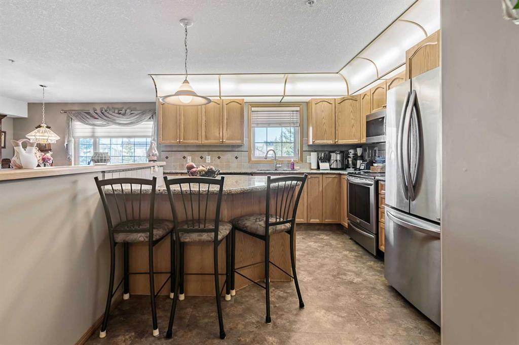 **55+ LIVING AT ITS FINEST!** WELCOME HOME to the Comfort & Convenience of living at the HIGHLY COVETED Sierra’s of Country Hills! This Well-Managed Adult Living Complex offers an amazing sense of COMMUNITY, boasting an ACTIVE & INDEPENDENT environment with exceptional AMENITIES! Curl up with a good book in the LIBRARY, relax by the FIREPLACE in the SOCIAL LOUNGE, explore your creativity in the CRAFTS ROOM, Connect with neighbours in the MEDIA/GAMES/REC Rooms complete with pool table & shuffleboard, or stay active with the FITNESS ROOM, indoor POOL & HOT TUB & MORE! – SO MANY wonderful ways to fill your days & enjoy a VIBRANT social calendar! Retreat back to your SPACIOUS Suite, one of the LARGEST FLOORPLANS IN THE COMPLEX, showcasing a lovely OPEN CONCEPT design with nearly 1500ft of living space inside + a HUGE PRIVATE WEST-FACING OUTDOOR LIVING SPACE & plenty of NATURAL LIGHT, compliments of the large WINDOWS. This Beautifully MAINTAINED home welcomes you with an INVITING entrance, a BRIGHT & FUNCTIONAL RENOVATED Kitchen with Plenty of Cabinetry & STONE Counter Space, Engineered Hardwood Flooring throughout, Large Dining Area & Living Room with cozy GAS Fireplace. Completing the floor plan of this LOVELY HOME is a LARGE Master Bedroom with its own 2nd GAS FIREPLACE, WALK-IN CLOSET & ENSUITE Bath, 2nd Spacious Bedroom/DEN/OFFICE, an additional Full Bath & the convenience of IN-SUITE LAUNDRY & Extra Storage Space. Stay cool & comfortable on hot Summer days with the convenience of Central AIR CONDITIONING, or step outside onto your HUGE Covered BALCONY – the perfect spot to relax & enjoy a nice warm cup of coffee or BBQ for friends & family & take in all the fresh air & sunshine you need! This wonderful unit also comes complete with 2 Underground HEATED PARKING STALLS, Extra Underground Storage & access to the private CAR WASH! Condo Fees include all utilities, electric, heat, water, sewer, trash & Numerous AMENITIES to round out the PERFECT ADULT LIVING EXPERIENCE! So, set aside all your worries & just ENJOY LIFE! This complex also offers additional Visitor Parking Stalls & GUEST SUITES available for rent (subject to availability) when you have overnight guests! Step right outside & enjoy the Beautiful GREENSPACES & PARKS nearby, take a stroll around the Tranquil WALKING PATHS, or enjoy an afternoon at the Country Hills Golf Club! This is the IDEAL place to call HOME! Simply move in & enjoy the active, MAINTENANCE-FREE lifestyle designed for COMFORT, EASE & CONNECTION that Sierra’s of Country Hills has to offer!
