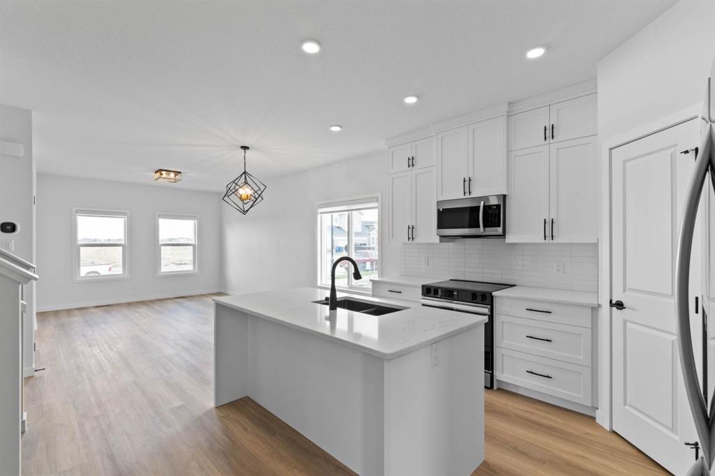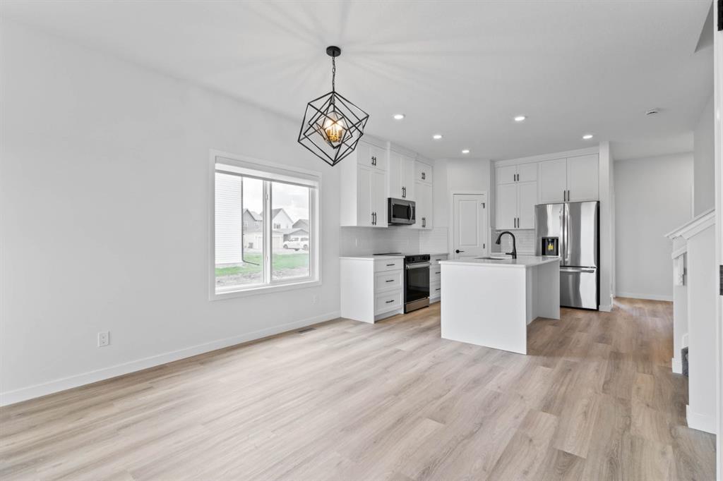 Discover your dream home in the vibrant, growing community of Vistacrossing in Crossfield! Crafted by Airdrie’s premier, award-winning builder, McKee Homes, this beautifully designed 1,631-square-foot residence perfectly balances modern style with everyday functionality. Step inside to find a thoughtfully planned main floor that includes a spacious bedroom and a full bathroom—an exceptional setup for accommodating guests, supporting multigenerational living, or creating a private home office. The heart of the home is a warm and inviting open-concept living, dining, and kitchen area. Here, you will find elegant cabinetry, sleek modern finishes, and abundant storage space designed to inspire your inner chef. Venture upstairs to discover three generously proportioned bedrooms. The highlight is the tranquil primary suite, which serves as a true retreat, complete with a private ensuite bathroom and his-and-hers walk-in closets. The lower level offers incredible potential for future expansion, featuring a basement equipped with rough-ins and two egress windows, ready to be transformed to suit your family’s unique needs. Don’t miss this incredible opportunity to own a versatile, beautifully appointed home in one of Crossfield’s most sought-after new neighbourhoods. Experience the exceptional quality of McKee Homes today! Book your showing today.