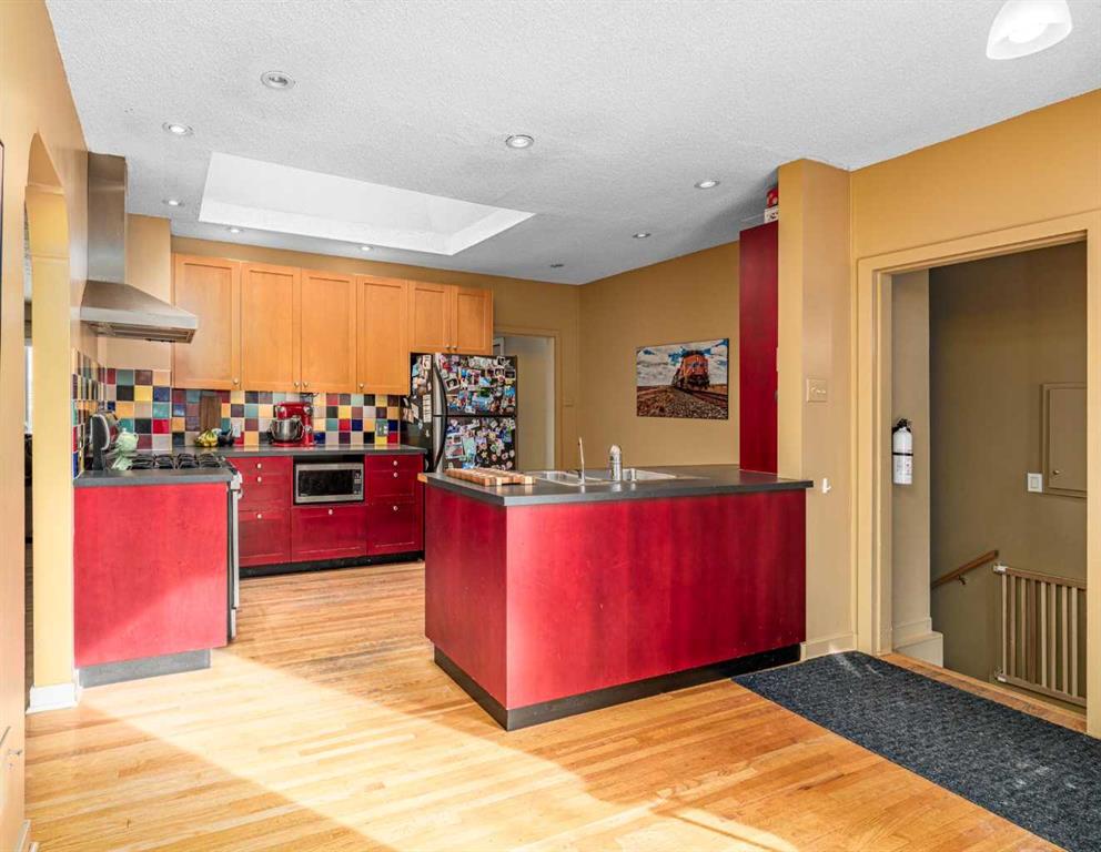 Situated in Richmond, the desirable inner-city community, this spacious 2,800 square foot raised bungalow offers a magnitude of opportunity. Perched on an elevated lot offers truly spectacular, unobstructed panoramic views of the downtown. From the main living areas to the lower level, the city skyline becomes part of your everyday backdrop. Even the basement bedroom enjoys stunning city views, a rare and remarkable feature that makes this home and lot stand out from the rest. This home is full of warmth and character, from the artisan created tile kitchen backsplash, beautiful and sunny large 570 sq ft back family room, new (2025) 22’x23’ garage blending timeless charm with thoughtful updates. The kitchen features stainless steel appliances, a gas stove, and a very functional layout with direct views into the sunny west facing backyard. The substantial garage is a standout, equipped with 200-amp electrical service, heater, sloped roof line making it ideal for a workshop, hobby space, or car enthusiast. Additional upgrades include new triple pane windows almost throughout, furnace replaced in 2020 and a previous single car front drive garage converted to storage. This storage space could be converted to additional living space, or 4th bedroom. Whether you call this home, renovate or rebuild you will enjoy the unmatched downtown views, character-filled details, and flexible living options, this Richmond property is a rare opportunity in one of Calgary’s most sought-after inner-city communities. Open houses are being held both Saturday and Sunday, come and take a look!