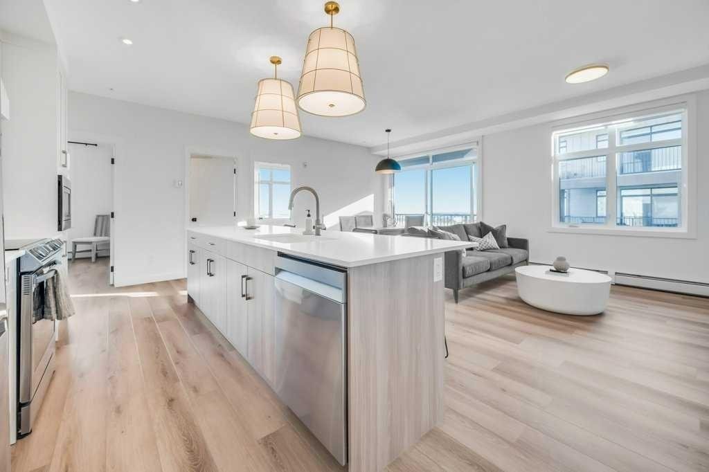 This 917 sq. ft. home is flooded with natural light thanks to its open exposure. The kitchen is a showstopper, featuring stunning pendant lighting, a custom hood fan, full-height cabinetry, and upgraded stainless appliances. The open-concept floorplan offers excellent flexibility and flows seamlessly to a large balcony with gas hookup—perfect for summer evenings or your morning coffee.