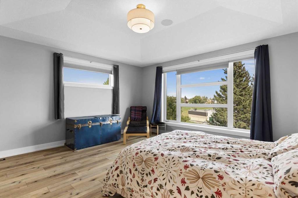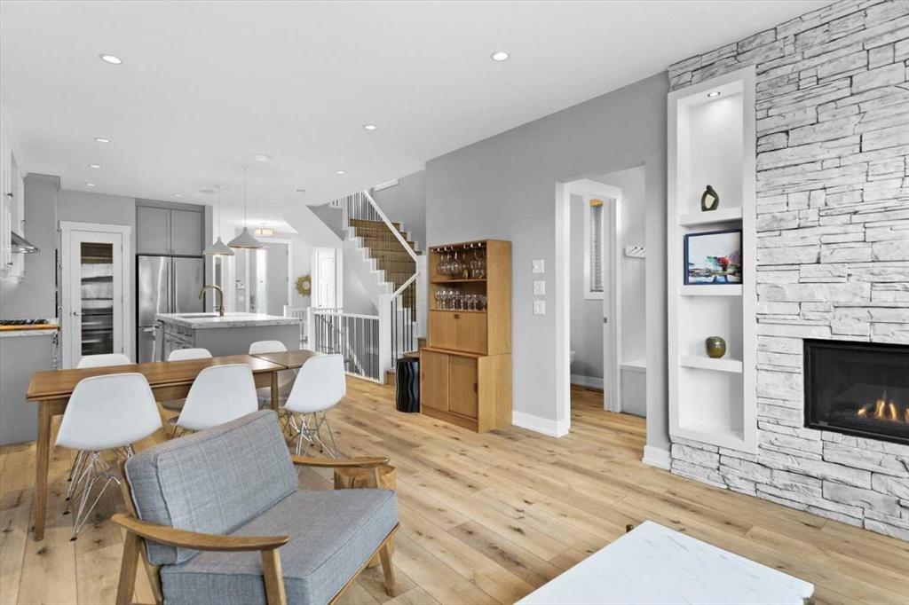 Rarely does a home in an established inner-city neighbourhood deliver this level of space, finish, and thoughtful design. Located in the sought-after community of Banff Trail, this stunning 3-storey semi-detached offers 3,380 square feet of meticulously maintained living space across four levels and designed to impress from the moment you arrive. Exceptional curb appeal and quiet sophistication set the stage for everything waiting inside. The main floor sets the tone immediately. Wide-plank luxury vinyl plank flooring flows through a bright, open layout where natural light pours through oversized windows. A dedicated front office with custom built-ins and tall windows is perfect for remote work, quiet reading, or creative pursuits. The chef’s kitchen is the true heart of the home, featuring an expansive quartz island, professional 6-burner gas range, built-in wall oven, premium stainless appliance package, and a generous walk-in pantry ready to elevate every meal from busy weekday mornings to elegant weekend dinner parties. The kitchen flows seamlessly into the family room, where a stone-surround gas fireplace creates a warm and inviting backdrop for relaxed evenings and easy casual gatherings. The second level offers two generously sized bedrooms, each with a walk-in closet and private ensuite. One features a serene 4-piece bath, while the other includes a beautifully appointed 5-piece ensuite with dual vanities and a private water closet. Laundry is conveniently located on this level & sits beside the bedroom with the 5-piece ensuite for added everyday ease. A central flex room completes the floor & works perfectly as a media space, playroom, or cozy reading nook for the whole family. Ascend to the third-floor primary loft, the true showpiece of the home. This expansive retreat features a spacious bedroom with its own lounge area, and a boutique-style walk-in closet with custom built-ins. The luxurious ensuite impresses with heated floors, dual vanities, a steam shower, and a deep soaker tub. Begin your mornings bathed in natural sunlight and end your evenings in total calm, peacefully elevated above the neighbourhood. The fully finished basement is thoughtfully designed for entertaining and everyday flexibility. A large recreation room anchored by a sleek wet bar sets the stage for game nights and lively gatherings, while an additional bedroom with walk-in closet and a full bathroom makes this level ideal for guests or older teens who need their own space and privacy. Throughout the home, built-in speakers elevate every occasion and central air conditioning ensures year-round comfort. Outside, a private backyard patio is perfect for summer barbecues and unwinding after a long day, complemented by low-maintenance landscaping that offers a peaceful green escape without extra weekend work. A double detached garage at the rear provides secure parking and valuable additional storage for all seasons. Just steps to LRT, top-rated schools, Crowchild Trail, and 16 Avenue.