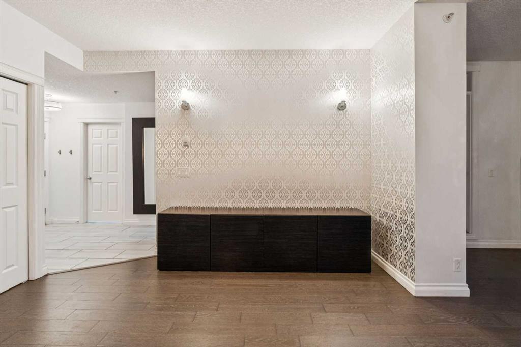 Situated in a solid concrete building, this home offers enhanced durability, soundproofing, and peace of mind. Overlooking the courtyard, west- and north-facing windows flood the space with natural light. The open-concept living and kitchen area features 9-foot ceilings, contemporary lighting, elegant finishes, and a striking feature wall—perfect for both relaxing and entertaining. The spacious primary bedroom includes a large closet and convenient cheater ensuite access.