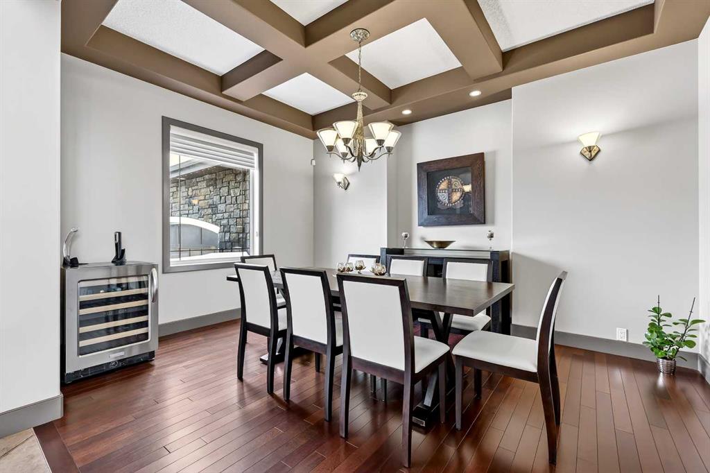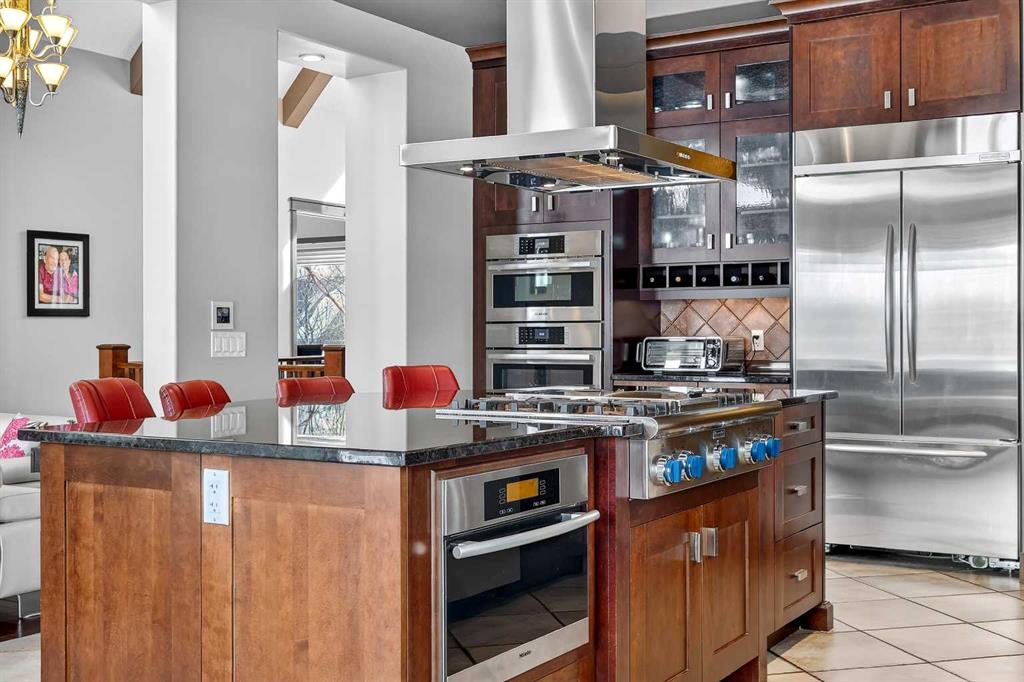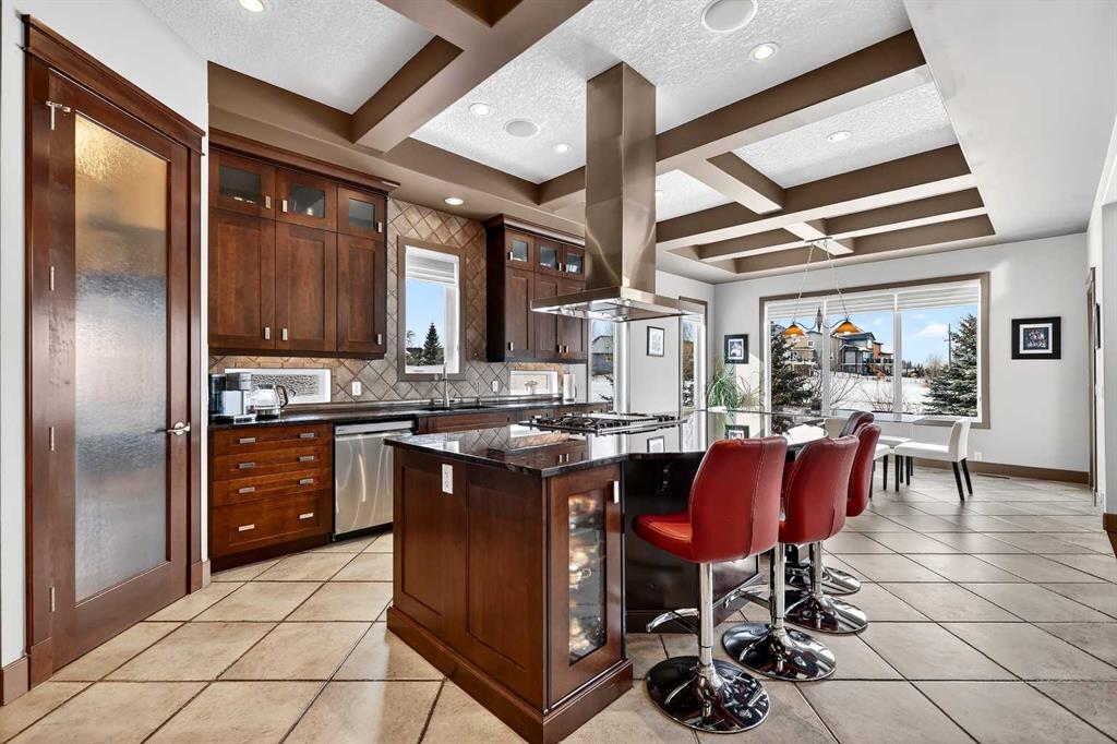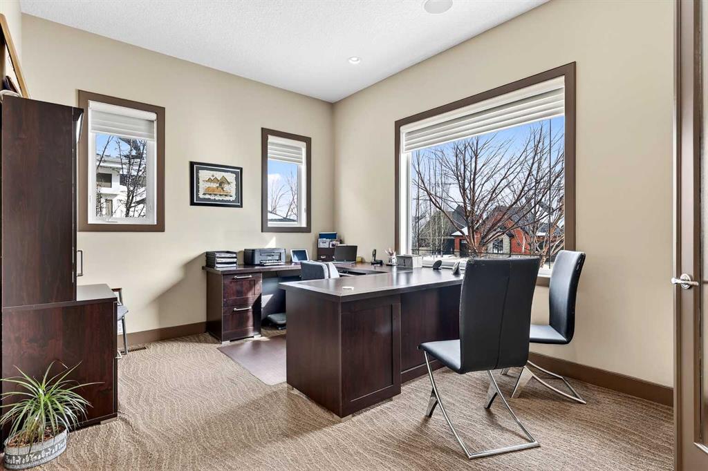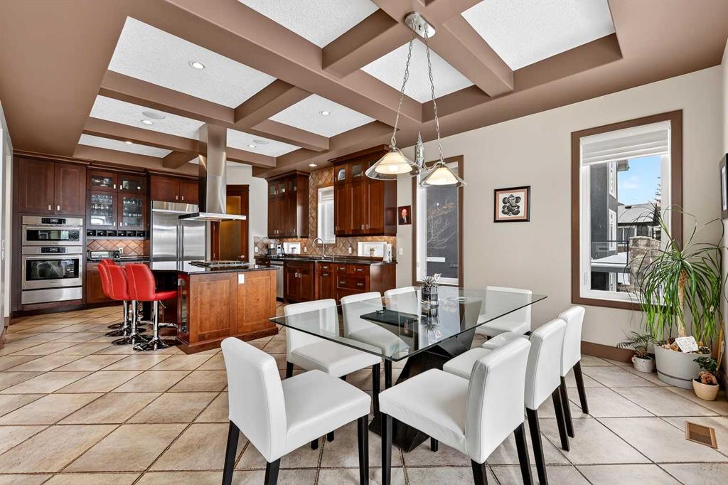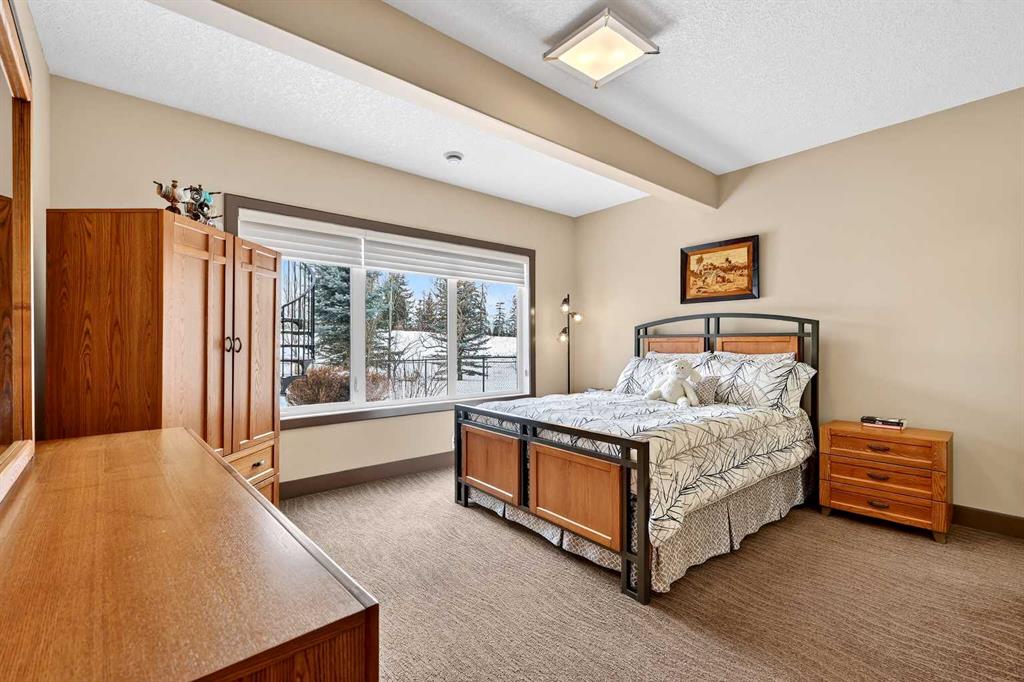 Welcome to an extraordinary walkout bungalow in the prestigious community of Heritage Pointe — a residence of architectural significance and uncompromising quality, offering over 4,200 sq. ft. of exquisitely developed living space in a serene, estate setting. From the moment you enter, soaring nearly 20-foot vaulted ceilings with dramatic exposed beam structures draw your eyes upward, creating a breathtaking first impression. A grand, central staircase elegantly anchors the home and sets the tone for the refined design carried throughout. The main living area is nothing short of spectacular — a massive great room framed by three tiers of stunning windows that flood the space with natural light while accentuating the dramatic ceiling lines. A striking central fireplace adds warmth and balance. A formal dining room with coffered ceiling sits on one side, while a spacious executive den or office on the other provides the perfect work-from-home retreat. Designed for elevated entertaining, the chef’s kitchen features a statement island with professional Thermador gas cooktop and Faber island-mounted canopy hood. Premium built-in appliances include a Miele steam oven, Bosch convection microwave, wall oven with warming drawer (2023), a 42” built-in KitchenAid refrigerator, and LG dishwasher (2023). A generous walk-in pantry and a bright breakfast nook with coffered ceiling overlooking the backyard complete this exceptional culinary space. The primary retreat is a private sanctuary, offering direct access to the upper deck and a spa-inspired ensuite with an oversized central soaker tub set beneath an arched ceiling feature, dual vanities, an expansive tiled shower with bench and glass enclosure, built-in cabinetry, water closet, and a spacious walk-in closet. Descend the showpiece staircase to a spectacular lower level designed for leisure and entertaining. A stunning custom bar with classic martini pendant lighting, dual televisions, and an elegant water feature creates a refined lounge atmosphere. The expansive recreation area, dedicated media room, and two additional bedrooms — each with walk-in closets and connected by a beautifully appointed Jack-and-Jill bath with dual vanities and oversized shower — offer exceptional space for family and guests alike. Year-round enjoyment awaits in the fully enclosed sunroom featuring a hot tub and access to the patio. The professionally landscaped backyard is a private oasis with mature trees, a water feature, putting green, and tranquil greenspace with walking path beyond. Completing the home is an oversized triple attached heated garage with epoxy flooring, built-in cabinetry, and wheelchair lift. An aggregate driveway, gemstone lighting, and timeless stone accents further elevate the curb appeal. Set within a coveted lake community where nature surrounds you and peaceful luxury defines daily life, this is a truly sophisticated estate — designed to impress and destined to be cherished.