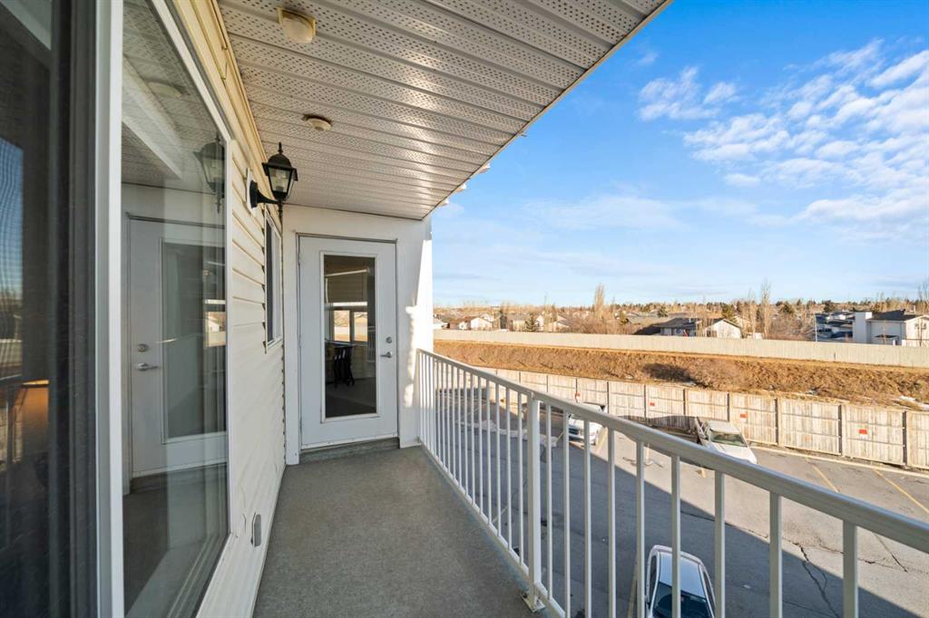 Create the simplified lifestyle of your dreams in this move-in-ready, 912 sq ft, 2-bedroom condo. From the moment you enter, the efficient and functional layout stands out. A spacious entry with coat closet and pantry leads into the kitchen, featuring ample cabinetry and counter space for cooking or ordering in. The central island with raised-bar seating is the heart of the space—perfect for casual meals or conversation. The open-concept living area offers flexibility for dining, lounging, reading, or a home office, all enhanced by large windows that flood the space with natural light and showcase expansive views. Step outside onto your private balcony—ideal for a bistro table and chairs to enjoy the day. A versatile flex room easily serves as a second bedroom, office, gym, or tv/entertainment space. Nearby is a 3-piece bathroom with convenient in-suite laundry. Tucked away for privacy, the spacious primary suite features an oversized bedroom with room for a king-sized bed, a large walk-in closet with additional storage, a second two-door closet with shelving, and a private 4-piece ensuite. This condo offers exceptional storage throughout, making it easy to keep an organized home. Fresh paint and new top-down/bottom-up window coverings complete the interior. Additional features include in-floor radiant heating and hot water on demand. The unit includes one titled heated underground parking stall and has one outdoor stall, plus ample visitor parking. Located in a well-managed, pet-friendly complex with a well-funded reserve fund. The condo fees include heat, water, snow removal, landscaping, and professional management. Conveniently close to shopping, restaurants, schools, transit, and major routes. Enjoy nearby amenities such as Bert Church Live Theatre, Genesis Place, Nose Creek Park, walking trails, and community activities. Call your favorite REALTOR® to book your showing.
