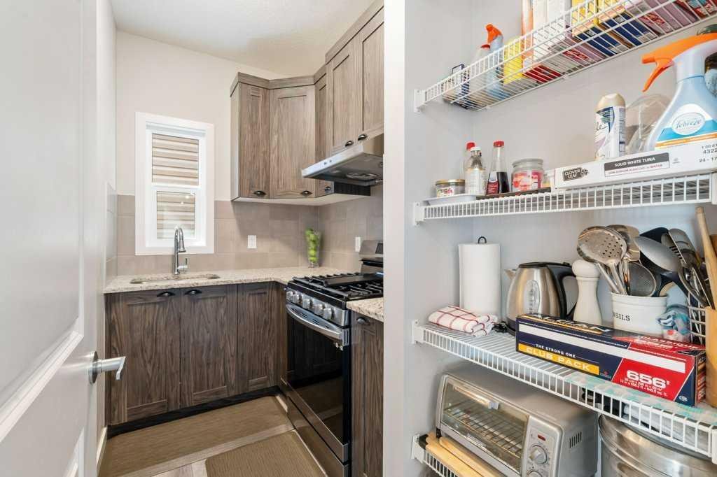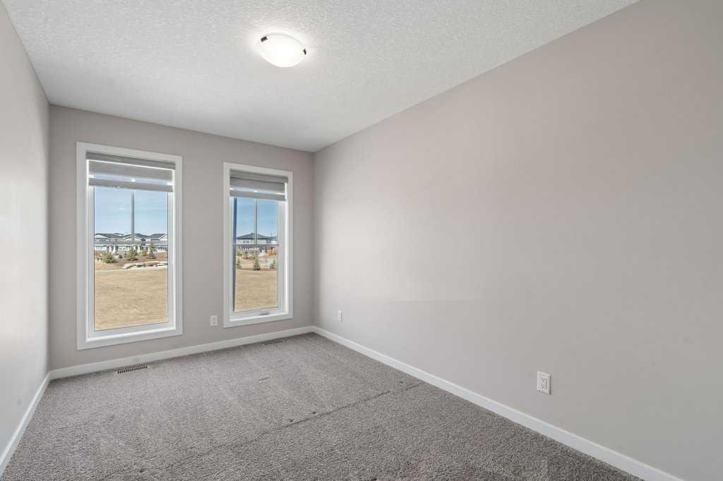 Welcome to this spacious and beautifully appointed 5-bedroom, 3.5-bathroom family home in the desirable NW community of Carrington. With 2,279 sq ft above grade and an additional 918 sq ft in the fully finished basement, this home offers over 3,100 sq ft of thoughtfully designed living space—ideal for large families, multigenerational living, or anyone craving extra room to grow. The main floor welcomes you with a bright, open-concept layout featuring 9’ ceilings and a warm, inviting living room with a gas fireplace. The adjacent dining area opens onto the sunny south-facing backyard via patio doors, extending your living space onto the deck—perfect for outdoor entertaining. The chef-inspired kitchen is a true showstopper, complete with an extra-long granite island, two-tone cabinetry, stainless steel appliances, and a separate spice kitchen with a second gas stove, powerful hood fan, and extra storage—ideal for preparing meals without lingering aromas in your main living space. A private office/den, 2-piece powder room, and a mudroom additional storage complete the main floor. Upstairs, you’ll find a thoughtfully designed layout with a central bonus room, perfect for family movie nights or a kids’ play area. The primary suite is a serene retreat with a walk-in closet and a luxurious 5-piece ensuite featuring dual vanities, a deep soaker tub, and a separate shower. Three additional bedrooms share a 4-piece bathroom, and the convenient upper-floor laundry makes daily chores a breeze. The fully finished basement offers incredible flexibility with a large recreation room, 5th bedroom, another 4-piece bathroom, and plenty of storage. The 9’ ceilings and plumbing rough-ins provide the potential for a future basement suite (subject to approval and permitting by the city/municipality) or second kitchen. Enjoy the sunny, south-facing backyard that backs onto green space and a walking path, providing privacy and a peaceful backdrop. The low-maintenance landscaping, iron front and back railings, upgraded spindles, and central A/C add function and style to this impressive home. Ideally located in Carrington, you’re just minutes from NW Calgary’s best amenities, including shopping and dining, the Vivo and YMCA recreation centres, schools, playgrounds, theatres, and easy access to major routes like Stoney Trail. This is the total package—space, comfort, and convenience, all in a family-friendly community.