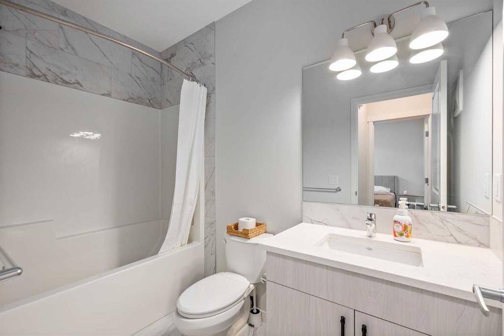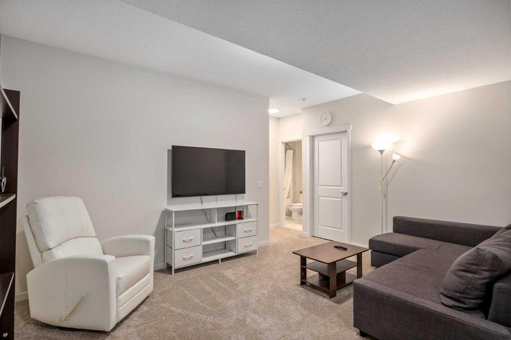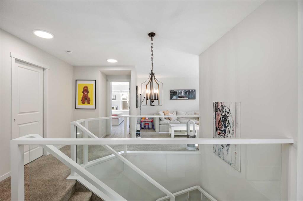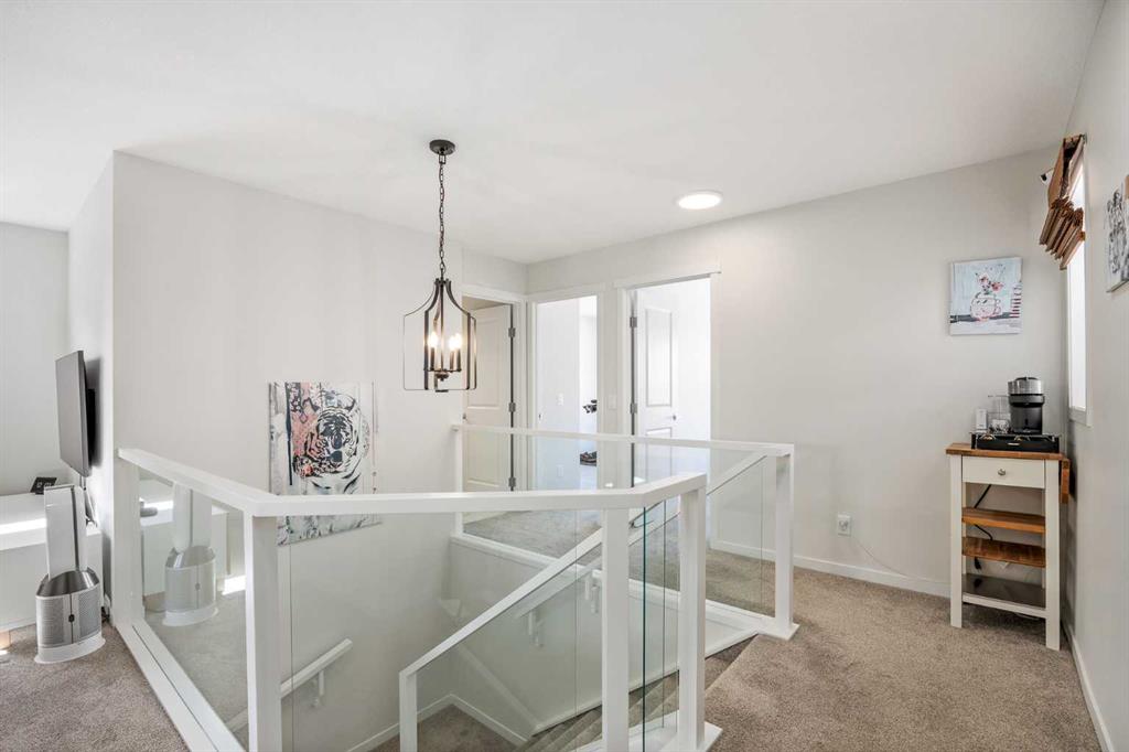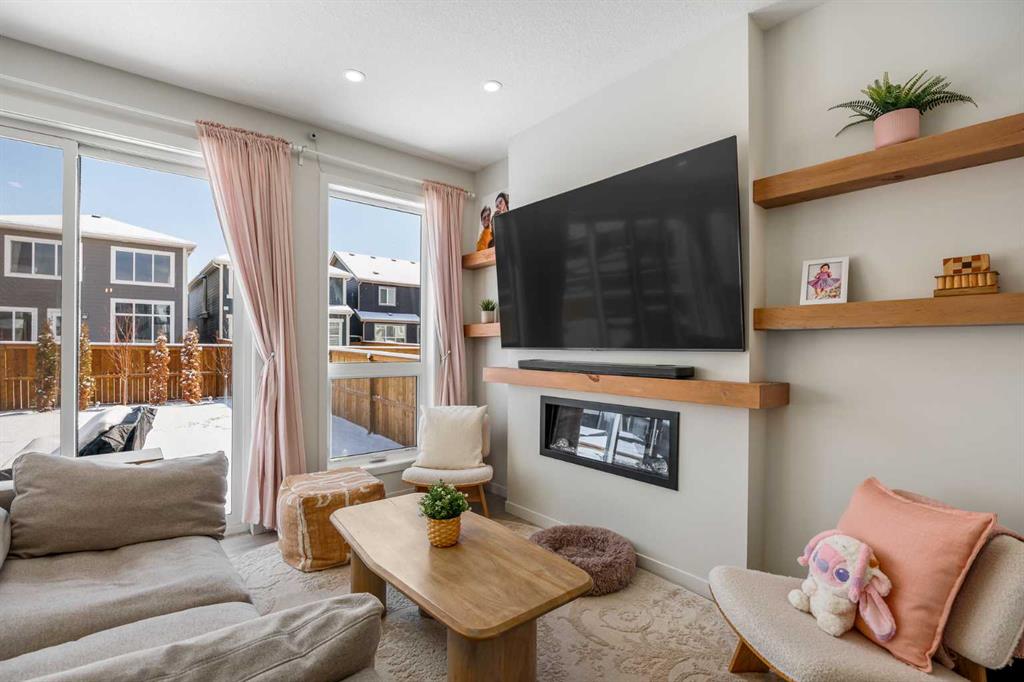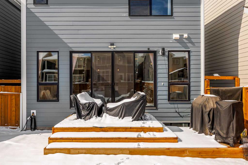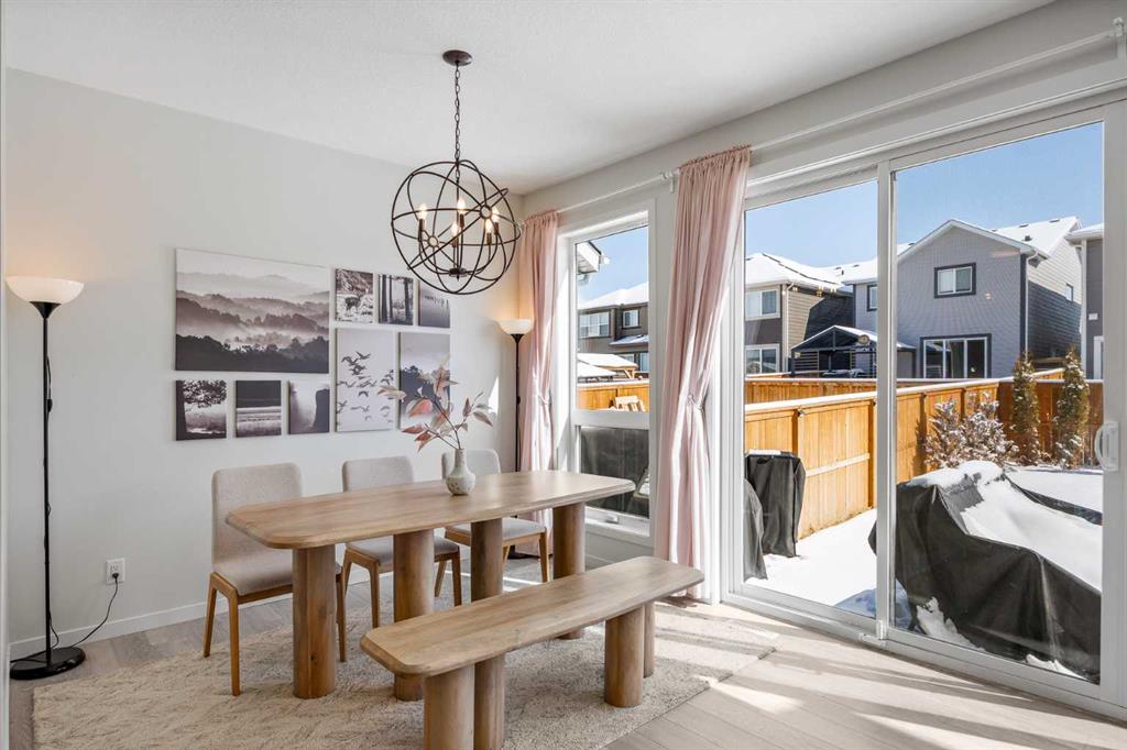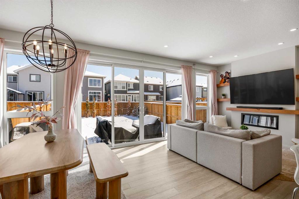 Welcome to this beautifully finished, fully developed home in Mahogany, offering over 1,700 sq ft above grade plus a builder finished basement for a truly turnkey opportunity. Thoughtfully designed in warm, modern tones, this home stands out with an airy Scandinavian inspired feel, a functional family layout, and one of its most compelling features: an exceptional indoor-outdoor living experience that is rarely found in the area. From the moment you step inside, the home makes a strong first impression with a spacious front entry, complete with a front closet and convenient access to both the upper and lower levels. As you move into the heart of the home, the layout opens up beautifully with a central kitchen that anchors the space while overlooking the back dining area and living room, creating the kind of connected main floor that works just as well for daily life as it does for entertaining. The kitchen is a true showpiece, finished with stylish white oak-inspired cabinetry, black hardware, raised cabinetry to the bulkhead, stainless steel appliances, a gas stove, elongated white subway tile backsplash, and white quartz counters with soft grey veining. A large central island offers plenty of prep space and casual seating, while the walk-through pantry connects seamlessly to the back mudroom and double attached garage. At the rear of the home, the living and dining spaces are filled with natural light through the wall to wall windows and patio doors, designed to make the most of the backyard setting (but don’t worry the central A/C will keep you cool all summer long). The living room is warm and inviting, highlighted by an electric fireplace with a wood mantle and built-in wood shelving. The dining area is generously sized with a modern light fixture above, while dual central sliding patio doors create a standout feature, opening the home to the deck and oversized backyard beyond. With more outdoor space than many homes in the area and trees along the back, this setting creates a rare and highly desirable indoor-outdoor lifestyle. Upstairs, a central bonus room with a transom window creates a bright and versatile second living space, while glass railing wraps the upper level and enhances the open feel throughout. The primary suite is a relaxing retreat with a walk-in closet complete with organizers and a beautifully finished 5 piece ensuite featuring dual sinks, a soaker tub, a standalone shower, and marble look vinyl tile flooring. Two additional bedrooms, a full 4 piece bathroom, and a separate laundry room complete the upper level. The fully finished basement adds even more value, offering a central rec room, a full bedroom, a 4-piece bathroom, and a mechanical room that still provides excellent storage. Located close to two playgrounds and in one of Calgary’s most sought-after lake communities, Mahogany offers an unmatched lifestyle with lake access, beaches, pathways, parks, schools, shops, and restaurants all nearby.