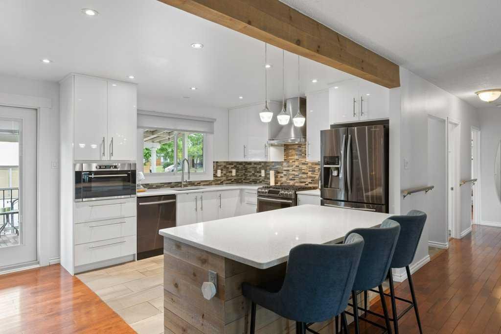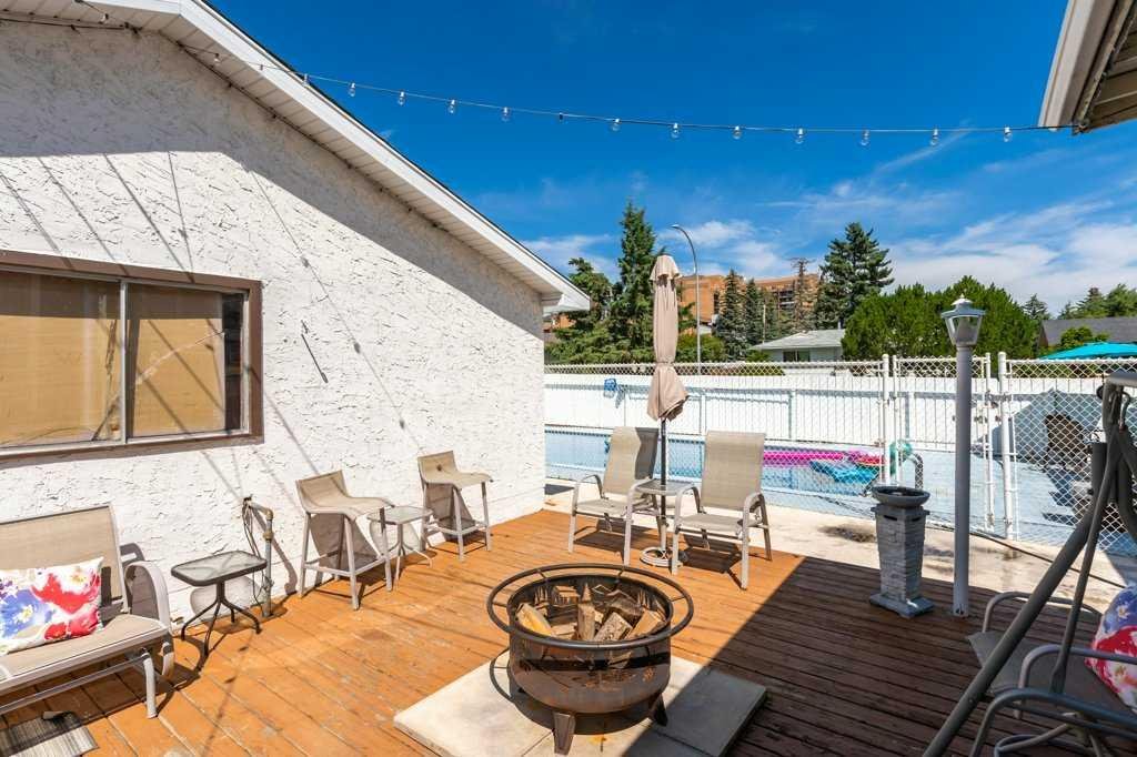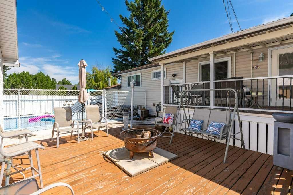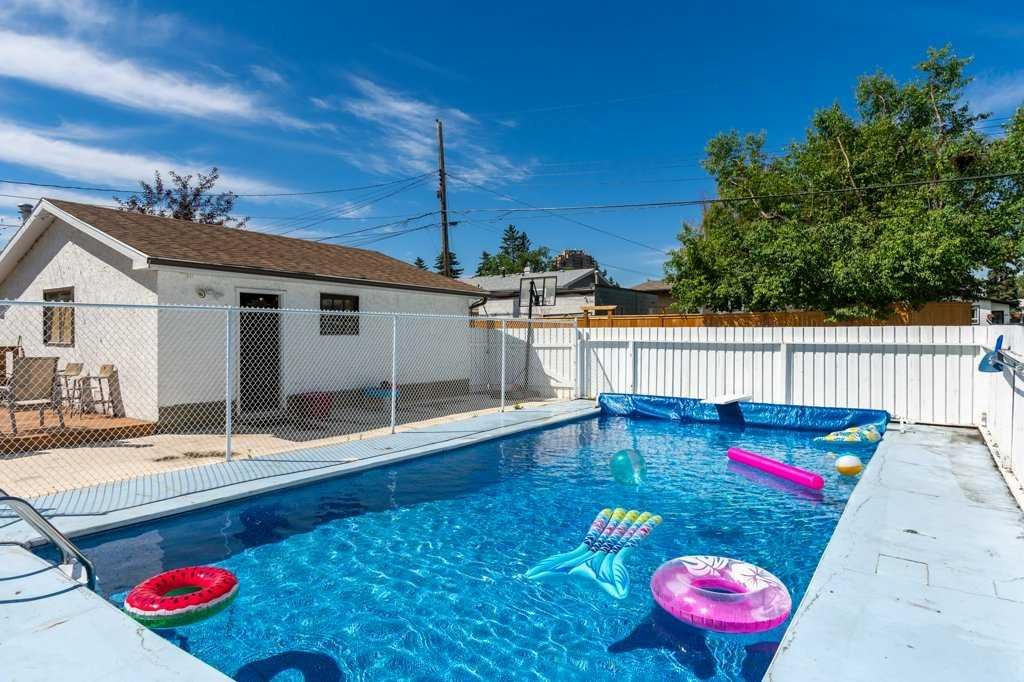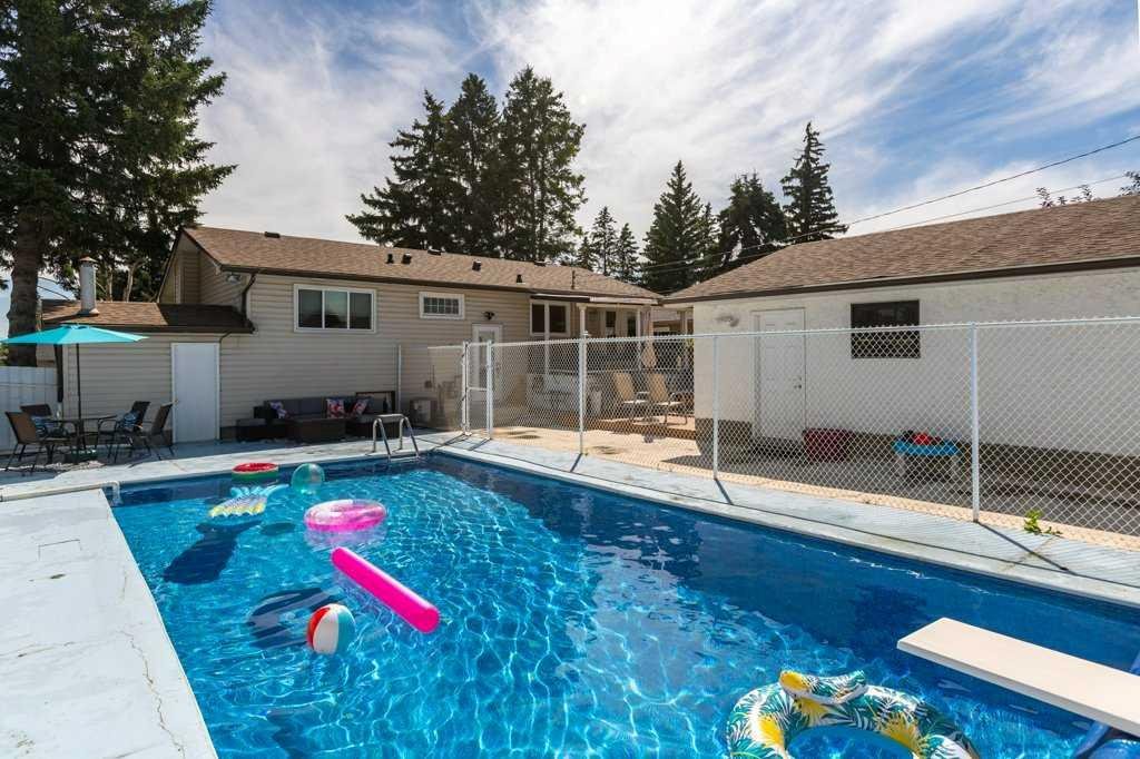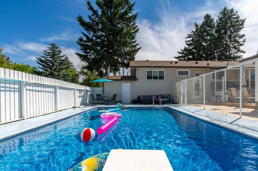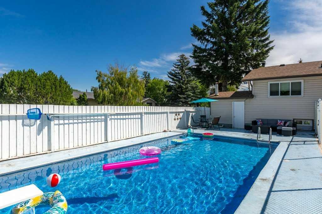Ever dreamed of enjoying summer in your own backyard oasis, complete with a heated pool perfect for entertaining friends and family. This home is amazing value! Sitting on a large corner lot and has fantastic curb appeal with beautiful landscaping, loved by the same family since 1998. Inside, the main floor is bright and open with a spacious living room, dining area, and a stunning white kitchen with newer stainless steel appliances. The island features pendant lighting, and a door from the kitchen leads directly to the covered, rear deck overlooking the pool. The living room has large vinyl windows that fill the space with natural morning light. Down the hall is a second rear exit to the west facing backyard, a renovated 4-piece bathroom and two bedrooms including a generous primary retreat that was formerly two bedrooms and could easily be converted back if desired. The main floor features hardwood flooring in the living area, tile in the kitchen and laminate in the bedrooms. The basement has been updated with a spacious recreation room, vinyl plank flooring, large vinyl windows and a stylish wet bar. There’s also a front-facing bedroom, a 3-piece bathroom, and plenty of storage. The pool slopes to a max depth of 9 feet and features a diving board, thermostat-controlled temperature, a brand new pump and chlorinator installed in 2024, summer solar blanket on a roller, removable winter hard cover and a liner replaced in 2021. It is also fully fenced in, keeping children and pets safe while you relax or entertain. A dedicated pool house adds convenience with a full 3-piece bathroom, making it easy to host summer gatherings without ever needing to step inside. The home also features a heated, double detached garage. Additional updates include the roof (2020), high efficiency furnace, vinyl windows, A/C service and more. Located in the well-established community of Acadia, this home is just minutes from schools, parks, playgrounds, Deerfoot Trail, Southcentre Mall and a variety of local shops, restaurants and amenities. This is the perfect place to enjoy the best of summer living and year-round comfort. Check out the 3D Virtual Tour and book your showing today!