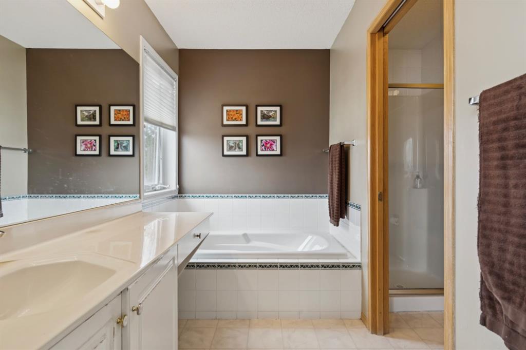 OPEN HOUSE – Sunday, April 19 (2-4pm) This is a GREAT LOCATION – a QUIET CRESCENT, a short walk to Westhills Shopping Centre – shopping, dining and the movies are a short walk away – great schools, the Westside REC Centre and West LRT and ease of access west or downtown – A GREAT LOCATION! This two storey offers 3+2 beds and 2724 sq ft of developed space over three levels with a well treed and PRIVATE rear yard. On arrival you will love the gleaming thin strip original oak hardwoods and the soaring ceiling in the living room/dining room upfront… offering an inviting sense of space. In back, a Great Room plan, overlooking the gardens with a WARM western exposure, offers a wonderful space for the family to gather on the daily. An open kitchen and sunny breakfast nook, leading to the rear deck and yard, makes this a social gathering point for those warm summer evenings. Upstairs the Primary bedroom offers the same warm, western exposure and a 4pc en suite and walk-in closet. The two additional beds up are well-sized, each with walk-in closets and sharing a 4pc bath. The lower level has been fully developed with a large rec room for the kids to romp and play, plus two additional bedrooms. This home is ideally situated on a quiet crescent, walking distance to the shops and services at Westhills… a GREAT FAMILY HOME!