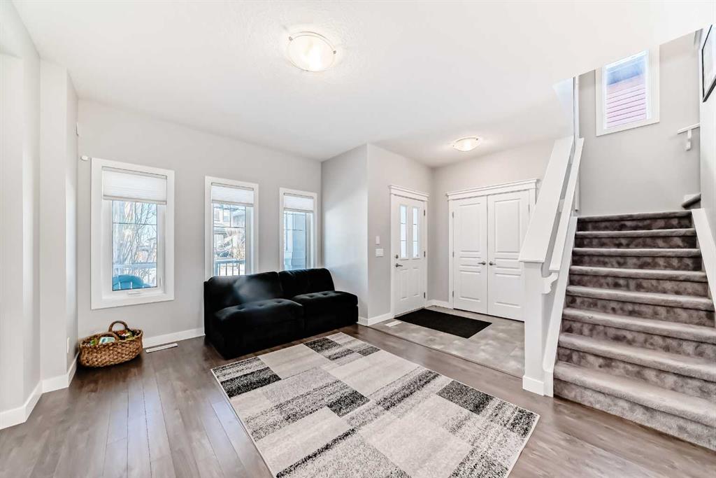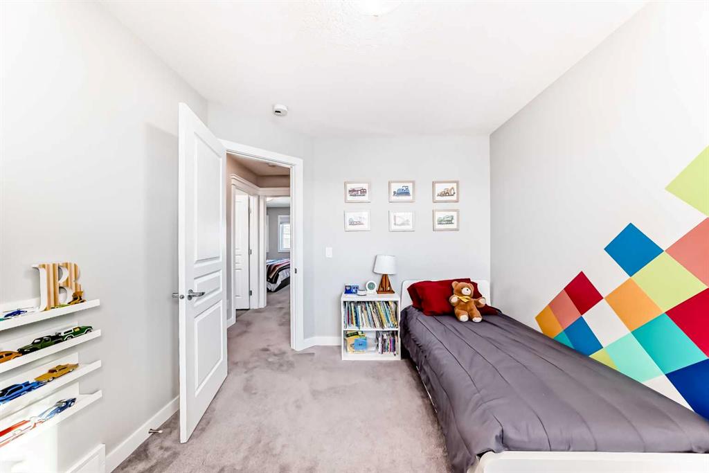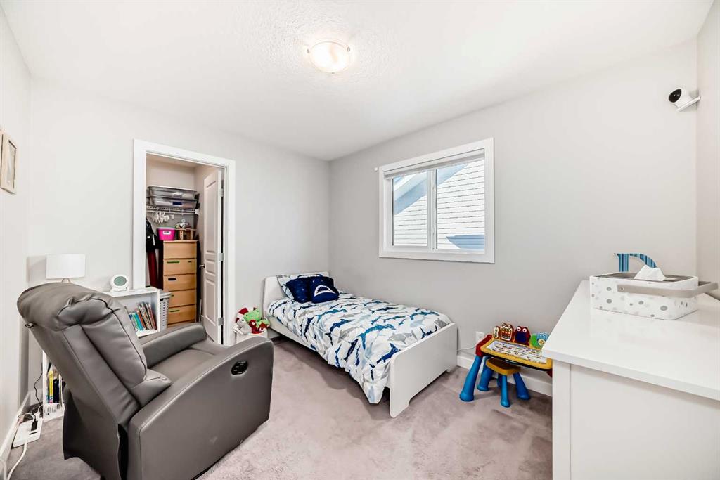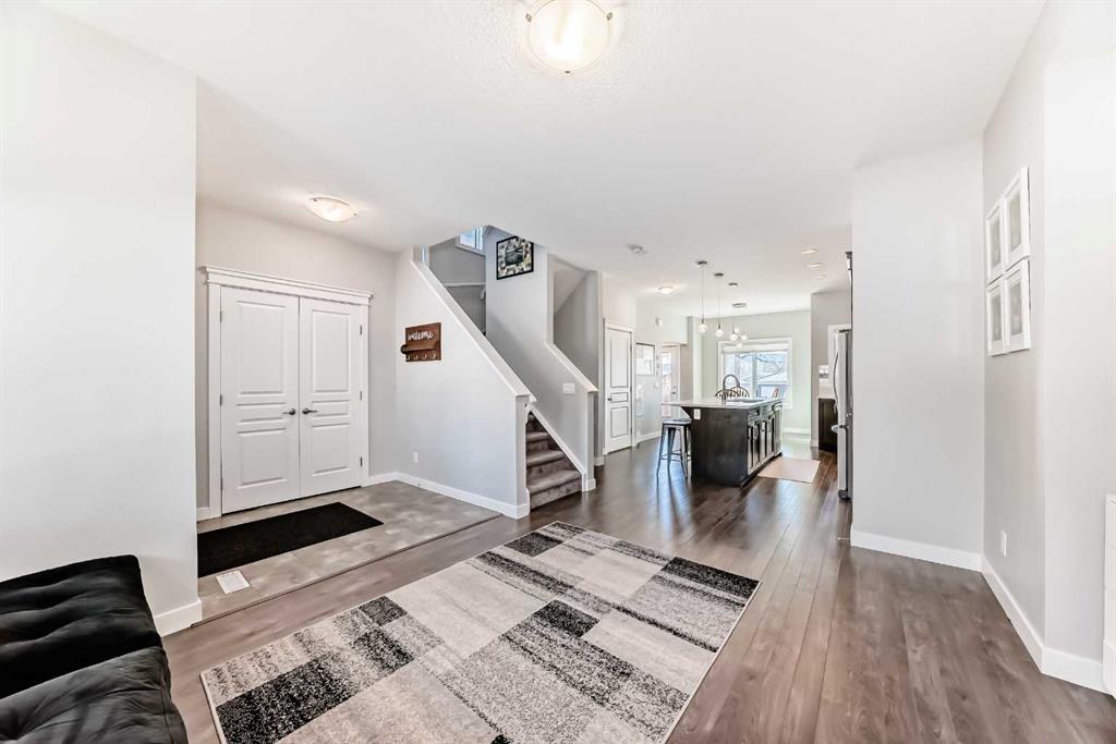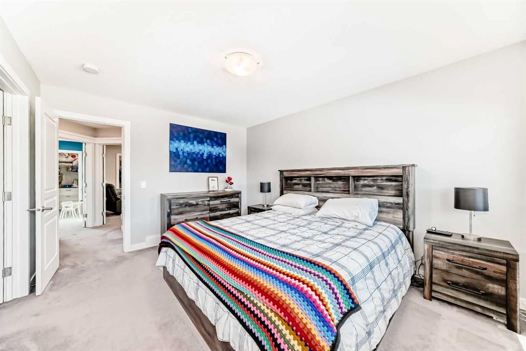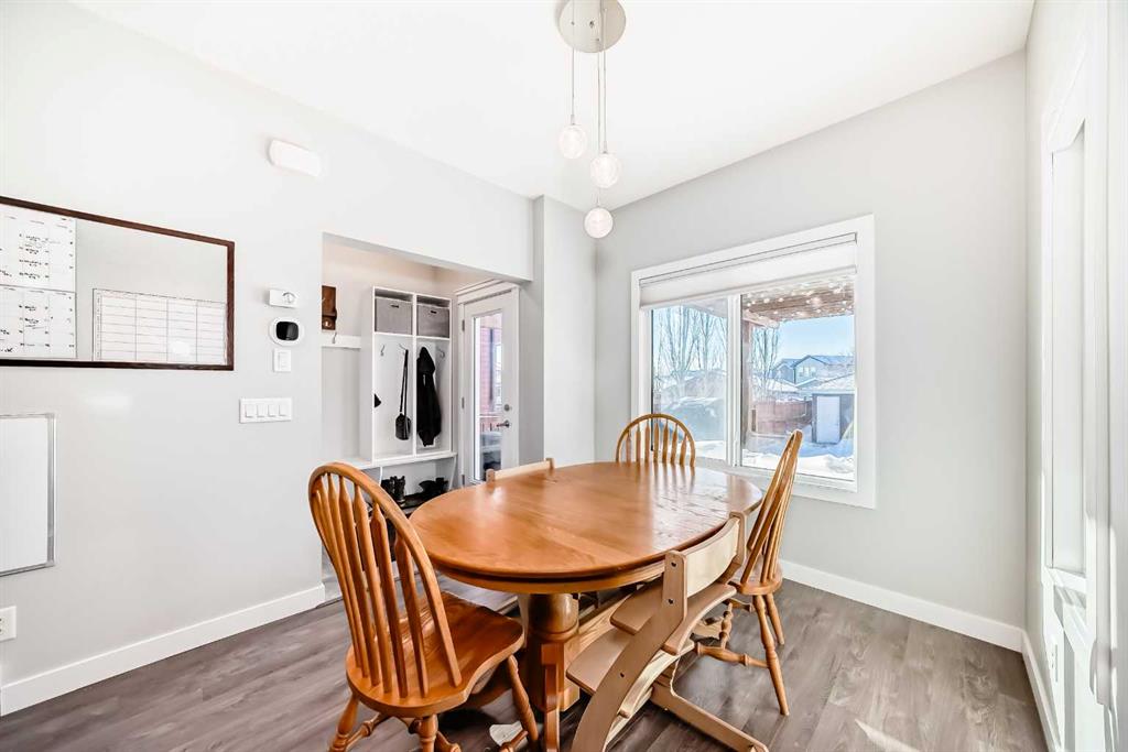 Perfect home for first time owners or a growing family, 2015 vintage 3+ bedroom 2 storey in Airdrie’s district of Ravenswood. Lovely curb appeal with covered veranda. Upgraded wood laminate flooring on main floor with tiled front and rear entries. Large and spacious kitchen with 8 foot working island, separate pantry, 9 ft ceilings and tall cabinetry, dining room nook over looks rear yard, spacious great room expanding into flex space before kithen area, main floor laundry room with storage space. 3 Bedroom upstairs, 4 pce ensuite plus 4 pce for other bedrooms, All bedrooms have walk-in closets. Huge lot (142 ft+ long lot with sunny western exposure). Rear yard b. house and garage is about 65 ft long and 30 ft wide., lots of room for children or adults to play. Huge 16 ft X 18 ft wood deck with pergola, small decorative rocked side yards for low maintenance. Completely fenced lot. Basement fully dev’d with 9 foot ceilings, raised floors with laminate flooring, an office/bedroom, large recreation room, large storage room. High efficient furnace, A/C, over sized water heater for future teenagers. Oversized double garage 24 ft wide and 22 ft deep. Large lots are rare without backing onto busy locations.