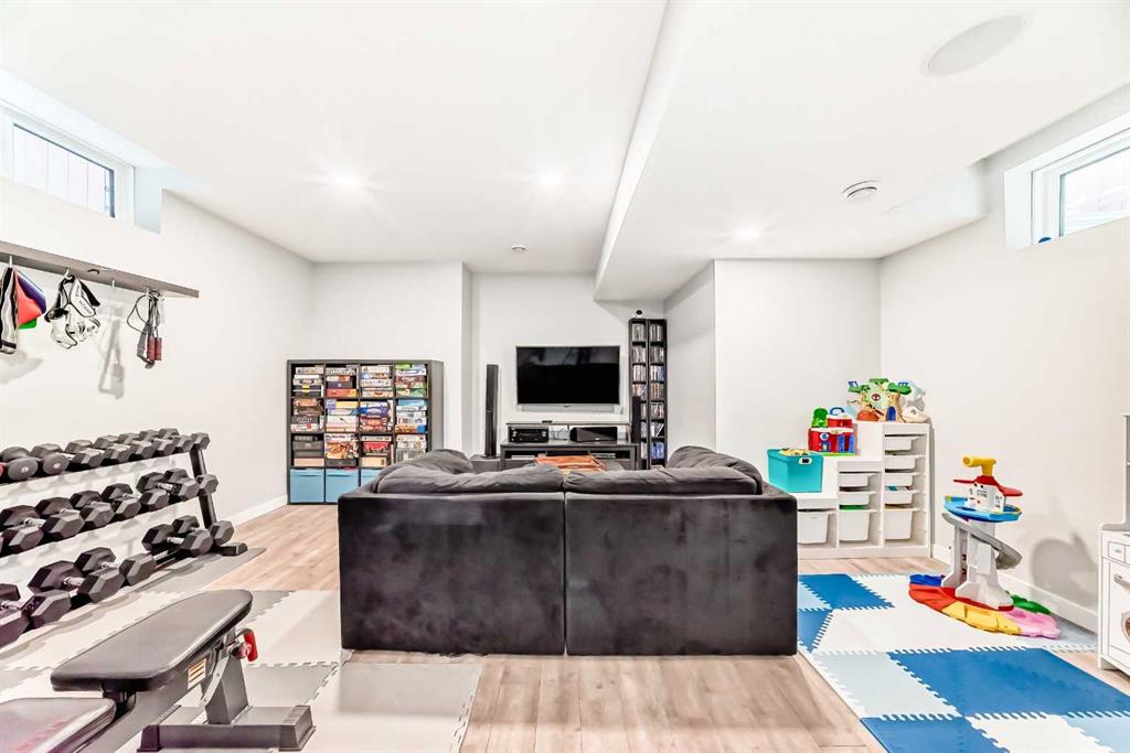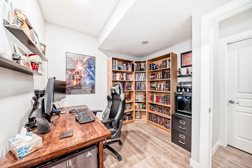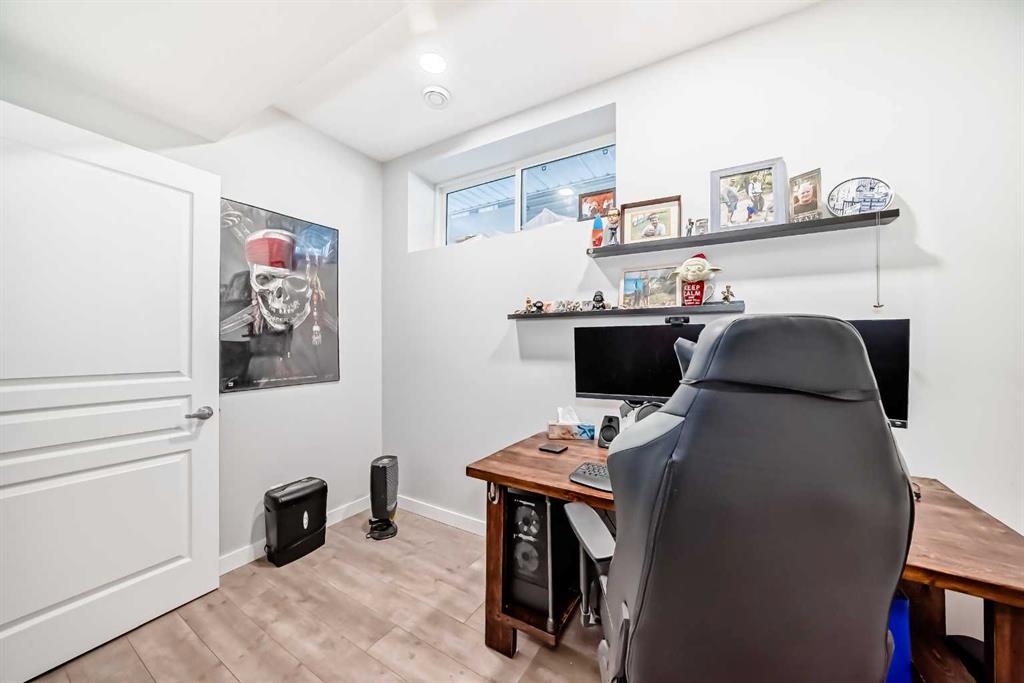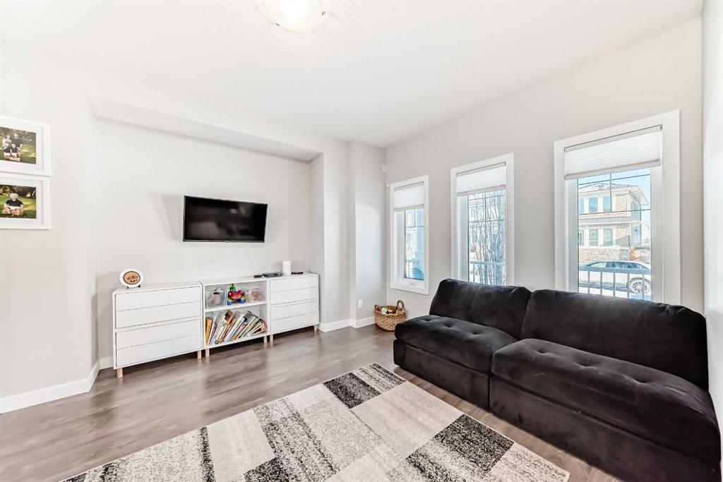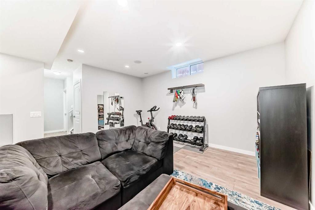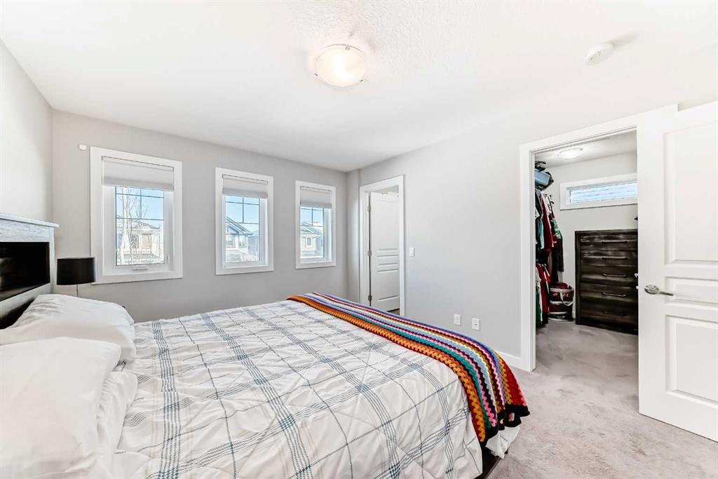 Perfect home for first time owners or a growing family, 2015 vintage 3+ bedroom 2 storey in Airdrie’s district of Ravenswood. Lovely curb appeal with covered veranda. Upgraded wood laminate flooring on main floor with tiled front and rear entries. Large and spacious kitchen with 8 foot working island, separate pantry, 9 ft ceilings and tall cabinetry, dining room nook over looks rear yard, spacious great room expanding into flex space before kithen area, main floor laundry room with storage space. 3 Bedroom upstairs, 4 pce ensuite plus 4 pce for other bedrooms, All bedrooms have walk-in closets. Huge lot (142 ft+ long lot with sunny western exposure). Rear yard b. house and garage is about 65 ft long and 30 ft wide., lots of room for children or adults to play. Huge 16 ft X 18 ft wood deck with pergola, small decorative rocked side yards for low maintenance. Completely fenced lot. Basement fully dev’d with 9 foot ceilings, raised floors with laminate flooring, an office/bedroom, large recreation room, large storage room. High efficient furnace, A/C, over sized water heater for future teenagers. Oversized double garage 24 ft wide and 22 ft deep. Large lots are rare without backing onto busy locations.
