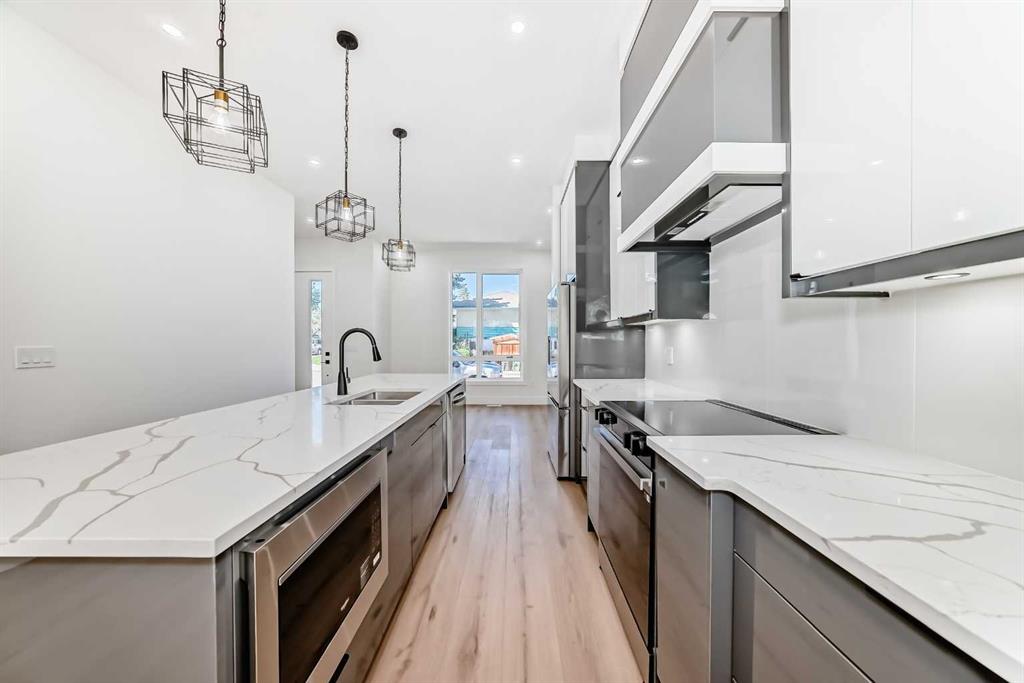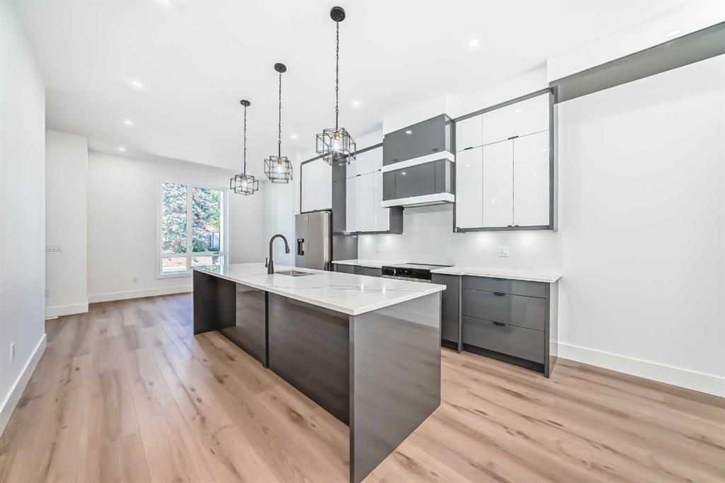 Presenting an excellent opportunity to expand your investment portfolio close to the U of C! This BRAND NEW 8-plex is 100% complete and ready to rent! Located on a large 55×120 corner lot mere minutes from the University of Calgary and University C-Train station. The upper 2 storey units offer 1440 sq ft with 10′ main floor ceilings, 9′ and vaulted 2nd floor, a Primary bedroom with a 4 piece ensuite and walk-in closet, 2 more bedrooms, 4pc bathroom, powder room, living room, kitchen, dining room and laundry. Living room has built-in features, front and rear entrance and single garage parking. Lower units are 587 sq ft with 9′ ceilings, 1 bedroom plus a flex room/den, living room, kitchen and laundry as well. Interiors will also have stainless steel appliances, QUARTZ counters and LVP floors with tiled bathrooms. The exterior is well presented with Hardie siding and stone accents, sidewalks front/rear, irrigation, window coverings, and nicely treed too! 4 single garages and 2 large indoor storage units complete this package. This build is eligible for CMHC Select financing, seperately titled and metered. Take advantage of Calgary’s rental market in one of the most desireable locations with C-Train access, minutes to the University of Calgary, Foothills Hospital and 10 minutes to downtown.