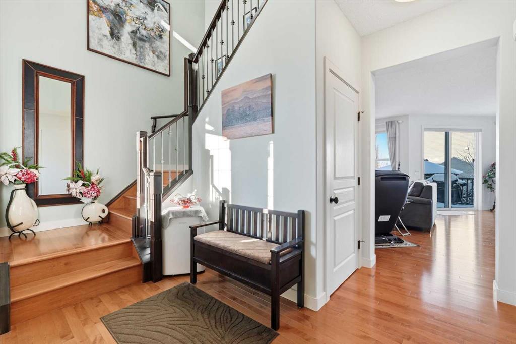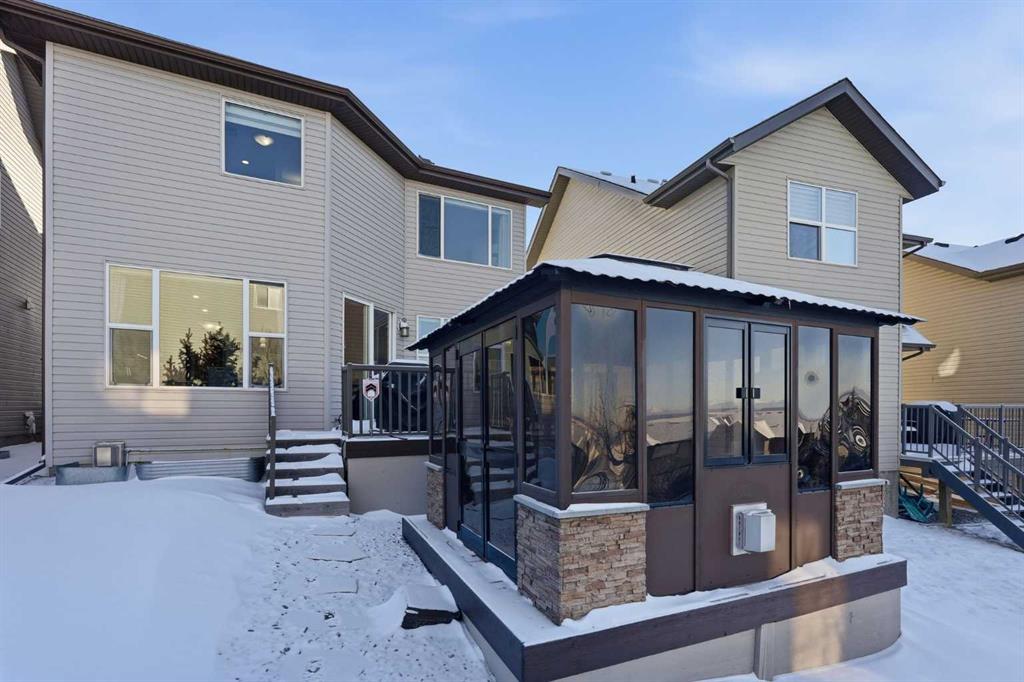 Welcome to one of the most uniquely positioned homes on the street, offering clear, unobstructed MOUNTAIN VIEWS from the backyard, dining room, primary bedroom, and even the ensuite bath. Surrounded by three green spaces, this home delivers a rare sense of privacy, openness, and connection to nature where morning coffee comes with mountain sunrises and evenings wind down under Cochrane’s painted skies.
