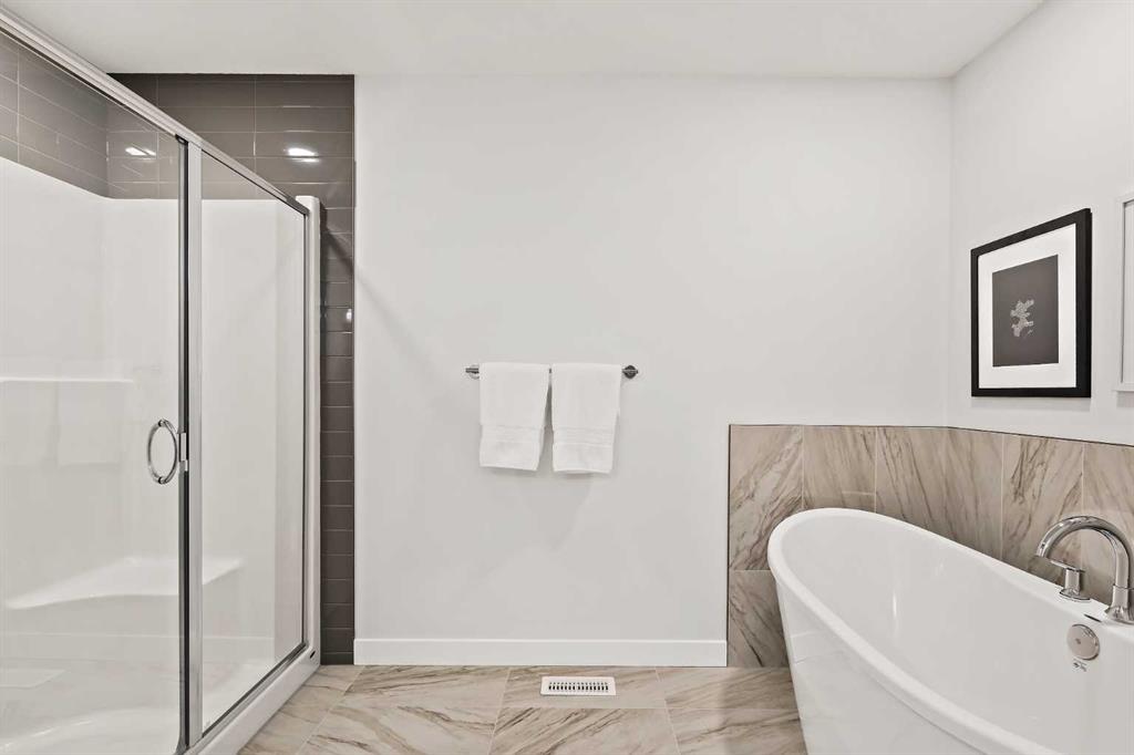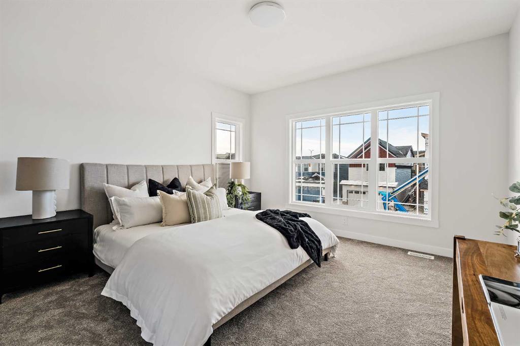 Welcome to 239 Creekstone Circle SW, featuring the exceptional Purcell 24 by Brookfield Residential – a thoughtfully designed home offering nearly 2,900 sq. ft. of living space across three fully developed levels, including a legal basement suite with a private entrance. Perfectly suited for growing families, multi-generational living, or savvy investors, this home delivers space, flexibility, and long-term value while providing the opportunity to offset monthly costs with rental income. This expansive layout includes three distinct living areas, a main-floor home office, five bedrooms (4 up, 1 down), and 3.5 bathrooms, making it ideal for families of virtually any size. The main level is anchored by a bright, open-concept design and features a large central den/flex space – perfect for a home office or study. The stunning kitchen is finished with timeless white cabinetry, a large central island with seating, and a convenient walk-through pantry connecting directly to the mudroom and garage, offering exceptional everyday functionality. The kitchen seamlessly flows into the spacious living and dining areas, creating an inviting space for entertaining and family gatherings. On the upper level, a generous central bonus room thoughtfully separates the primary retreat from the other three bedrooms. The primary suite is a true retreat, complete with a walk-in closet and a luxurious 5-piece ensuite featuring dual sinks, a soaker tub, and a walk-in shower. Three additional bedrooms, a full 5-piece bathroom with dual sinks, and a dedicated laundry space complete the upper level. The professionally developed basement hosts a fully legal one-bedroom suite, ideal for rental income, extended family, or guests – all with its own private side entrance for access. This brand-new home is fully move-in ready and showcases quality upgrades throughout. Both Builder Warranty and Alberta New Home Warranty are included, allowing you to purchase with confidence and peace of mind. Buy now and be settled in time to enjoy spring in your beautiful new home in Creekstone.