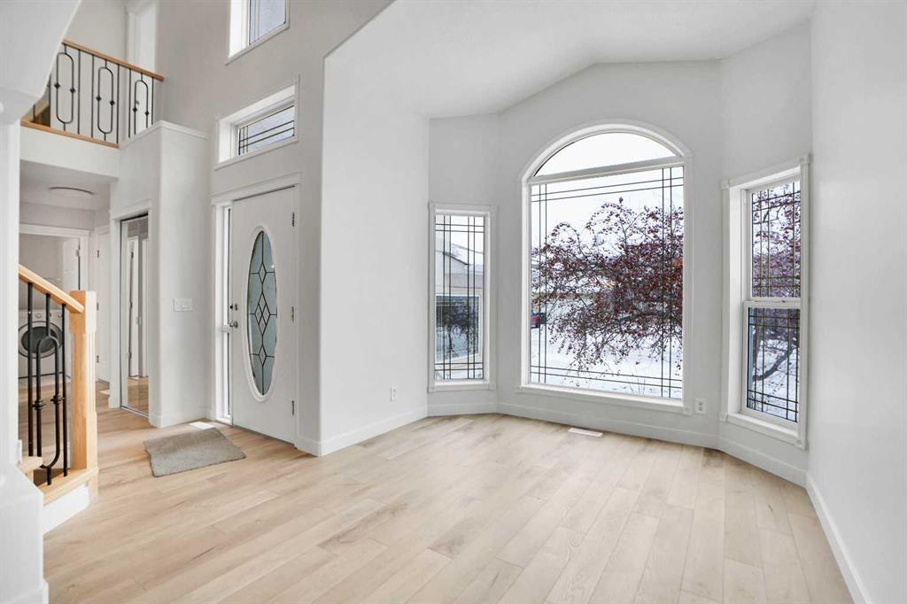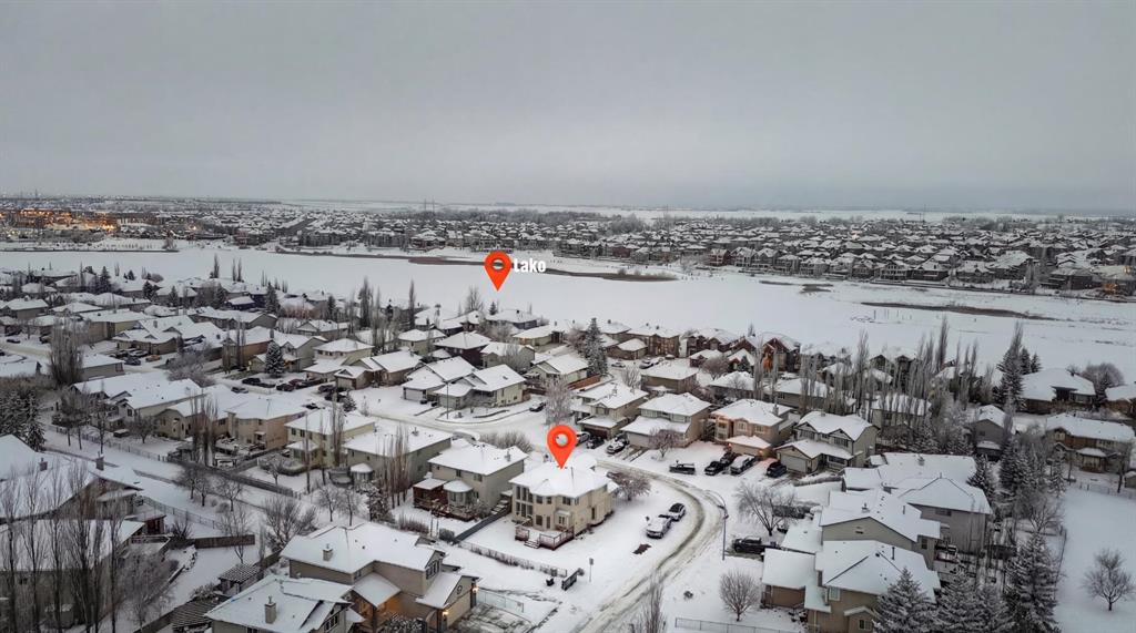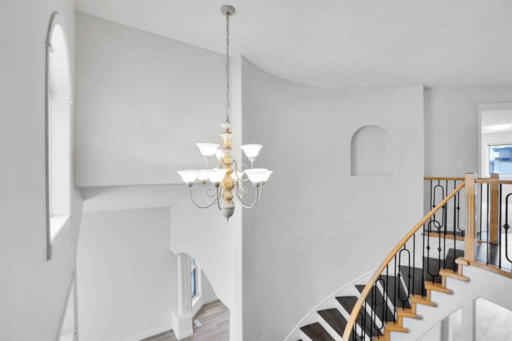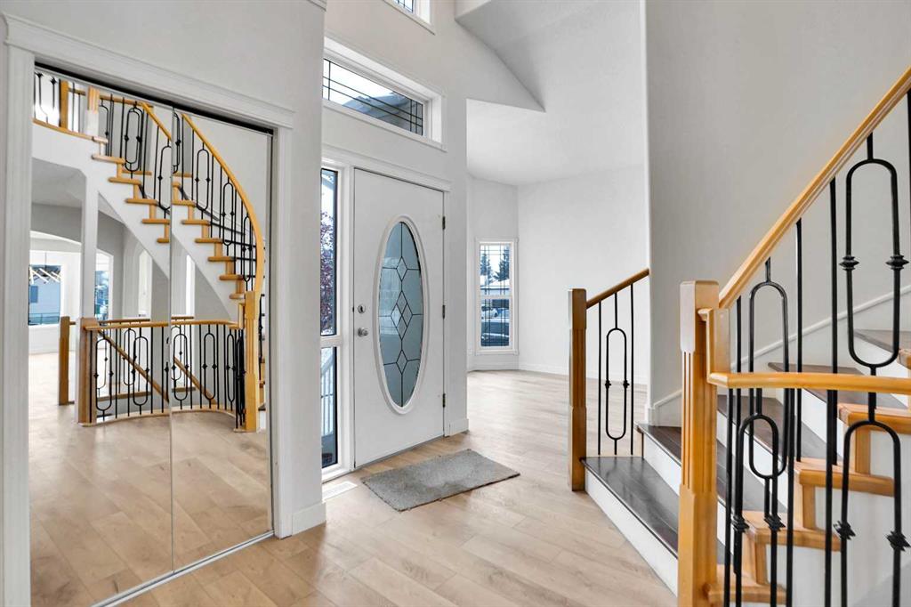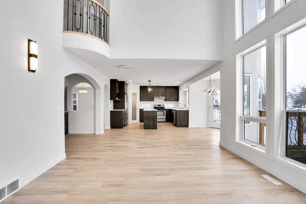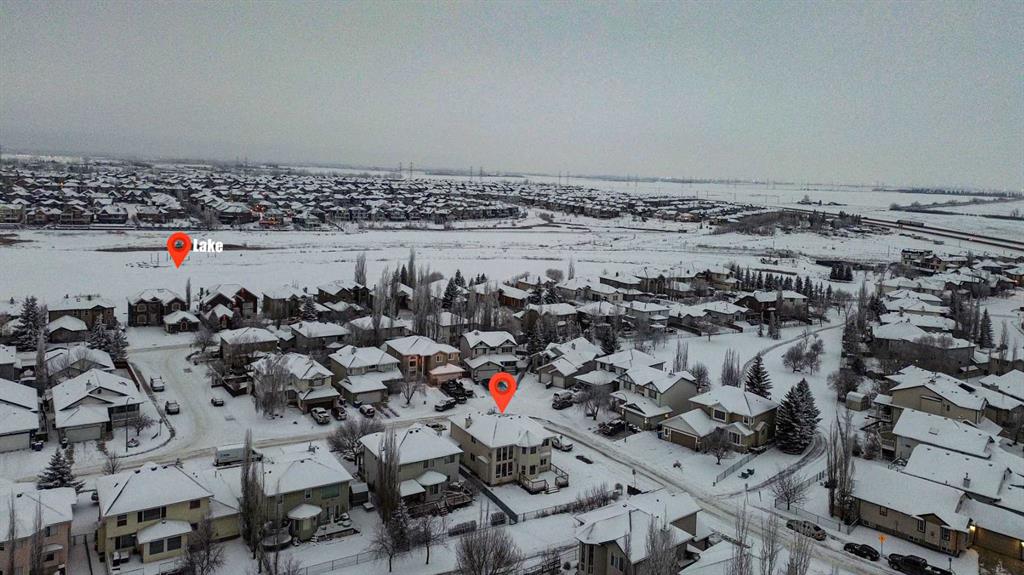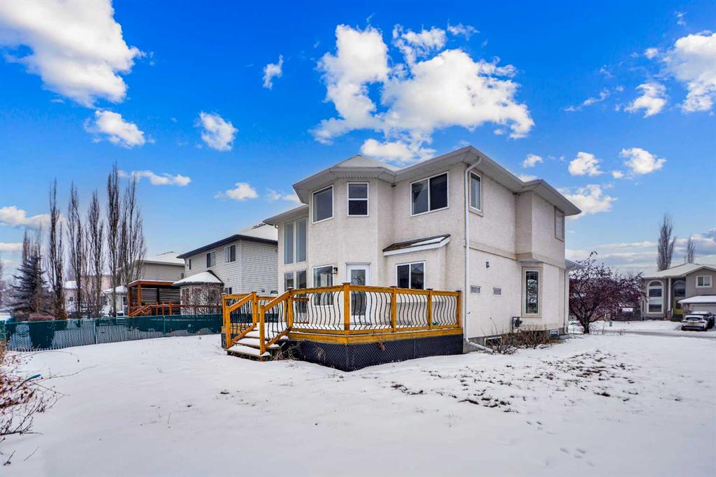 *Life really is better by the lake — Welcome to The Cove in Chestermere!* This beautifully renovated 2-storey home sits on a large corner lot backing onto pathways and green space, just a short walk to Chestermere Lake, The Cove Beach, parks, playgrounds, and off-leash areas. Set on a generous corner lot, this property gives your family the rare balance of privacy, convenience, and year-round recreation. Walk the kids to the beach, hit the pickleball courts, let the dog run at the off-leash park, or enjoy sunset strolls along the water… all just minutes from your front door. Inside, the house greets you with that WOW moment — soaring 17’ ceilings, the sweeping curved staircase, and oversized windows pouring natural light across brand-new flooring. It’s a true “wow” entrance that sets the tone for the rest of the home. The main floor features a spacious formal living/dining area, a bright kitchen with centre island and pantry, a cozy family room with 3-sided fireplace, and a private main-floor office with French doors. Ceiling to floor Windows in the Family Room provide ample light during the day and gives you an unobstructed view of the backyard. Step outside onto your own private deck for summer BBQs or just relaxation after a long work-week. This house has it all. Upstairs offers 3 bedrooms including a generous primary suite with 5-pc ensuite and walk-in closet. The open-to-below hallway adds light and airiness throughout. The second and third bedrooms are towards the front of the house, with spacious closets, new carpets and light fixtures. The 4 pc bathroom down the hallway is also a master piece and Brand NEW with it’s cabinetry, lighting, faucets, counter tops and shower area. The unspoiled basement is ready for your future development with 3 windows and lots of potential. Enjoy a large backyard with deck, concrete patio, and plenty of room for kids, pets, and entertaining. Location is everything. In The Cove, you get walking trails, parks, green space, and proximity to Chestermere Lake for boating, paddle-boarding, and fishing – plus easy access to shopping, schools, and highways. If you’re looking for a family home that blends style, comfort, and a community outside of the big city – this is it! Move-In ready and Quick possession available! Come book your showing today and fall in love with it.