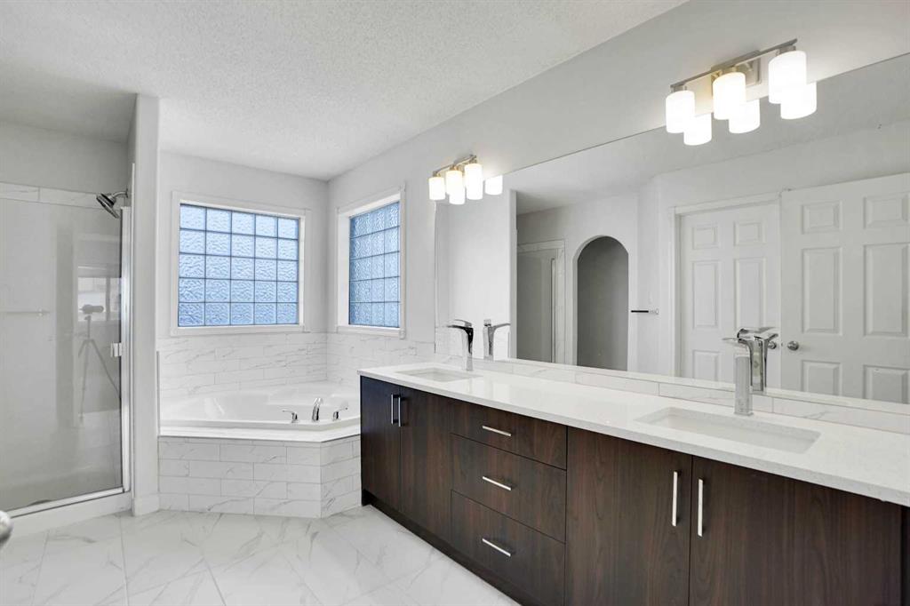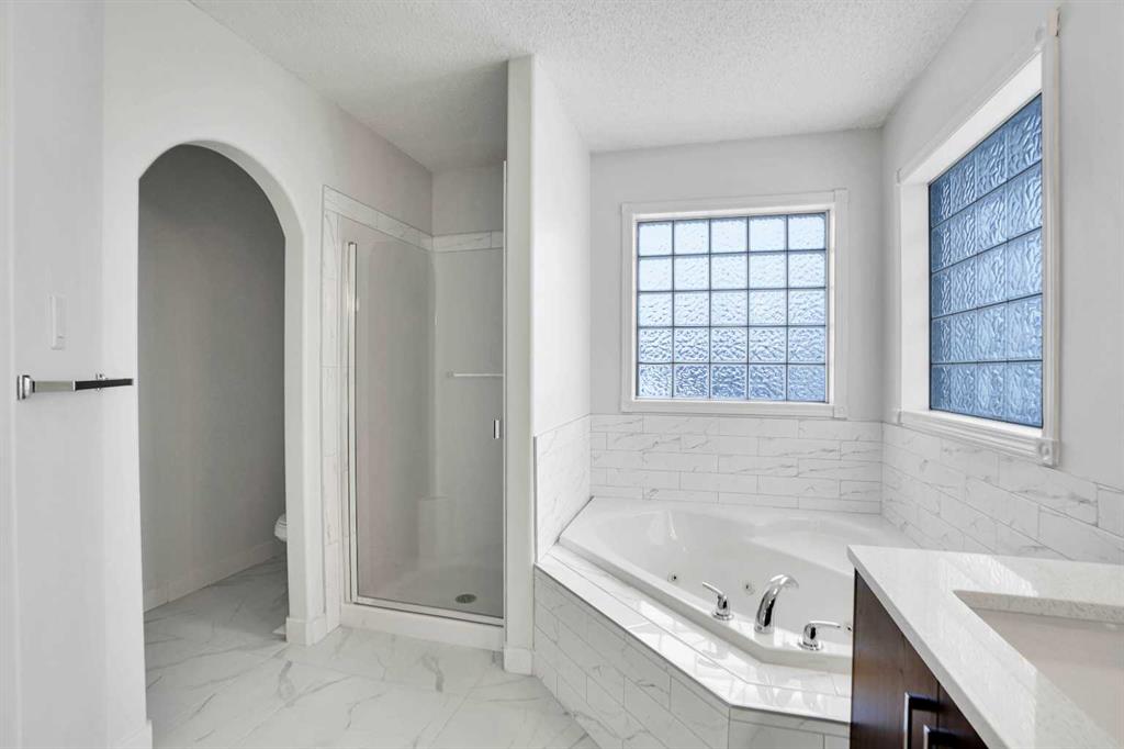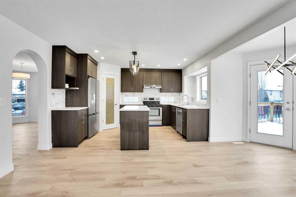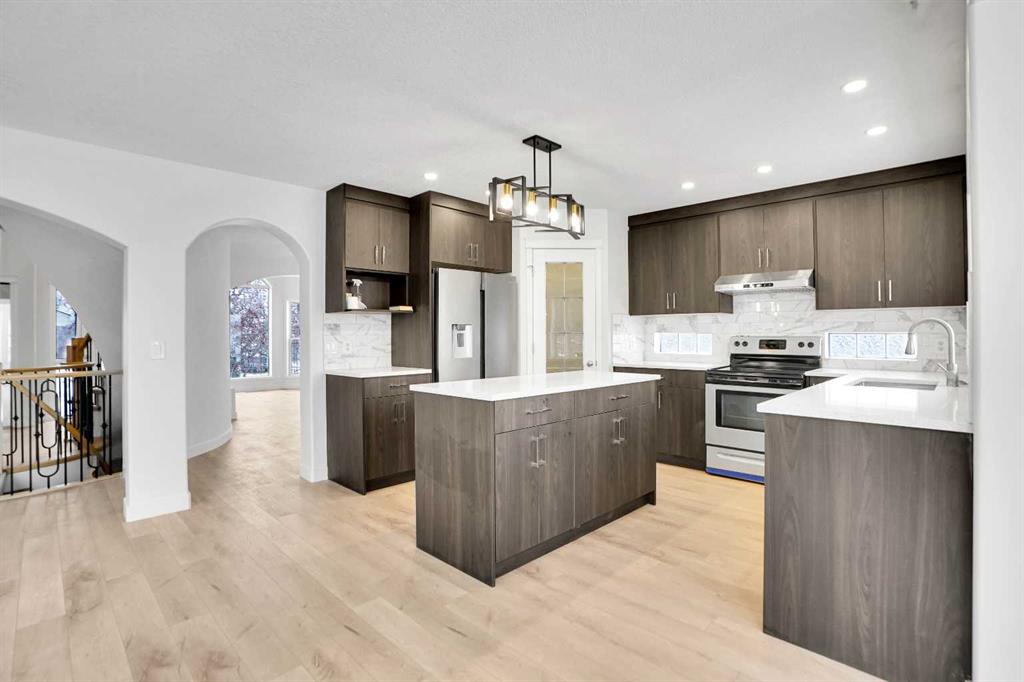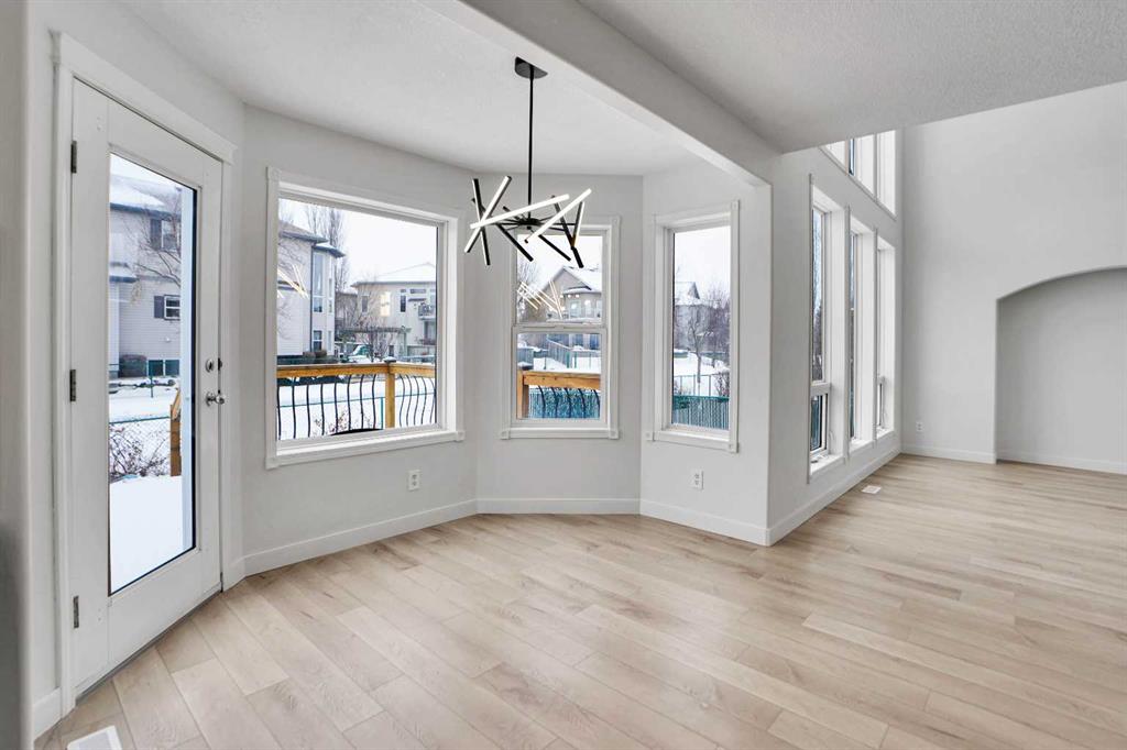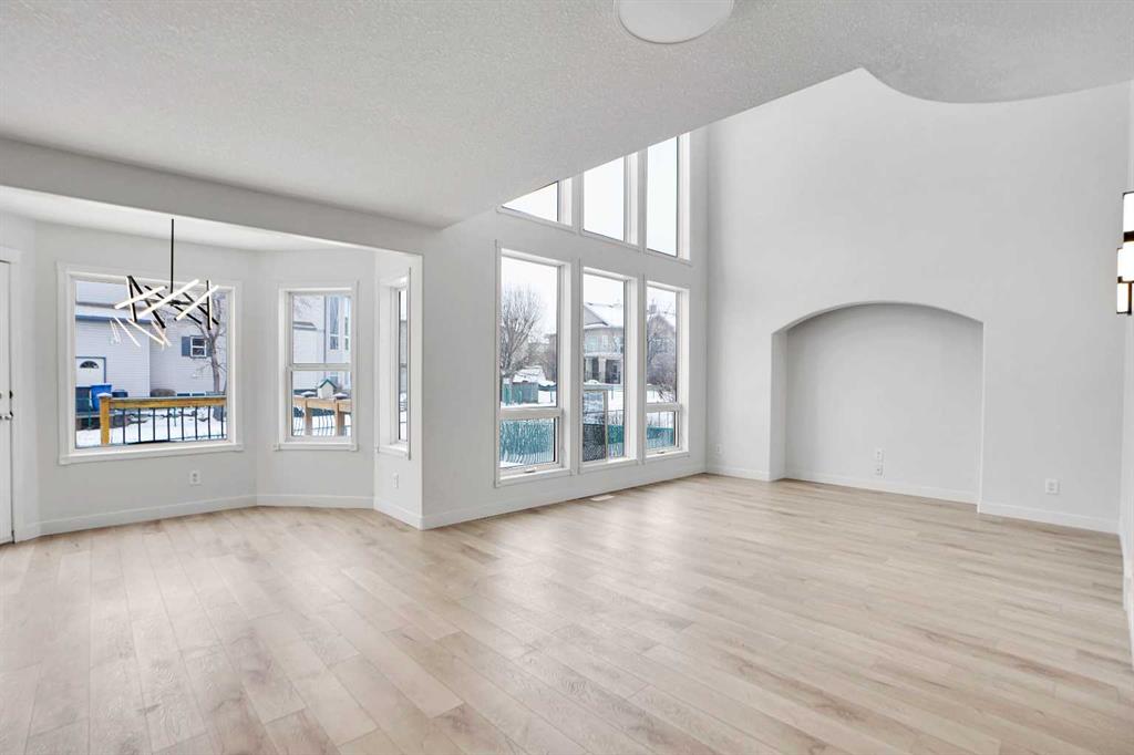 *Life really is better by the lake — Welcome to The Cove in Chestermere!* This beautifully renovated 2-storey home sits on a large corner lot backing onto pathways and green space, just a short walk to Chestermere Lake, The Cove Beach, parks, playgrounds, and off-leash areas. Set on a generous corner lot, this property gives your family the rare balance of privacy, convenience, and year-round recreation. Walk the kids to the beach, hit the pickleball courts, let the dog run at the off-leash park, or enjoy sunset strolls along the water… all just minutes from your front door. Inside, the house greets you with that WOW moment — soaring 17’ ceilings, the sweeping curved staircase, and oversized windows pouring natural light across brand-new flooring. It’s a true “wow” entrance that sets the tone for the rest of the home. The main floor features a spacious formal living/dining area, a bright kitchen with centre island and pantry, a cozy family room with 3-sided fireplace, and a private main-floor office with French doors. Ceiling to floor Windows in the Family Room provide ample light during the day and gives you an unobstructed view of the backyard. Step outside onto your own private deck for summer BBQs or just relaxation after a long work-week. This house has it all. Upstairs offers 3 bedrooms including a generous primary suite with 5-pc ensuite and walk-in closet. The open-to-below hallway adds light and airiness throughout. The second and third bedrooms are towards the front of the house, with spacious closets, new carpets and light fixtures. The 4 pc bathroom down the hallway is also a master piece and Brand NEW with it’s cabinetry, lighting, faucets, counter tops and shower area. The unspoiled basement is ready for your future development with 3 windows and lots of potential. Enjoy a large backyard with deck, concrete patio, and plenty of room for kids, pets, and entertaining. Location is everything. In The Cove, you get walking trails, parks, green space, and proximity to Chestermere Lake for boating, paddle-boarding, and fishing – plus easy access to shopping, schools, and highways. If you’re looking for a family home that blends style, comfort, and a community outside of the big city – this is it! Move-In ready and Quick possession available! Come book your showing today and fall in love with it.