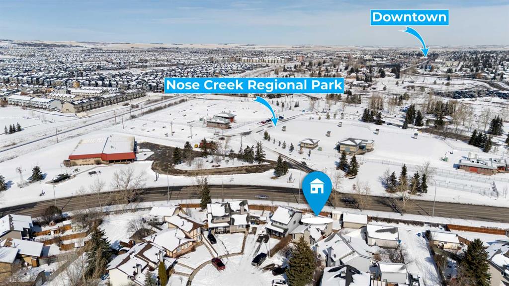 Located just steps from Nose Creek Park, you’ll enjoy easy access to scenic walking paths, pickleball and tennis courts, and some of Airdrie’s most beautiful green spaces.