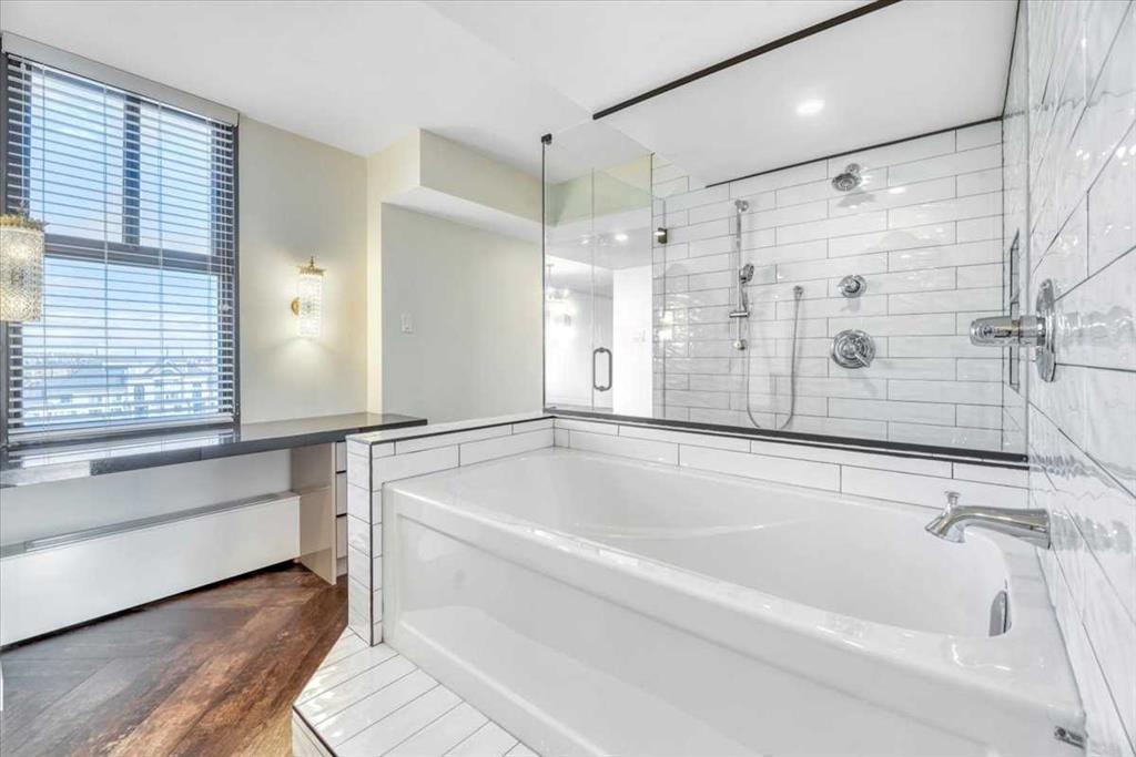 An additional bedroom offers the same impressive views, while the glass-enclosed den with privacy drapes functions perfectly as a guest bedroom or flexible living space. Complete with a walk-in closet, private office nook, and its own three-piece bathroom, it provides exceptional versatility.