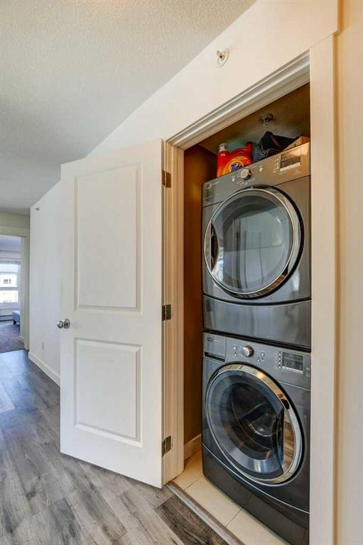 Beautiful south facing corner unit on the top floor of Skymills in Skyview! The natural light in the living room, master bedroom, kitchen and on the balcony is breathtaking. You have enough space with 973 sqft to entertain, with guest parking available. The two bedrooms are separated by the main living area providing a sense of privacy. The master bedroom has a dual closet walk-through to a beautiful 4-piece en-suite bathroom. With in-suite laundry and underground parking stall you really can’t miss this opportunity. This 2 bed, 2 bath condo is going to go quick! Located near shopping, schools, parks and a multitude of green spaces and pathways. Check out the 3D virtual tour to see all the condo’s features. Book your showing today!