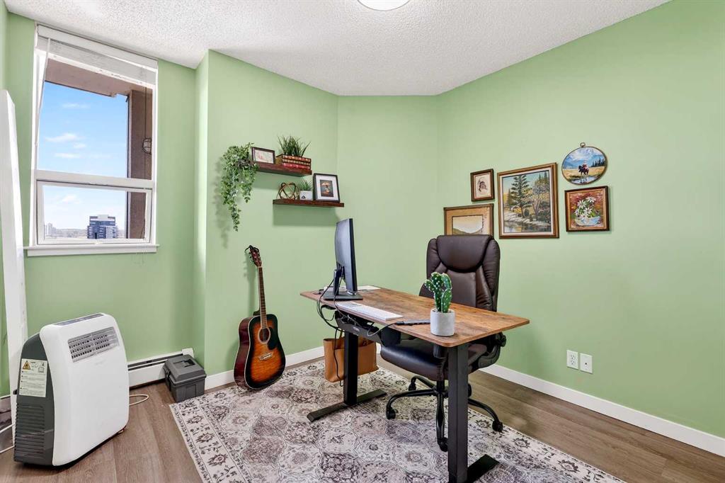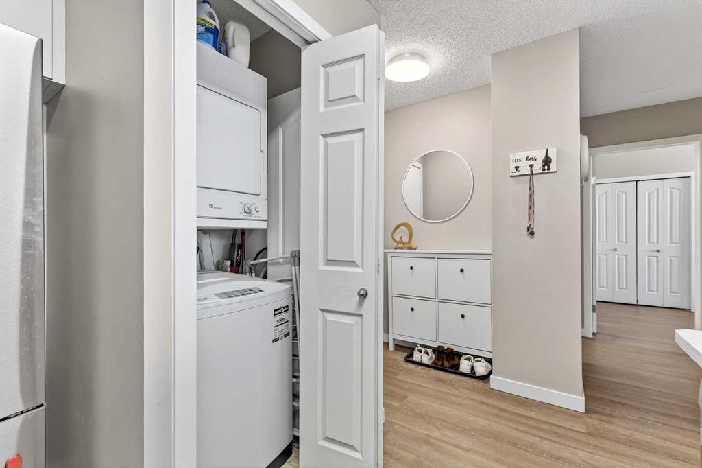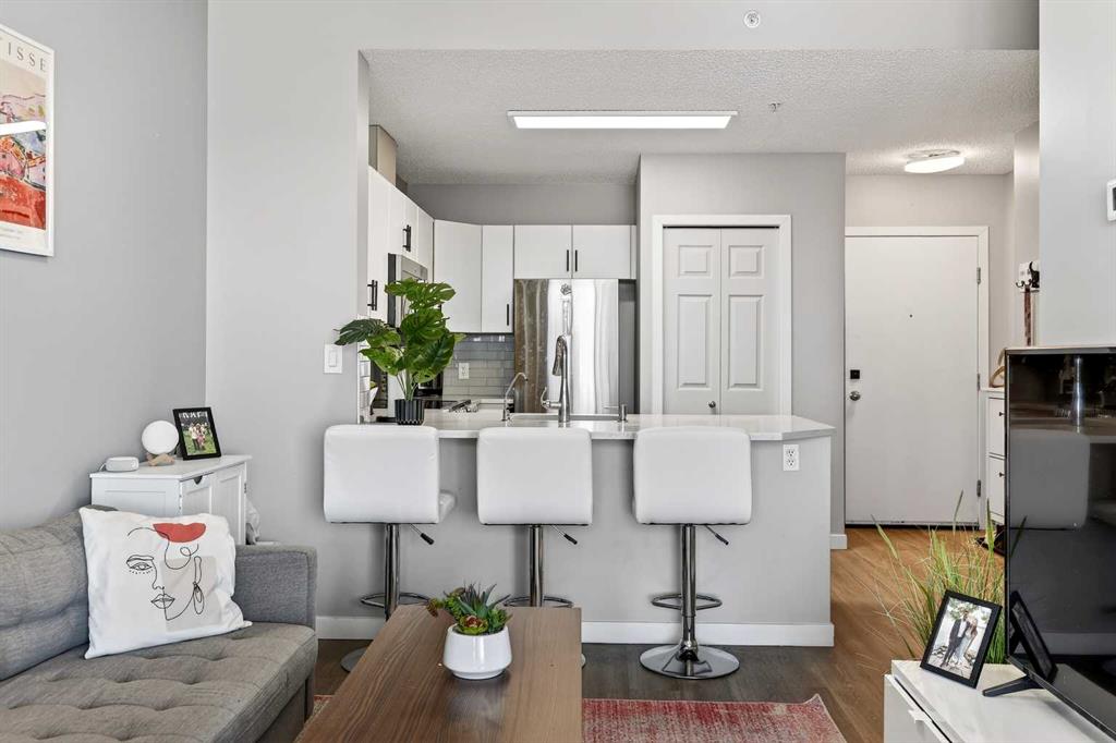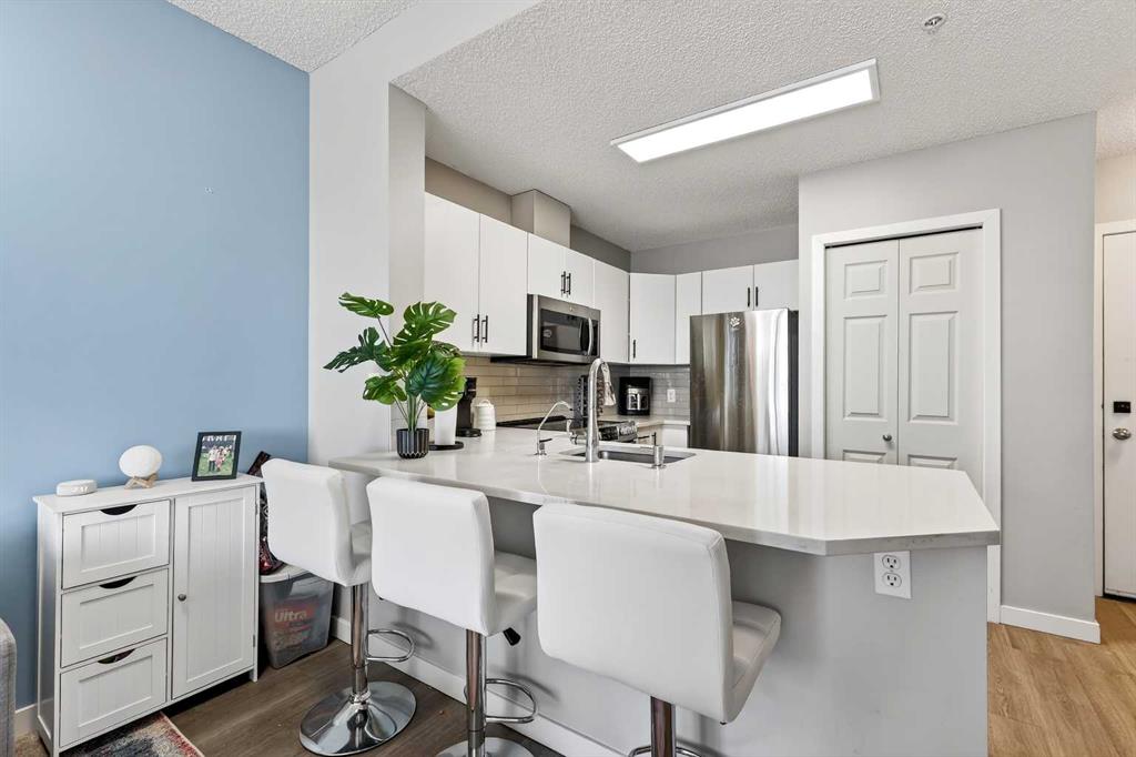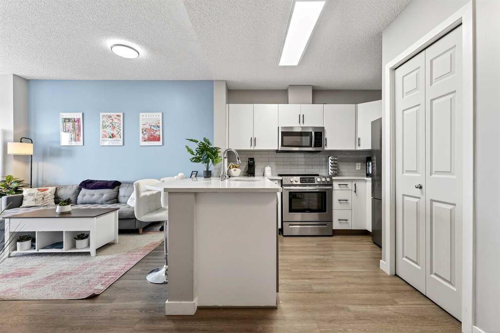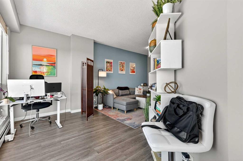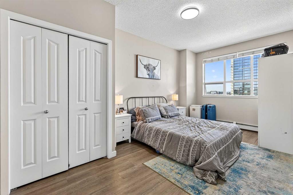 Take in breathtaking mountain and Bow River views from the 24th floor of the highly desirable Vantage Pointe. This beautifully updated two bedroom, two bathroom condo offers the ideal blend of comfort, style, and unbeatable inner city convenience. Perfectly positioned just steps from Calgary Co-op and within easy walking distance to downtown and the vibrant energy of Uptown 17th Avenue, you will love the incredibly walkable lifestyle. Restaurants, cafés, shopping, and everyday amenities are all right at your doorstep. Inside, the modern kitchen showcases stainless steel appliances and quartz countertops, seamlessly connecting to the bright, open concept living area. Expansive windows flood the space with natural light while perfectly framing the stunning mountain and river views. Additional features include in suite laundry, air conditioning, and a private balcony with a gas BBQ hookup that is ideal for relaxing or entertaining. This pet friendly building offers a fitness centre, secure entry, visitor parking, and an impressive lobby. A titled underground parking stall is included, and the low condo fees cover heat, electricity, water, sewer, and parking, ensuring easy, worry free ownership. An exceptional opportunity for a first time buyer, a professional working downtown, or an investor seeking a prime rental property in a sought after location. Enjoy elevated urban living with spectacular views every day.