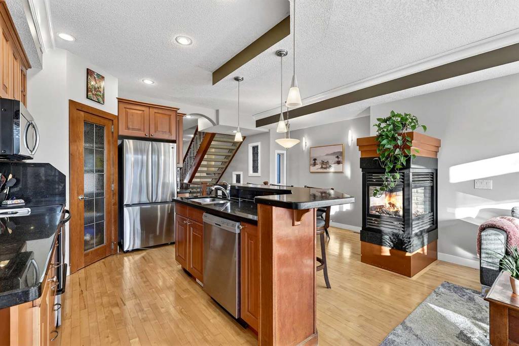 Ideally situated on a quiet, tree-lined street in the heart of Killarney, this well-maintained 4-bedroom, 3.5-bathroom detached home offers a functional layout with thoughtful improvements throughout. The main floor boasts a bright living room and a spacious dining area with large west-facing windows showcasing mature trees and filling the space with warm afternoon and evening light. The kitchen is equipped with granite countertops, stainless steel appliances, and an island that seamlessly flows into a cozy eat-in nook. An adjoining family room opens to the rear deck, offering easy indoor-outdoor living and a gas three-way fireplace connects the nook, kitchen and family room. Upstairs, the primary retreat features vaulted ceilings, a walk-in closet, private balcony, and an ensuite with a soaker tub and fireplace. Completing the upper level are two additional bedrooms, a full bathroom, and a convenient built-in computer desk at the top of the stairs – ideal for a home office or homework station. The fully developed basement includes a large family or media room with bright windows, a fourth bedroom, another full bathroom, a dedicated laundry room, and extra storage. Recent upgrades include a new furnace (2024), brand-new washer and dryer, fresh paint throughout, and more. Central air conditioning adds to the home’s year-round comfort and convenience. Outside, enjoy a resodded yard with updated landscaping and a double detached garage. Walk to convenient favourites like Luke’s Drug Mart for your morning coffee or a summer soft serve, along with so many restaurants and local eateries just steps from your door. Enjoy the endless potential Killarney offers, all just minutes from parks, schools, and convenient inner-city amenities.