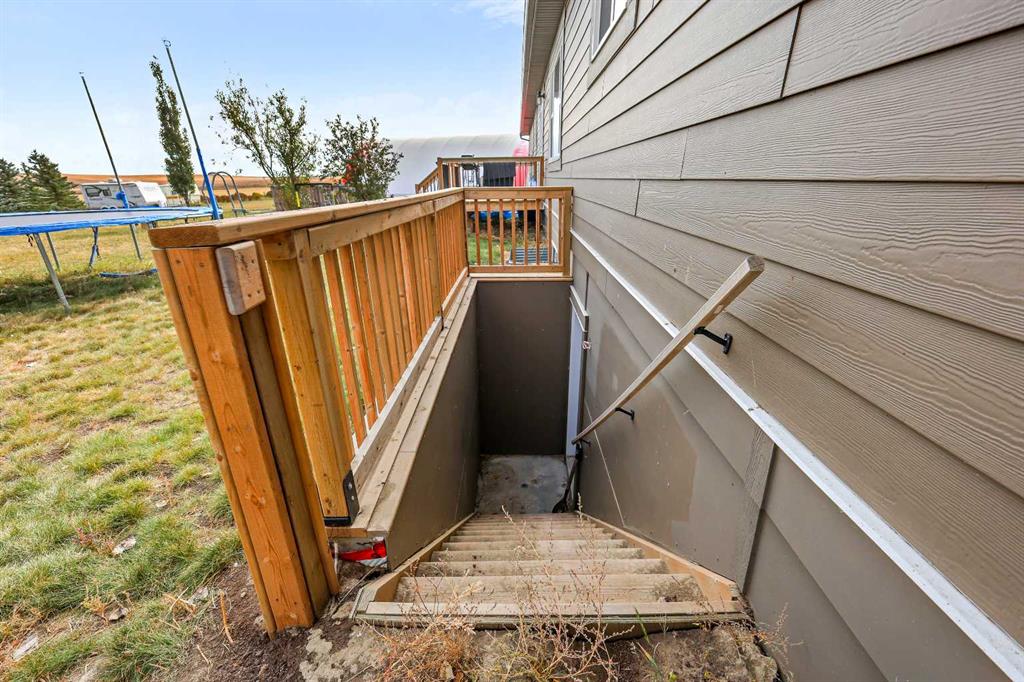 Welcome to your private country retreat in Wheatland County — a beautifully maintained 3-acre property offering the perfect balance of rural serenity and modern comfort. This inviting 3-bedroom, 2-bathroom home spans nearly 1,750 sq. ft. with a functional, open-concept layout designed for everyday living. The main living areas feature sound-insulated walls, durable linoleum and carpet flooring, and a spacious kitchen equipped with double ovens, ample cabinetry, and all major appliances. A massive walk-in pantry provides exceptional storage space, while the adjoining dining and living areas are ideal for family gatherings. The primary suite is a true retreat with a relaxing soaker tub, separate shower, and double sinks with pull-out drawers for added convenience. The walk-up basement is plumbed and ready for future development, giving you room to grow. Built with strength, efficiency, and comfort in mind, this home showcases ICF (Insulated Concrete Form) construction — a modern building method that combines reinforced concrete with insulation to deliver superior durability, energy efficiency, and soundproofing.** ICF walls are highly resistant to extreme weather, provide consistent indoor temperatures year-round, and significantly reduce heating and cooling costs. Coupled with a poured concrete foundation and updated windows and roof (2020), this home is engineered for long-term performance and peace of mind. Step outside and embrace the tranquility of country living. Enjoy morning coffee on either the front or back deck, both overlooking wide-open prairie views. The property includes an insulated double attached garage (with gas line, 30-amp plug, and electrical panel), an invisible dog fence, and secure barbed-wire fencing suitable for pets or livestock.