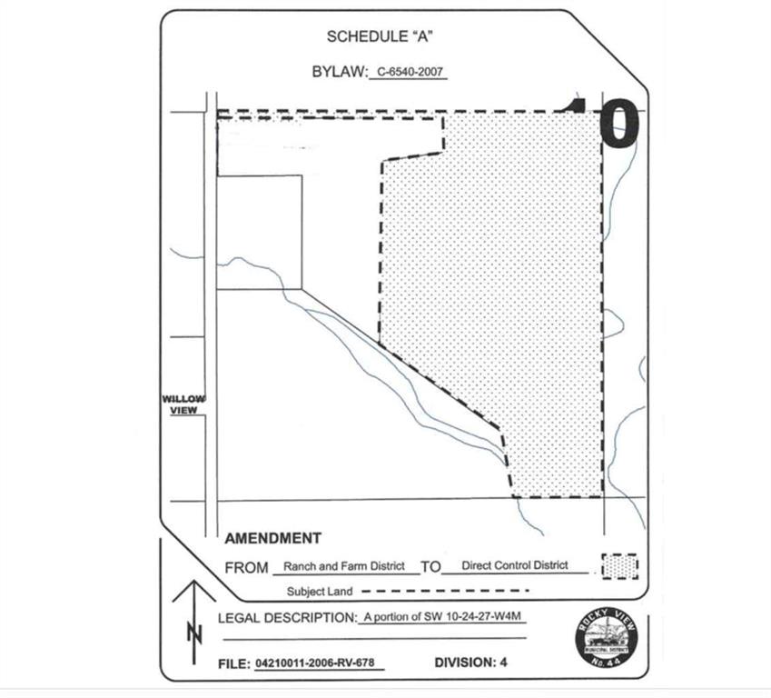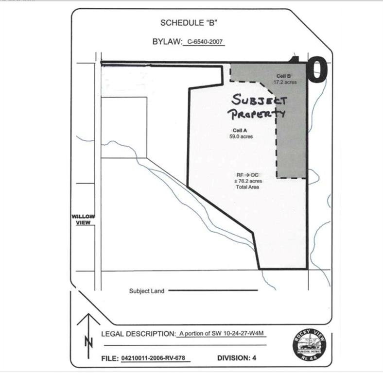*** SELLER IS WILLING TO DO VTB UP TO 75% / 17.2 ACRES ARE DESIGNATED FOR OUTDOOR RV STORAGE (APPROVED FOR 800 UNITS) *** 75.73 (+/-) ACRE PARCEL OF DEVELOPMENT LAND (ZONED DC122) – zoned for Agricultural & Outdoor Recreation Vehicle (RV) Storage Area. SOLID LOCATION – APPROXIMATELY 20 MINUTES TO CALGARY CITY LIMITS & 10 MINUTES TO CHESTERMERE CITY LIMITS AS WELL AS LANGDON CITY LIMITS! On this property, 17.2 Acres have been designated for Outdoor RV Storage with a MAX OF 3 PRINCIPAL BUILDINGS (max combined area shall not exceed 500.0 sq m / 5,382.0 sq ft) and a MAX OF 5 ACCESSORY BUILDINGS (max combined area shall not exceed 200.0 sq m / 2,152.8 sq ft) —— The rest of the parcel has been assigned Agricultural Area with uses such as General Agriculture, Dwelling, single-detached, accessory to the agricultural use, as well as Accessory Buildings and Private Outdoor Riding Arena! On this parcel you are permitted 3 accessory buildings and 1 primary building. There is a 3000 sq ft building on the parcel, with 1/3 of the space making up for an office and the rest serving as a barn. This parcel has a lot of potential with its location and size – RV storage for people of Chestermere, Calgary and Langdon and it also serves as a good spot for animal lovers! Contact your favorite realtor for a viewing today!