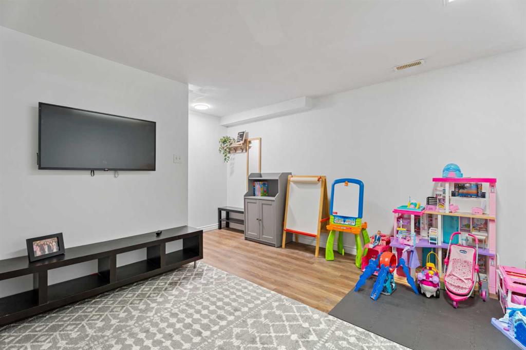 The fully developed basement offers a large recreation room, a fourth bedroom, a 3-piece bath, and convenient laundry facilities. Recent upgrades include vinyl plank flooring (Basement – 2023), new washer and dryer (2023), new over-the-range microwave (2023), and a new refrigerator (2024). The exterior was freshly painted in 2025.