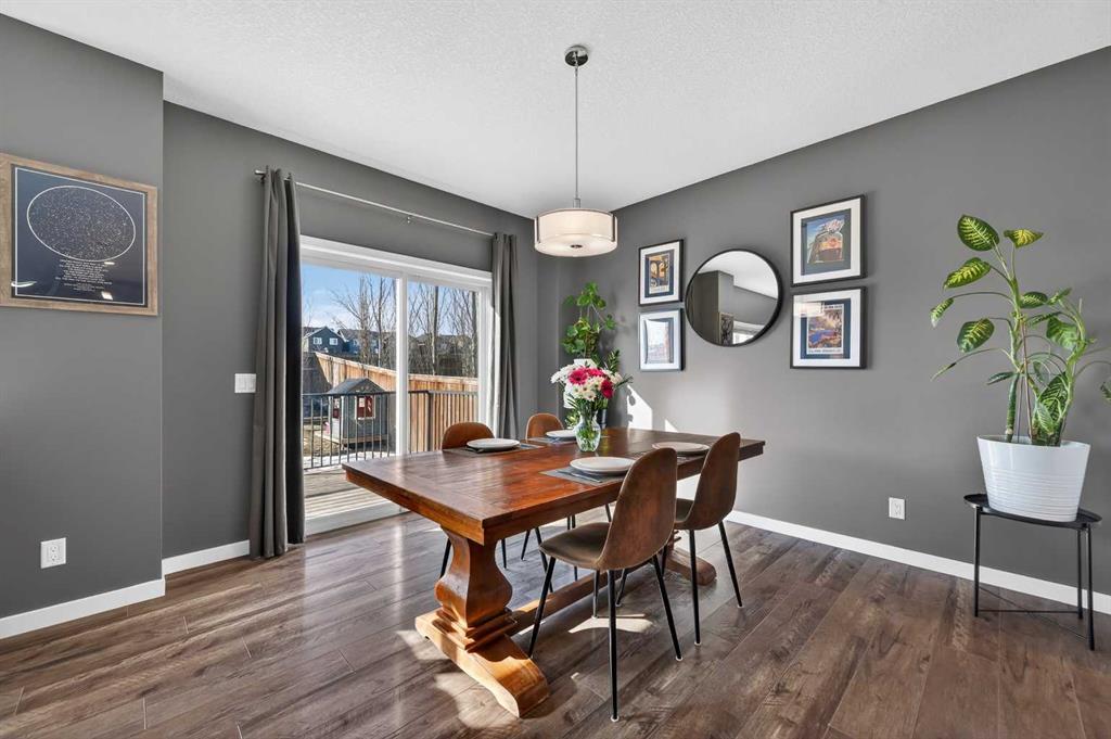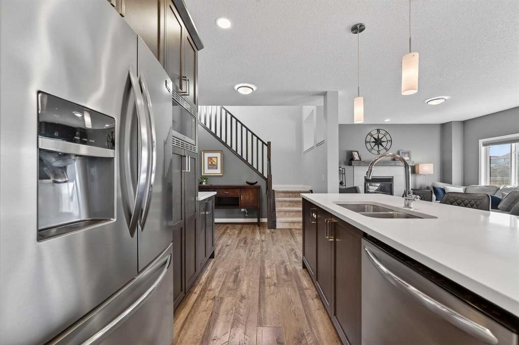 The open-concept main floor is ideal for entertaining, highlighted by espresso kitchen cabinetry, white quartz countertops, and a seamless flow into the dining and living areas. Upstairs, vaulted ceilings add architectural charm and an elevated sense of space. The primary retreat offers a luxurious ensuite and walk-in closet, while two additional generously sized bedrooms—each with walk-in closets—provide versatile living for family or guests. Durable laminate, carpet, and tile flooring complete the interior, complemented by the comfort of central A/C for warm summer days. Step outside to a fully landscaped backyard with mature trees, no rear neighbours, and a nearby green space, perfect for families, pets, and outdoor enjoyment. Enjoy year-round lake access, scenic pathways, parks, schools, shopping, and everyday amenities that make Mahogany one of Calgary’s most sought-after communities. This is an incredible opportunity to experience privacy, premium features, and the unmatched Mahogany lifestyle.