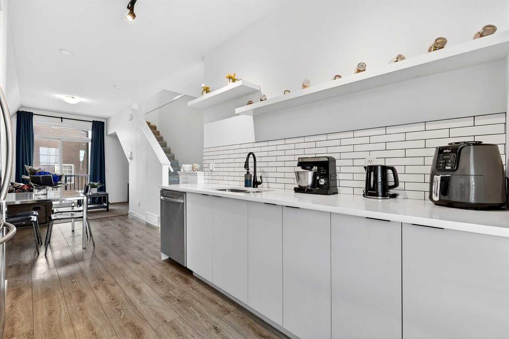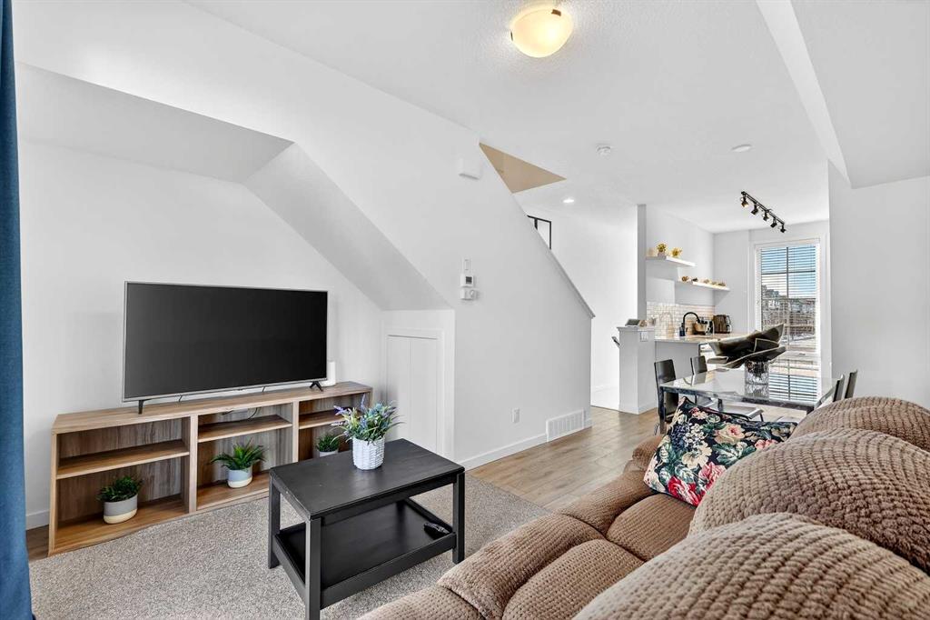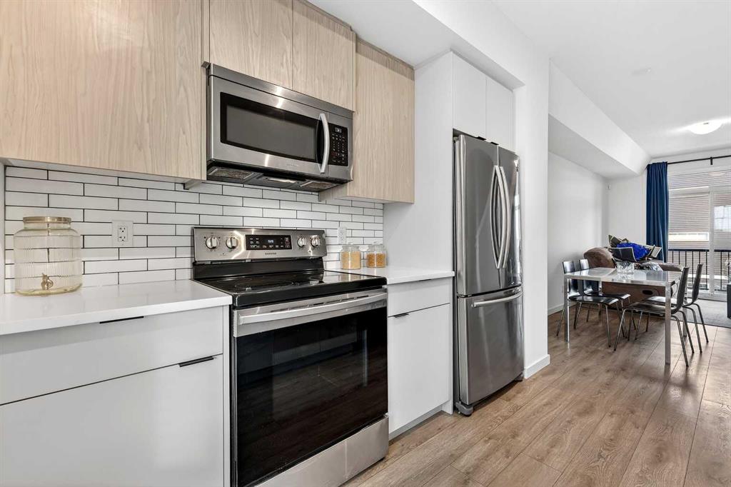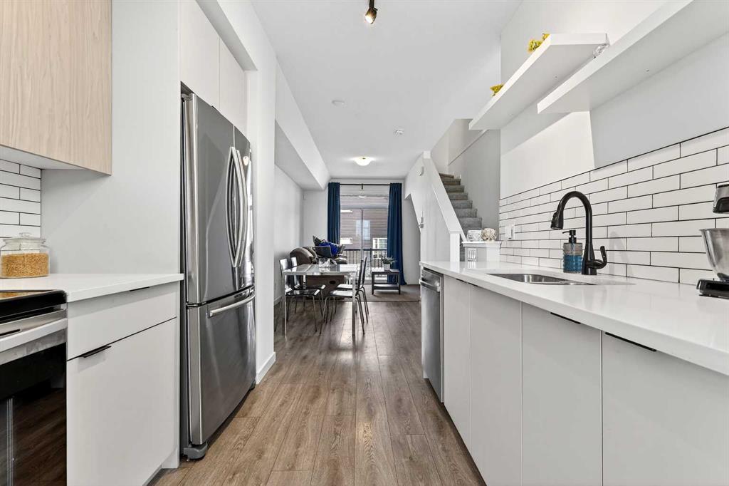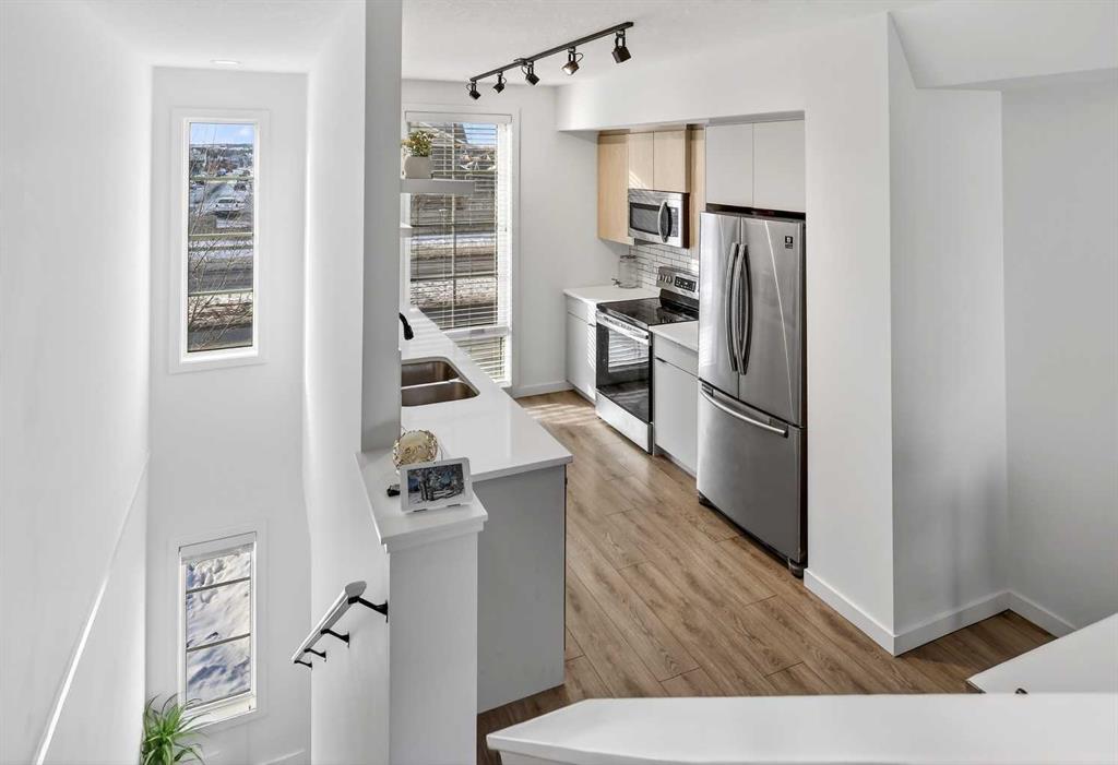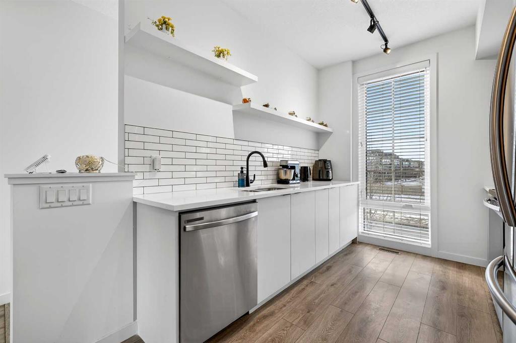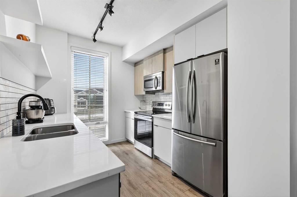 Situated in a quiet location and proudly owned by the original owner, this beautifully maintained home offers a well-designed layout complemented by stylish modern finishes throughout. From the moment you step inside, you’ll appreciate the wood-grain laminate flooring and the functional flow that makes everyday living both comfortable and convenient. The contemporary kitchen is thoughtfully appointed with engineered stone countertops, stainless steel appliances, and an abundance of cabinetry and counter space, making it ideal for both cooking and entertaining. It seamlessly connects to the spacious living area, which extends out to a covered balcony — the perfect setting to unwind or host guests year-round. The primary bedroom features a generous footprint and includes a private 3-piece ensuite. A well-sized second bedroom is positioned next to the 4-piece main bathroom, offering flexibility for guests, family, or a home office. Bathroom countertops are finished in durable laminate, and the home is complete with vinyl windows for efficiency and low maintenance. Additional highlights include a single attached garage. Ideally located within walking distance to a daycare, gym, and retail shops, and just steps from a soon-to-open K–9 school, this move-in ready property offers both lifestyle and convenience. Whether you’re a first-time buyer, downsizer, or investor, this is an exceptional opportunity you won’t want to miss.