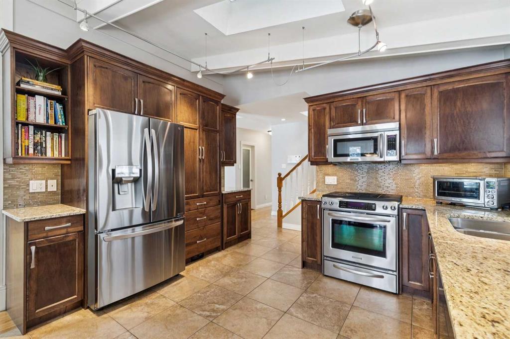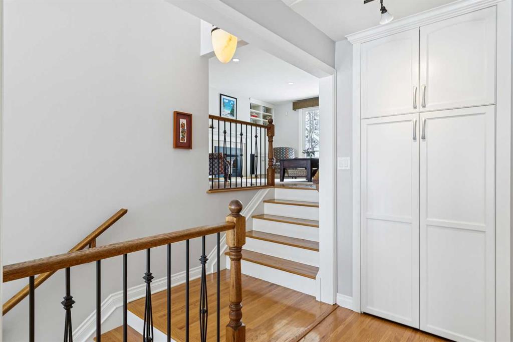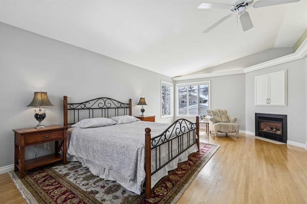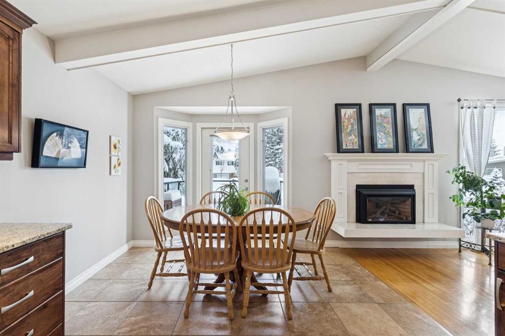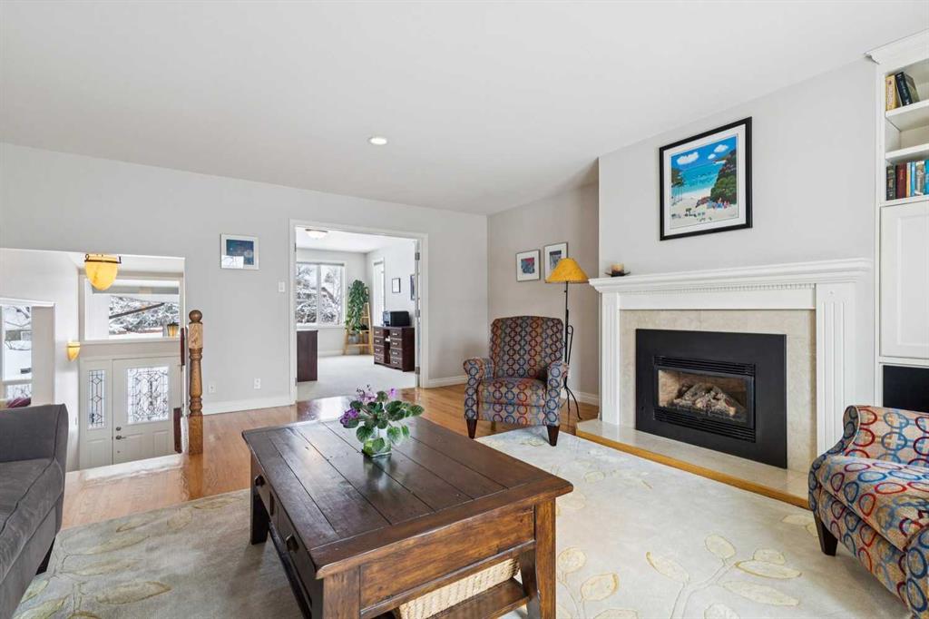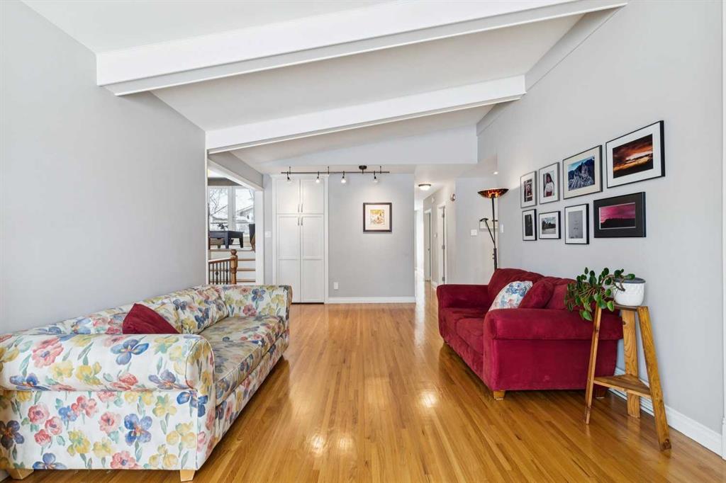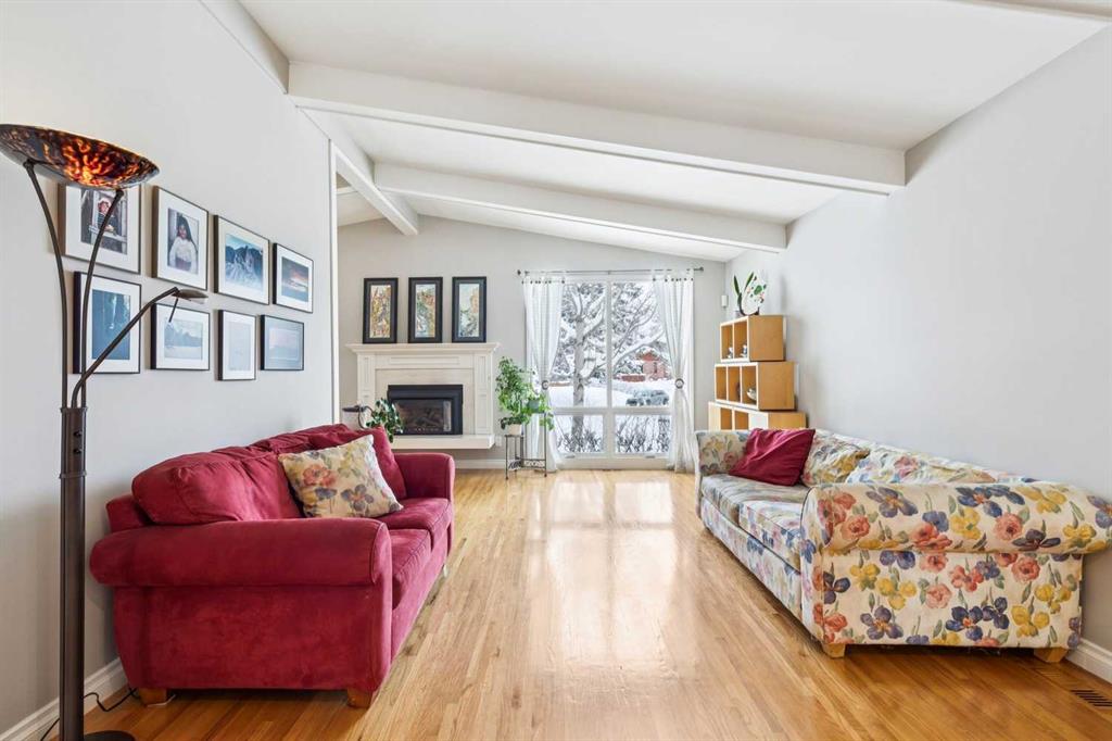 At over 2,600 sq ft above grade, this beautifully maintained and expanded two-storey stands apart in a neighbourhood defined by smaller bungalows, offering the space that growing families rarely find this close to the city’s core. With a primary bedroom that has a luxurious five-piece ensuite and massive walk-in closet, three generous-sized bedrooms, a dedicated executive office, and a fully developed basement mean everyone has room to spread out and to also come together. Mornings are bright with the large windows streaming in the sunlight. Long-term neighbours are raising their families here, a quiet street where people choose to stay. This is not an infill nor a fix-and-flip renovation. It is a home with genuine mid-century character, featuring vaulted, beamed ceilings, four fireplaces, hardwood floors, skylights in the kitchen and bathroom, heated tile floors, and custom built-ins throughout. The renovated kitchen includes a thoughtful movable counter that doubles as an island and dedicated prep station. Walk to Confederation Park, Nose Hill, Brentwood Village, Co-op, École Banff Trail, Aberhart and St. Francis Schools. Reach the U of C on foot and hit the mountains in under an hour via Crowchild or the TransCanada. The tandem attached garage handles the winters, and the south-facing backyard is private with large mature trees providing shade. The quiet cul-de-sac provides room for a young family to learn to ride a bicycle and provides separation from the road. This is inner-city Charleswood square footage that simply does not come up often, and when it does, it does not last.