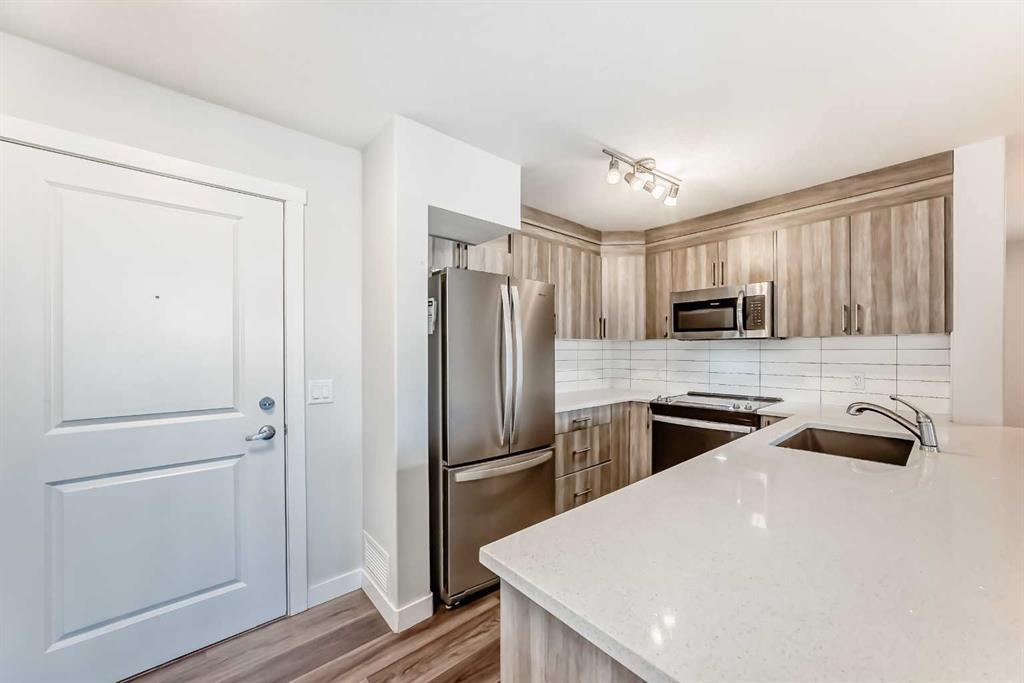 EXCEPTIONAL VALUE | TOP FLOOR | STEPS TO C-TRAIN STATION. A premier opportunity for first-time buyers and savvy investors alike. This 2-bed, 2-bath unit in the highly sought-after SADDLE RIDGE Community. Located just steps from the LRT, Genesis Centre, schools, parks, shopping, and everyday amenities, with quick access to Metis Trail for effortless commuting. This bright open-concept unit features a modern kitchen with stainless steel appliances, quartz countertops, and a large island—perfect for entertaining. Enjoy your private balcony with beautiful views, ideal for morning coffee or relaxing evenings.