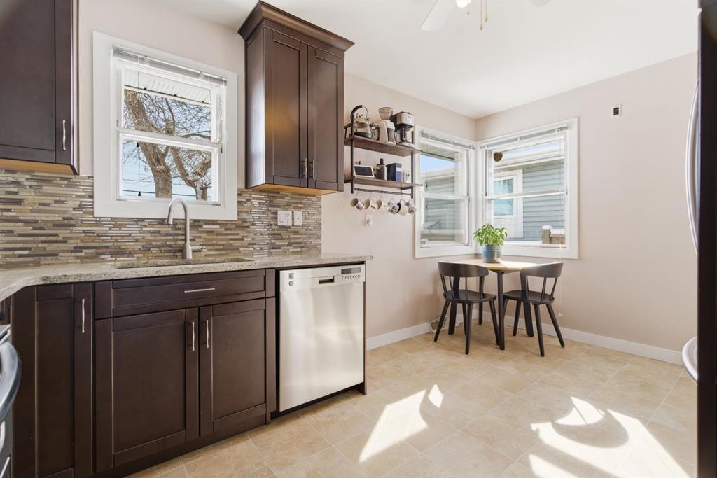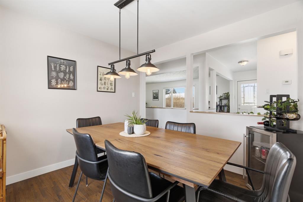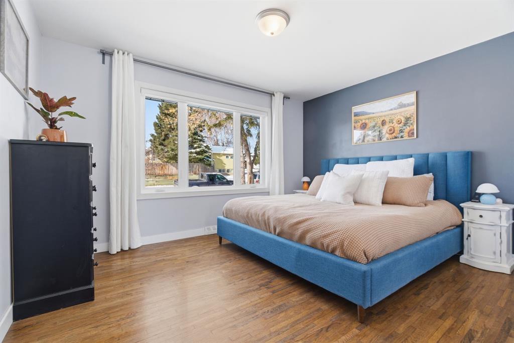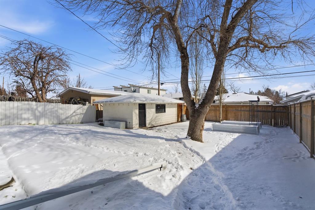 Situated on an expansive 60’ wide lot on a quiet street inner city this beautifully updated bungalow features 3 beds, and 2 baths, along with an oversized single detached garage. As you approach you will notice the refreshed curb appeal with new vinyl siding and windows (2017). Step inside to find stunning hardwood floors and abundant natural light that fills the space. The spacious living room located at the front of the home provides the perfect retreat to relax and unwind. The kitchen is a focal point with rich expresso shaker cabinets reaching to the ceilings, modern stainless-steel appliances, elegant granite counters, a stylish mosaic tile backsplash, and a pantry for additional storage. The kitchen sink looks onto the sunny yard. This seamlessly connects to the breakfast nook surrounded by windows. Adjacent to the kitchen is the large dining room, showcasing a designer light fixture and a charming built-in storage unit, ideal for family dinners or entertaining guests. Two generous sized bedrooms and a well appointed 4 pc main bath complete this level. The fully developed lower level boasts a 3rd bedroom, 4 pc bath, significant rec area and an office space. Providing plenty of room for work or play. Step outside to enjoy a serene backyard surrounded by mature trees and plenty of garden boxes. Located within an established, amenity-rich community, walking distance to schools, parks, the outdoor rink, tennis courts, along with easy access to downtown transit via the c-train. Enjoy the proximity to West Hills Towne Centre and Signal Hill Centre with seemingly infinite shopping, restaurant and entertainment options as well as West Brook Mall and Optimist Athletic Park. View the virtual tour or call to schedule your private showing today.