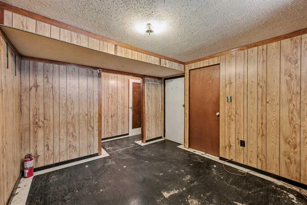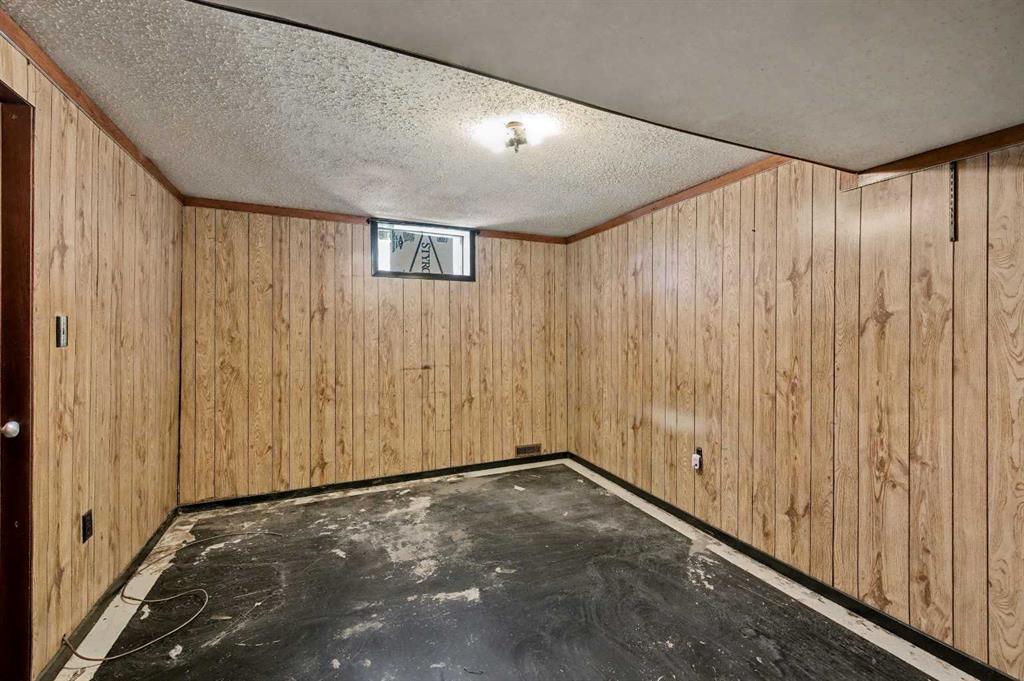 This bungalow offers solid value and is located on a quiet street next to a park. With 1,061 square feet above grade, the main floor includes three bedrooms, a spacious living room, and a kitchen with an eating area. The living room and hallway feature solid hardwood flooring that could be refinished, while the remaining rooms have linoleum. The home has had some key updates over the years, including main floor windows (2024), furnace and central air (2014), roof shingles (2010), and new doors (2026). The main bathroom has been converted to a three-piece for accessibility. The basement includes two additional bedrooms, a recreation space, and a large laundry/mechanical room. The second bathroom requires work but has existing plumbing in place. Outside, there is an oversized double detached garage and a large backyard. Located in Forest Lawn, close to elementary, junior high, and high schools, as well as shopping, transit, and major routes. A good opportunity for buyers looking to update and add value.