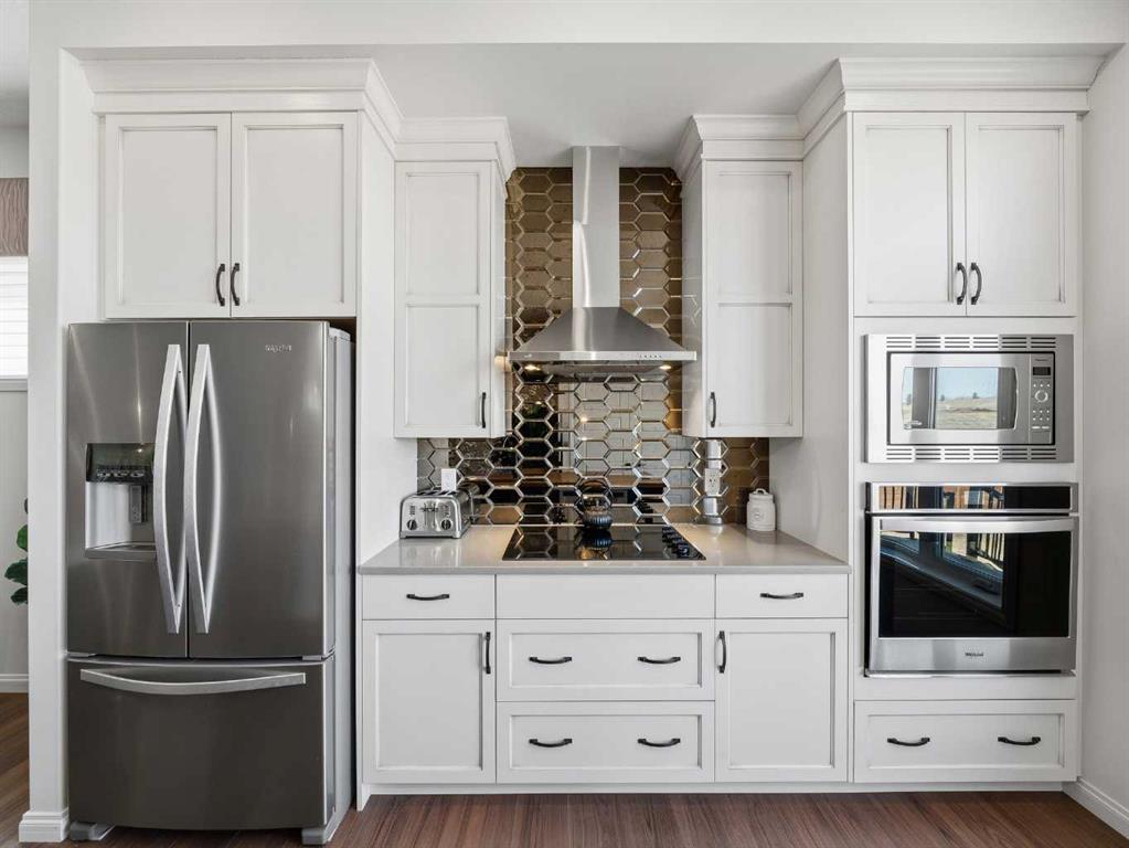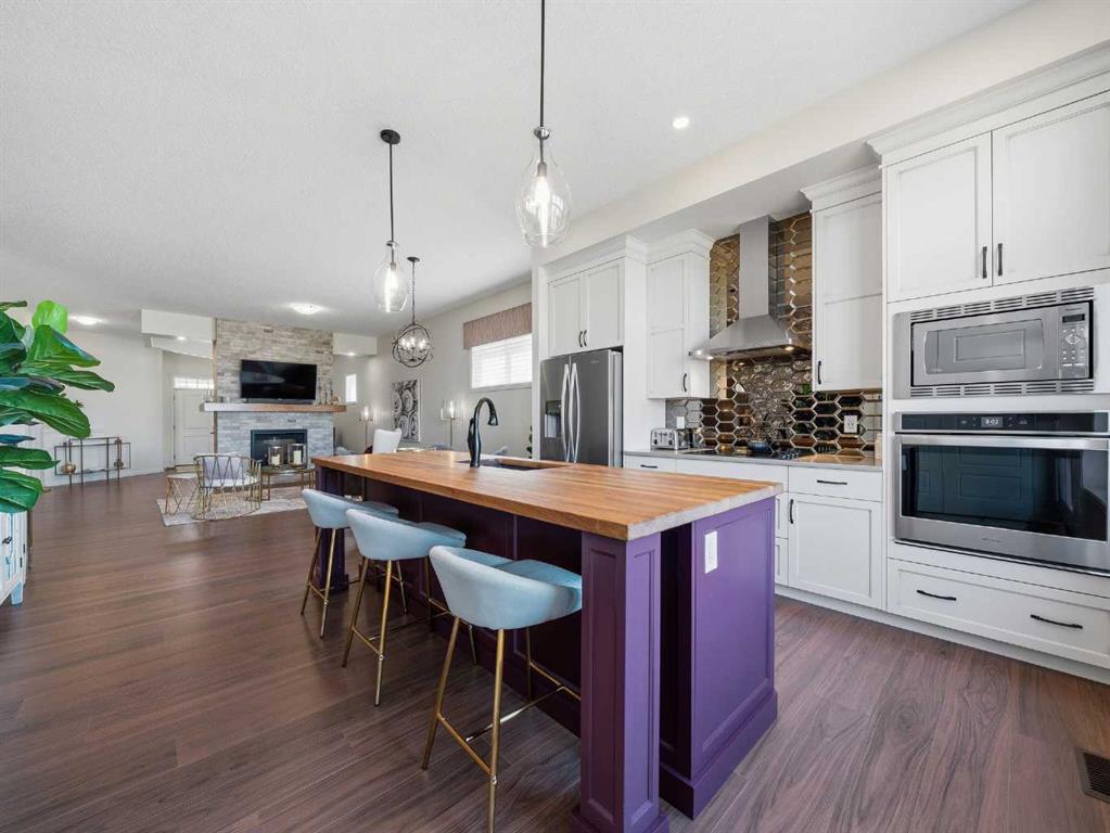 Stunning executive bungalow backing onto D’Arcy Golf Course! This Morrison-built villa show home (THE HEPPNER) offers one of the largest floor plans on the street with 10’ ceilings and luxury vinyl plank flooring throughout. The bright, open-concept main floor features a two-sided gas fireplace that sits between a reading/flex room and the main living room. The chef-inspired kitchen with ceiling-height white cabinetry, massive island, and stainless steel appliances is a warm and welcoming space.