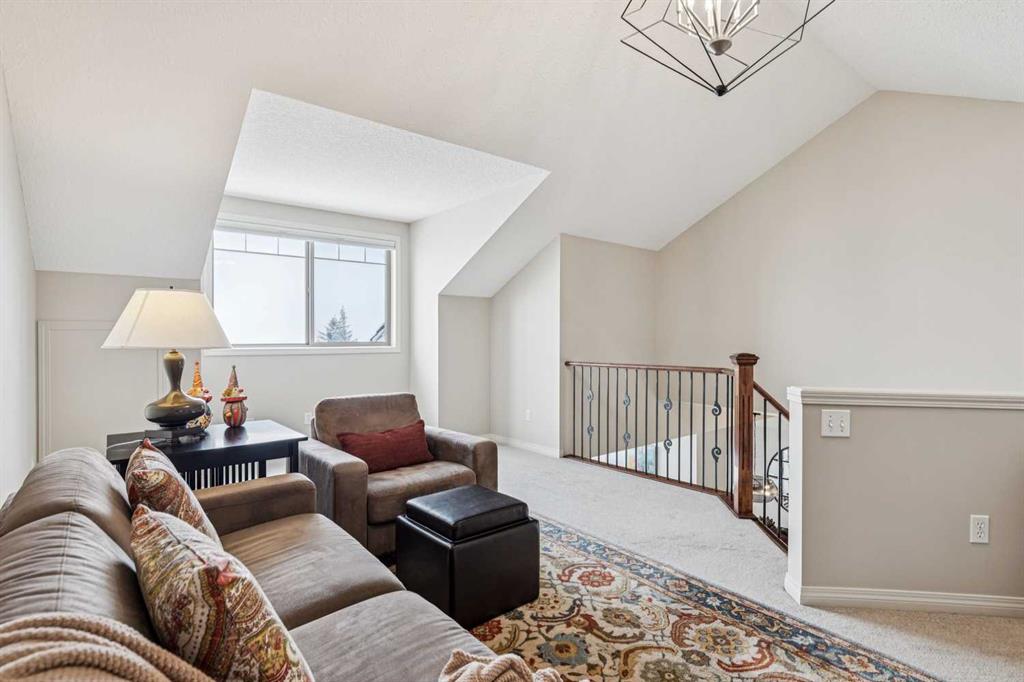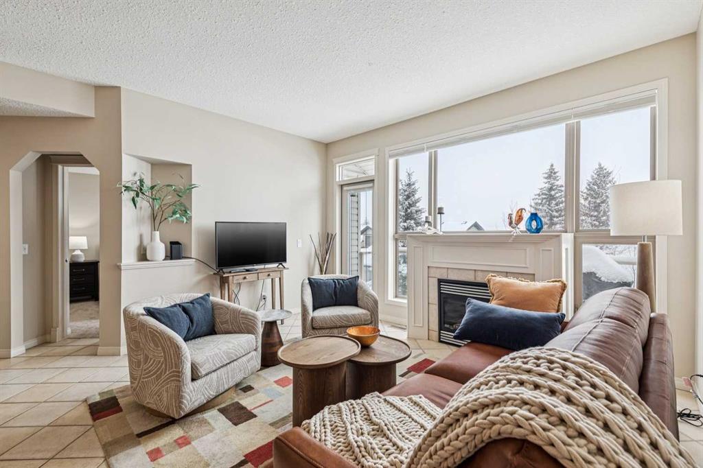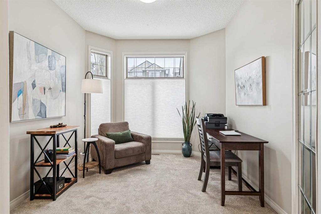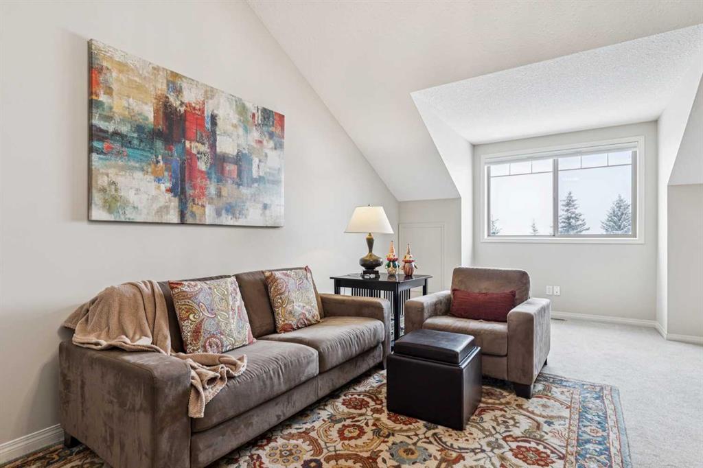 Designed for effortless living and lock-and-leave freedom, this south-facing bungalow villa with mountain views is the perfect next chapter for empty nesters, snowbirds, or anyone ready to downsize without compromise. With a second-floor loft and fully developed walkout basement, this home offers the space you want for guests, hobbies, and entertaining, without the maintenance you don’t. A welcoming foyer sets the tone, with a private home office tucked behind French doors, the ideal spot for part-time work, planning your next getaway, or managing life with ease. The main living area is bright and inviting, where large windows frame the fireplace and fill the space with natural light. An open dining area flows seamlessly into the kitchen, featuring stainless steel appliances, warm wood cabinetry, an efficient layout, and a breakfast bar perfect for casual mornings or wine with friends. The main floor primary suite is bright and comfortable, complete with double closets and a spacious ensuite featuring a soaker tub and rough-in for laundry, offering true single-level living if desired. Upstairs, the vaulted loft overlooks the main floor and adds flexible bonus space for whatever your lifestyle calls for, a TV lounge, reading retreat, fitness area, or creative workspace. The fully developed walkout basement expands your living space even further with a generous family room, guest bedroom, full bathroom, laundry room, and excellent storage. Step outside to the west-facing deck and take in the mountain views, a beautiful backdrop for morning coffee, and relaxed evenings outdoors. The covered patio below opens to a beautifully landscaped shared green space with mature trees. Additional updates provide peace of mind, including a new furnace (2025), washer and dryer, hot water tank, water softener, and air conditioning (2024). A double garage plus convenient visitor parking directly across from the unit make everyday living easy. Perfectly located for a low-maintenance lifestyle, you’ll appreciate quick access to Stoney Trail and Glenmore Drive, with shopping, dining, and amenities at Westhills just minutes away, along with the Westside Recreation Centre up the street. Lock the door, travel with confidence, and come home to comfort, views, and effortless living.