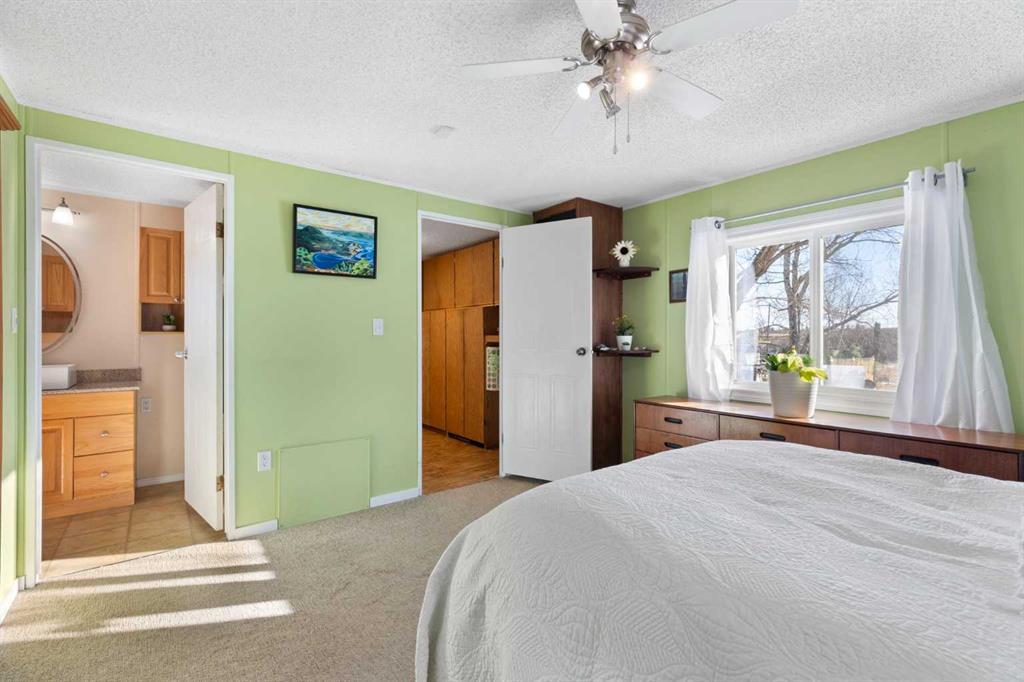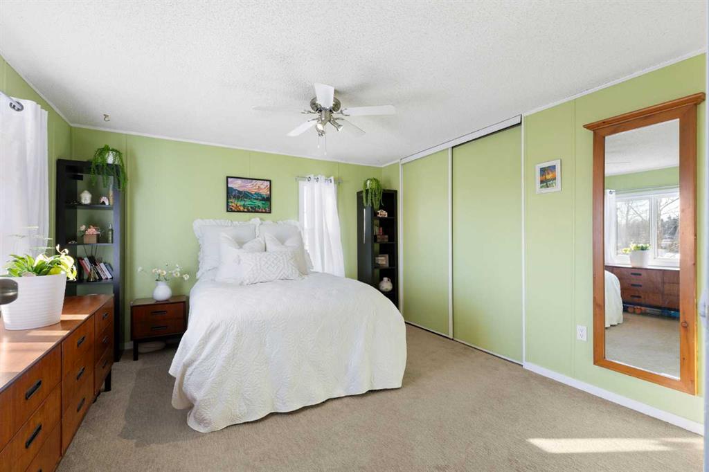 Embrace the serenity of country living with this well-maintained 2.89-acre property located just minutes from Strathmore. This acreage offers the perfect balance of privacy and convenience, with no close neighbours while still being only moments from schools, shopping, and everyday amenities. The property features a spacious 1,416 sq. ft. bungalow-style manufactured home offering a functional three-bedroom, two-bathroom layout all on one level. Filled with bright natural light, the heart of the home is the open-concept living area featuring large vinyl windows and a comfortable living room with vaulted ceilings. A versatile flex room provides the perfect space for a home office, den, or playroom. The kitchen is both practical and welcoming, featuring a breakfast bar, new appliances, and plenty of cupboard space—ideal for everyday living and entertaining. The primary bedroom serves as a private retreat with a 4-piece ensuite that includes a relaxing jetted tub. Two additional bedrooms and a full bathroom provide flexible space for family or guests. The outdoor space is a true highlight, designed for both relaxation and functionality. A large oversized heated double garage (25’3″ Ă— 27’4″) offers excellent space for vehicles and projects and is equipped with 220 wiring, a wood stove, and a workbench, making it a great year-round workshop. The property also includes a dog run and plenty of room for RV parking or storage for recreational toys.