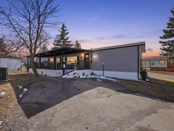 Welcome to Greenwood Village — one of Calgary’s most desirable and well-managed mobile home communities, where comfort, convenience, and pride of ownership come together amid mature landscaping and a true sense of community. Set on a spacious triangular shaped lot, just steps from Bowness Park and the Calgary Farmers’ Market, this newer-model (1996) mobile home offers a wonderful balance of comfort, privacy, and peaceful, park-like living.