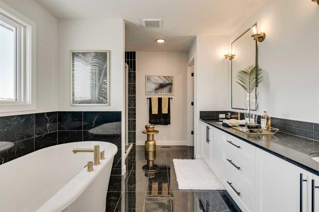 This beautifully upgraded family home offers style, space, and functionality. Built by a trusted builder with over 70 years of experience, this home showcases on-trend, designer-curated interior selections tailored for a home that feels personalized to you. Energy efficient and smart home features, plus moving concierge This home features a 3-car garage, main floor bedroom with full bath, and a side entrance for added flexibility. The executive kitchen shines with built-in stainless steel appliances, gas cooktop, chimney hoodfan, and a separate spice kitchen with gas range and French door. A walk-through pantry with wood shelving adds smart storage. Enjoy the warmth of the electric fireplace, vaulted ceiling in the bonus room, and extra windows for natural light. The luxurious 5-piece ensuite includes a soaker tub and a stunning walk-in tiled shower with dual glass walls. All bathrooms feature elegant tile flooring, and the upper main bath offers dual sinks—perfect for busy mornings.This energy-efficient home is Built Green certified and includes triple-pane windows, a high-efficiency furnace, and a solar chase for a solar-ready setup. With blower door testing that may be eligible for up to 25% mortgage insurance savings, plus an electric car charger rough-in, it’s designed for sustainable, future-forward living. Featuring a full range of smart home technology, this home includes a programmable thermostat, ring camera doorbell, smart front door lock, smart and motion-activated switches—all seamlessly controlled via an Amazon Alexa touchscreen hub. Photos are representative.