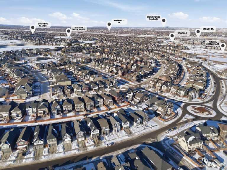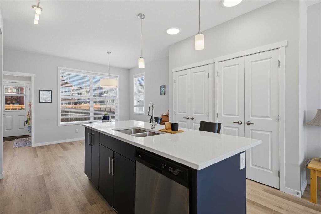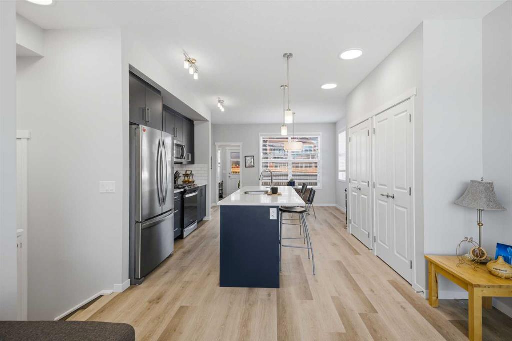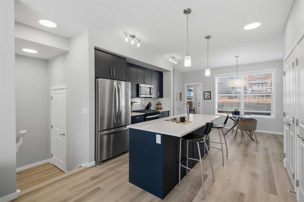 ***OPEN HOUSE Sat Jan.17 and Sun Jan 18 from 2-4:30pm***Value Priced to Sell!!! Welcome to this beautifully finished 3-bedroom, 2.5-bath detached home in the vibrant lake community of Mahogany. Offering 1,441 sq. ft. above grade with upgraded 9-ft basement ceilings, this property combines modern style with everyday functionality in one of Calgary’s most desirable neighborhoods. The main floor features high ceilings and an open-concept layout highlighted by midnight blue kitchen cabinetry, stone countertops, and a premium Blanco Horizon undermount sink. Upstairs, enjoy the convenience of a front-load washer and dryer, along with a spacious primary suite complete with a walk-in closet and private 3-piece ensuite. Two additional bedrooms provide flexibility for family, guests, or a home office. The basement is ready for future development with its impressive ceiling height, an egress window for a large bedroom, and rough-in plumbing for a full bathroom. Outside, the home offers a low-maintenance front yard, a fully fenced backyard, and paved lane access to an oversized parking pad. Located just 1 km from the Mahogany Beach House, you’ll enjoy year-round amenities including swimming, fishing, tennis, paddleboarding, skating (with a 2.4 km skating path), hockey, volleyball, playgrounds, a gymnasium, splash park, basketball courts, and firepits. This is an ideal opportunity to enjoy the best of lake living in Mahogany. Book your private tour today!